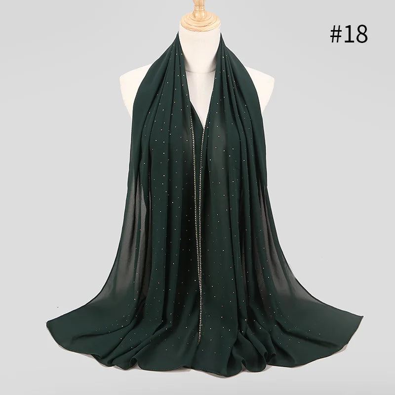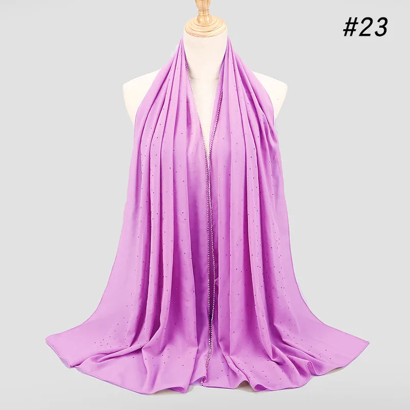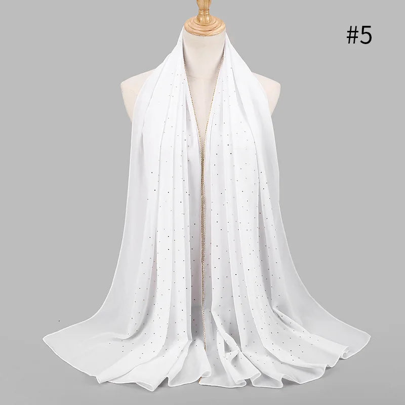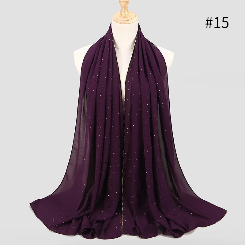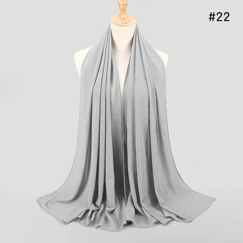 lain Pearl Bubble Chiffon Diamond Rhinestone Shawl Scarf High Quality Shimmer Beads Headband Wrap Foulard Muslim Hijab Sjaal