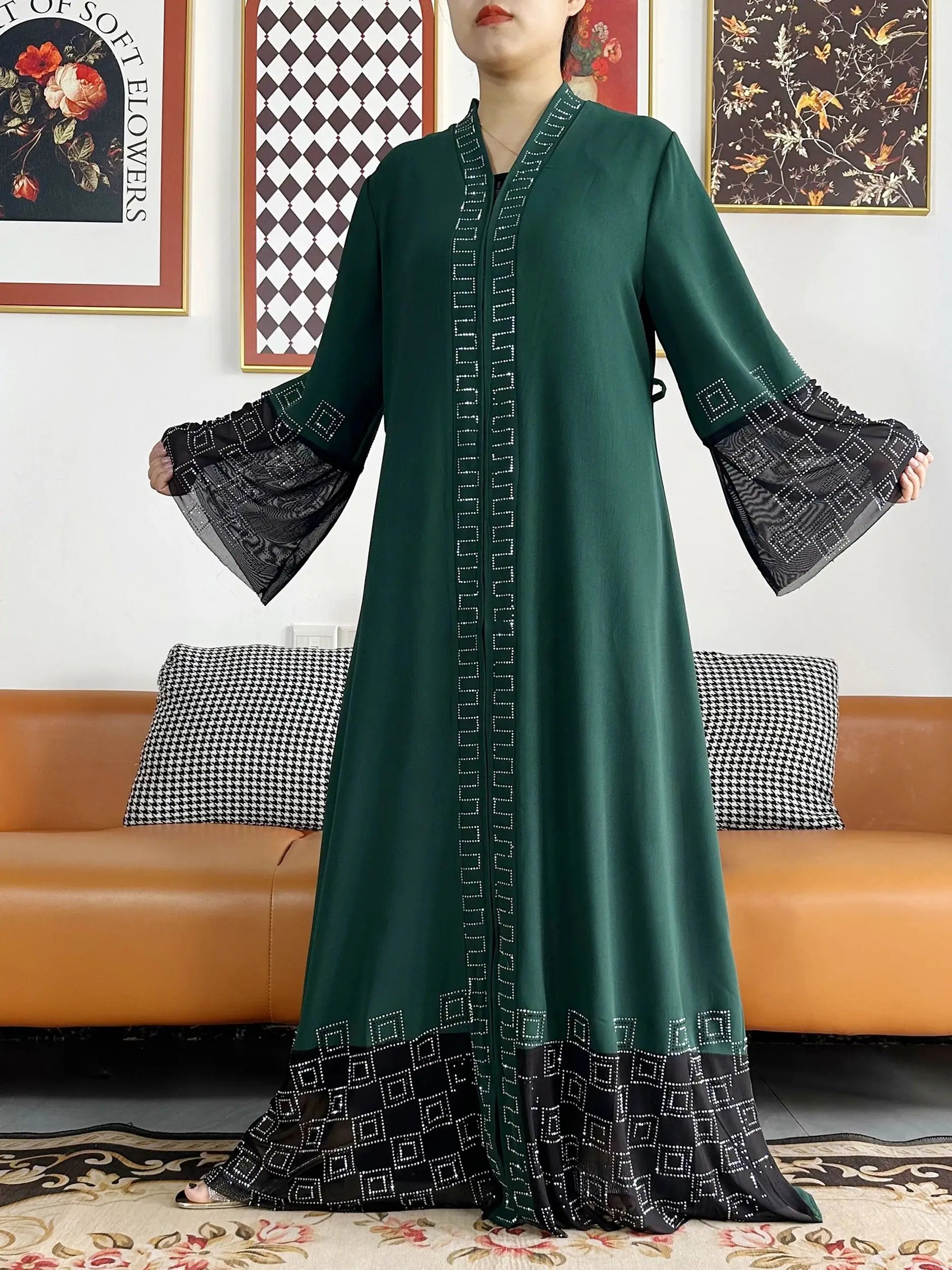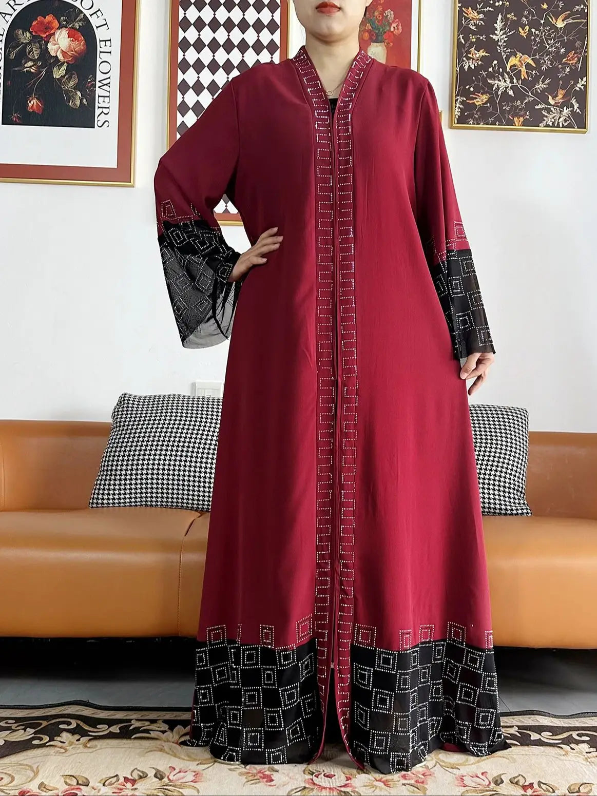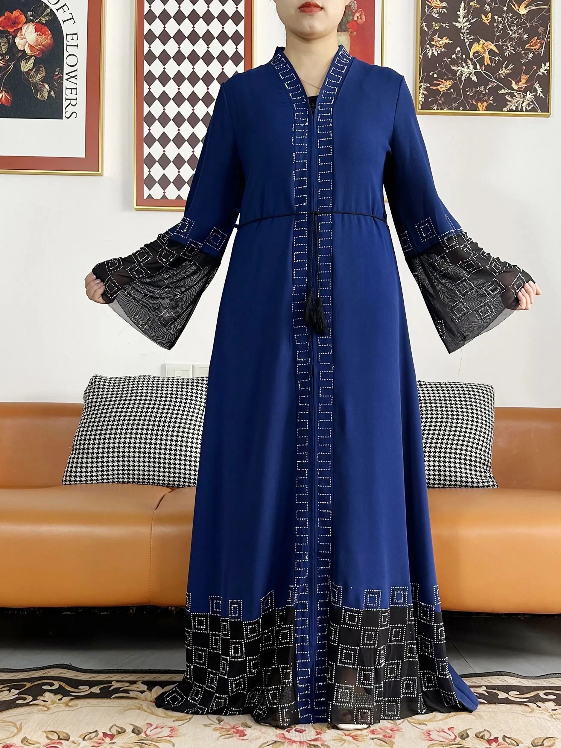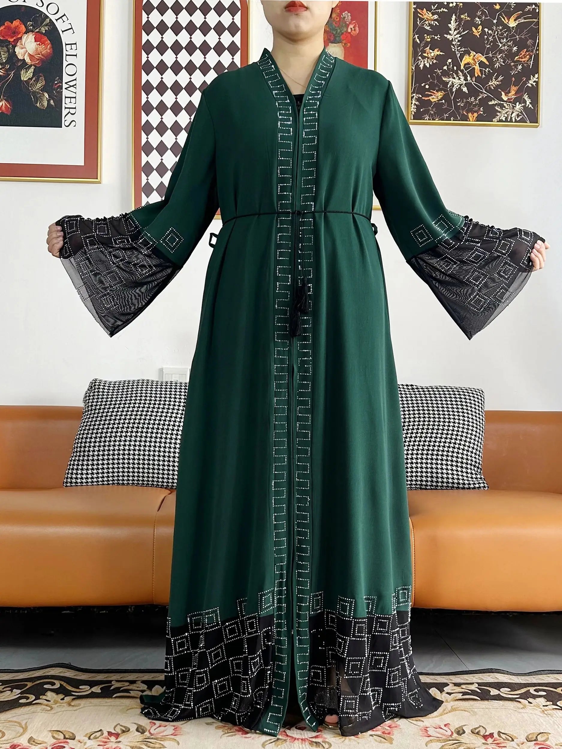 Latest Women Elegant Dresses Dubai Party Outfits Long Sleeve Chiffon Dashiki Muslim Women Robe Open African Abaya Clothing