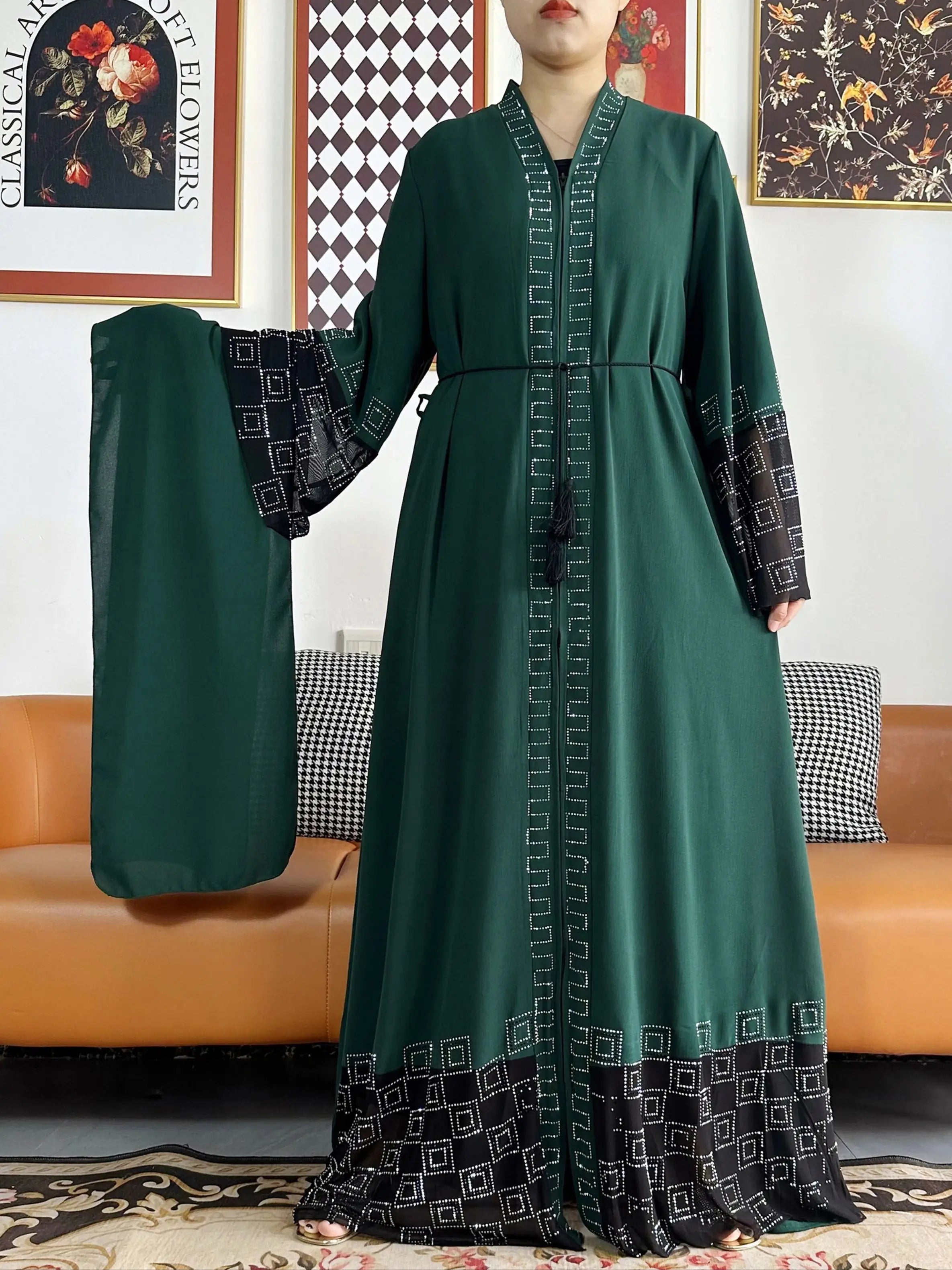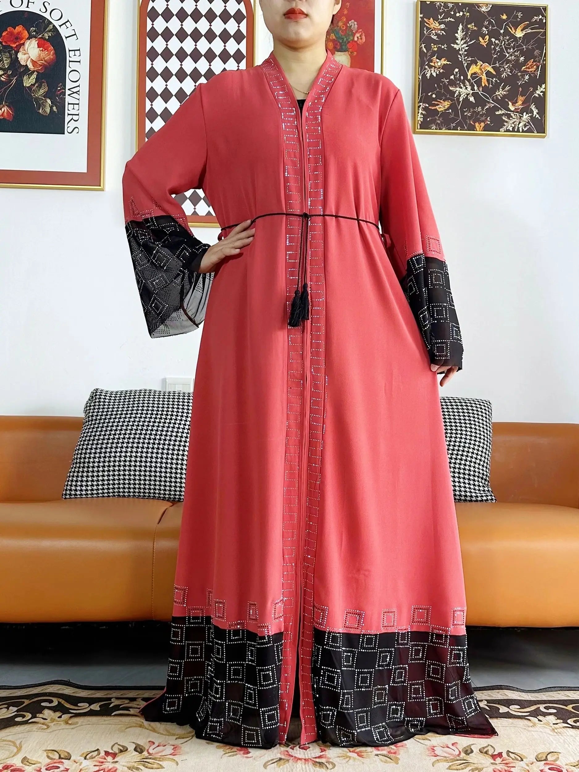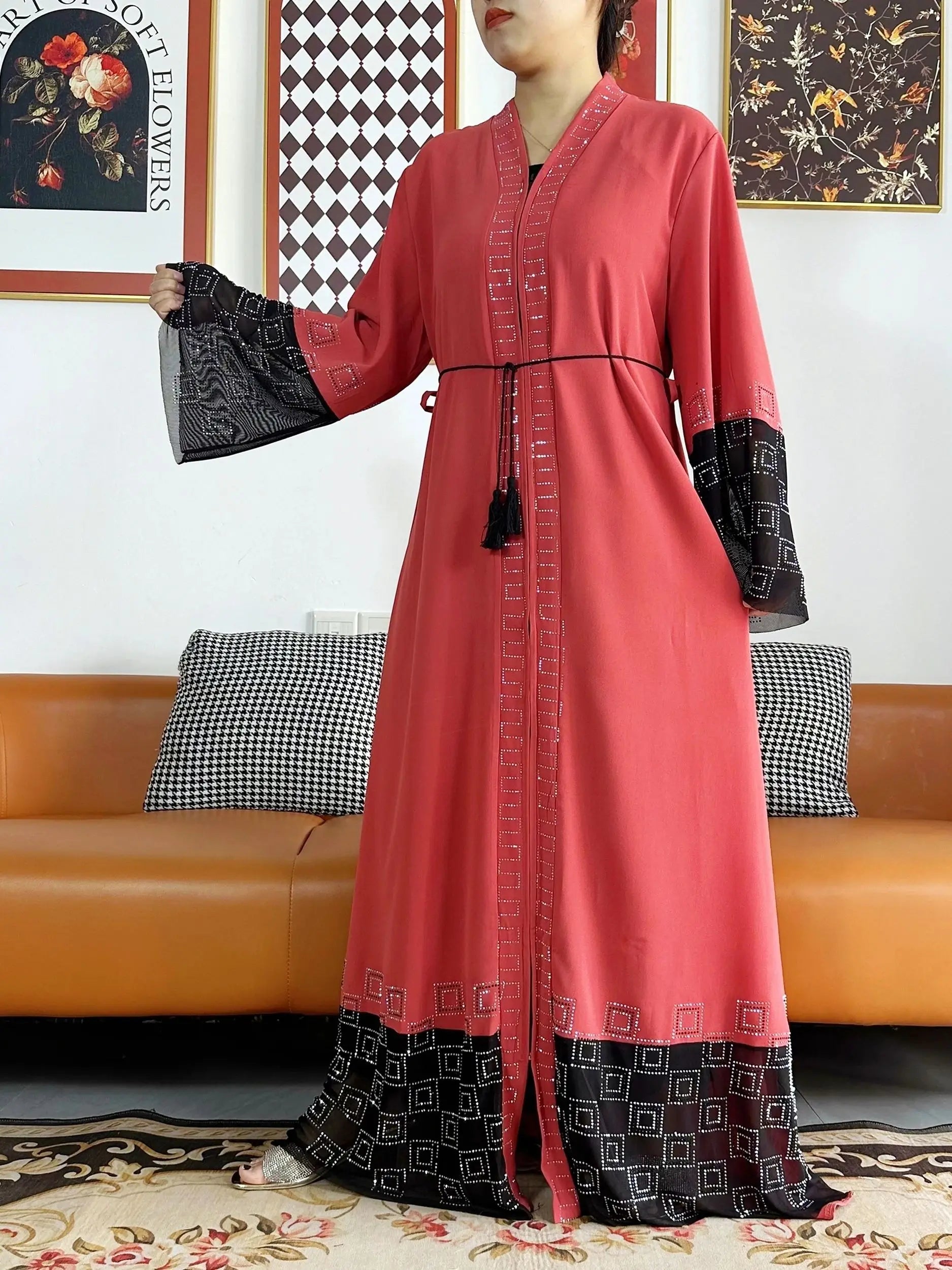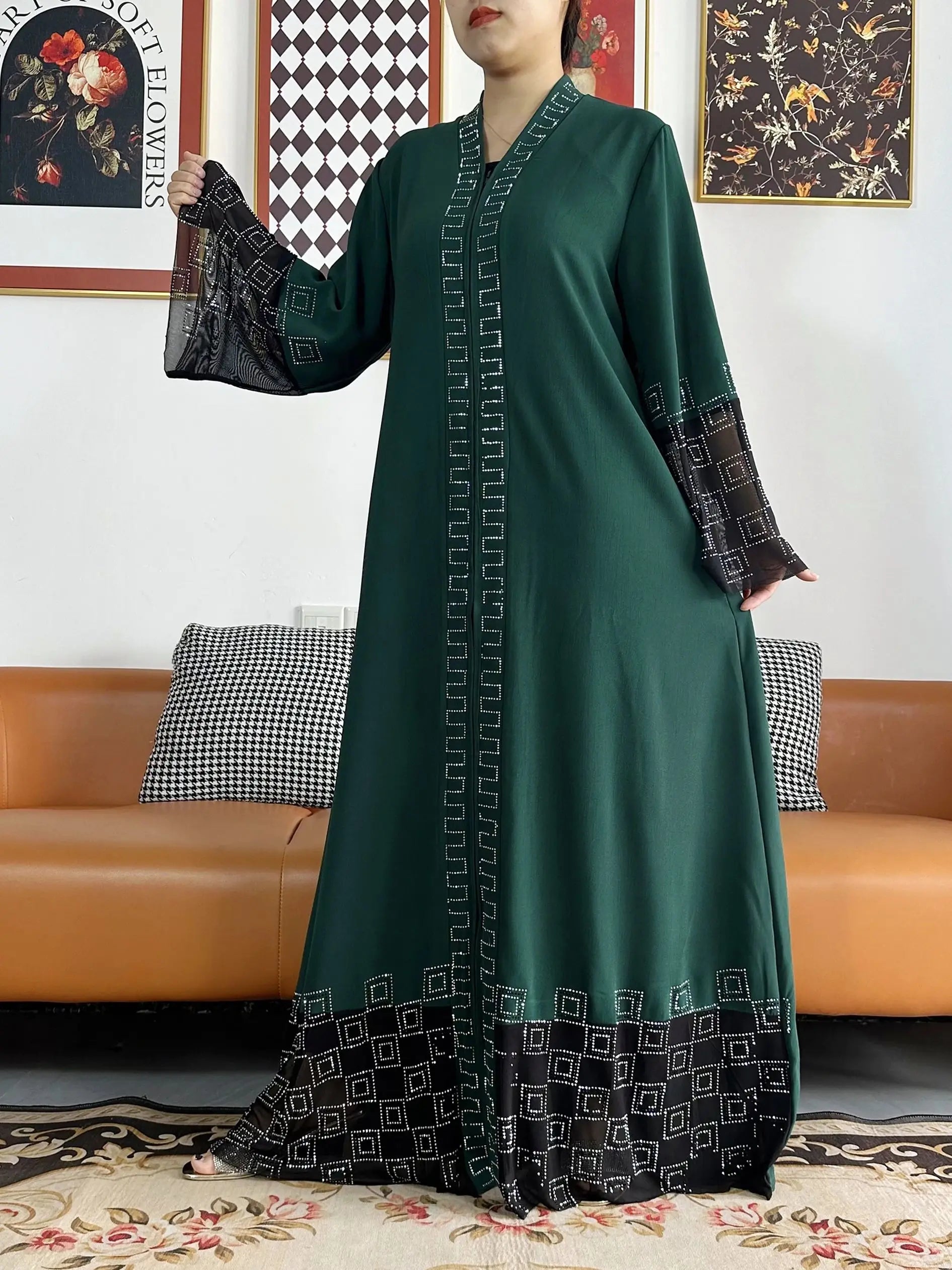 Latest Women Elegant Dresses Dubai Party Outfits Long Sleeve Chiffon Dashiki Muslim Women Robe Open African Abaya Clothing