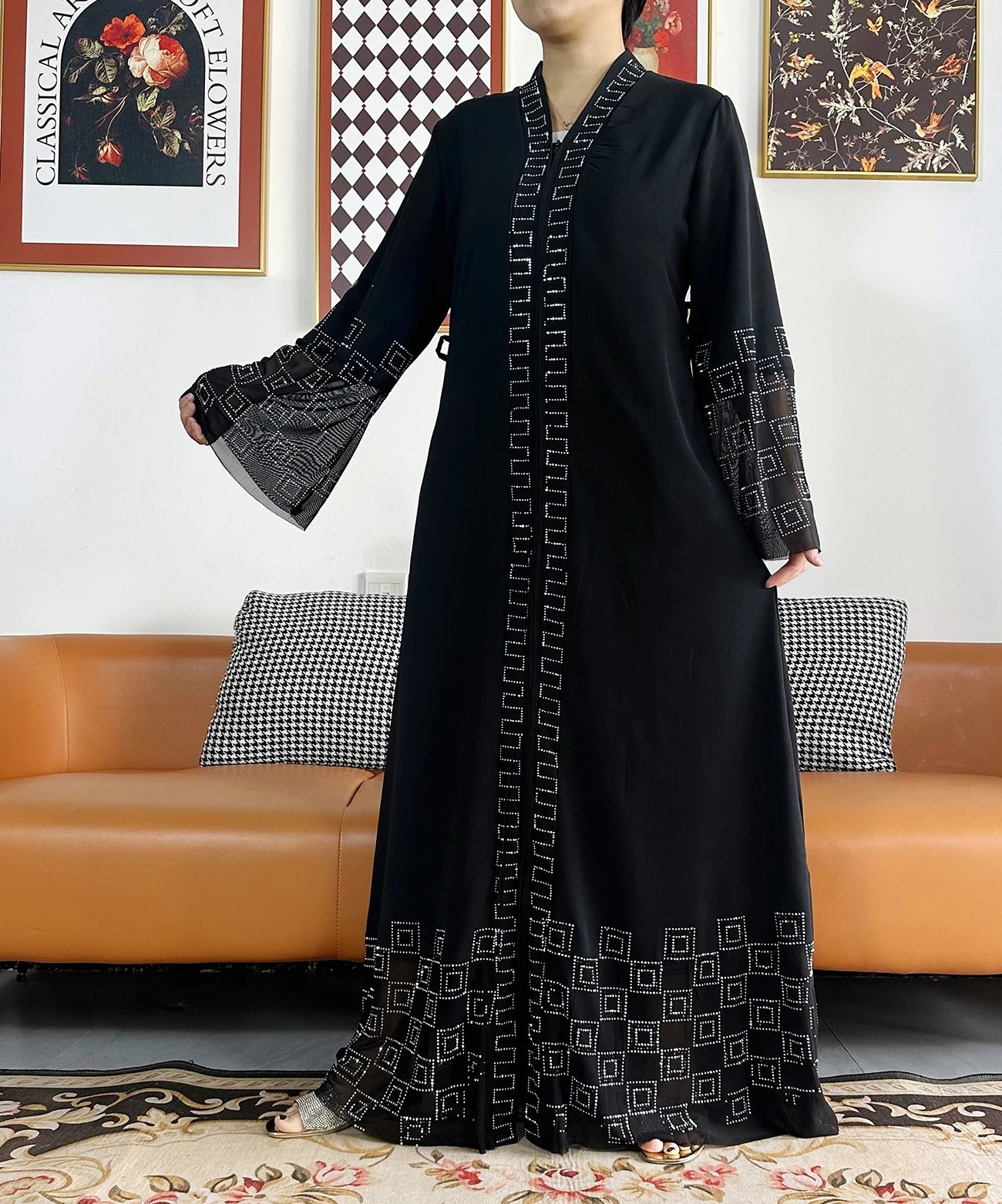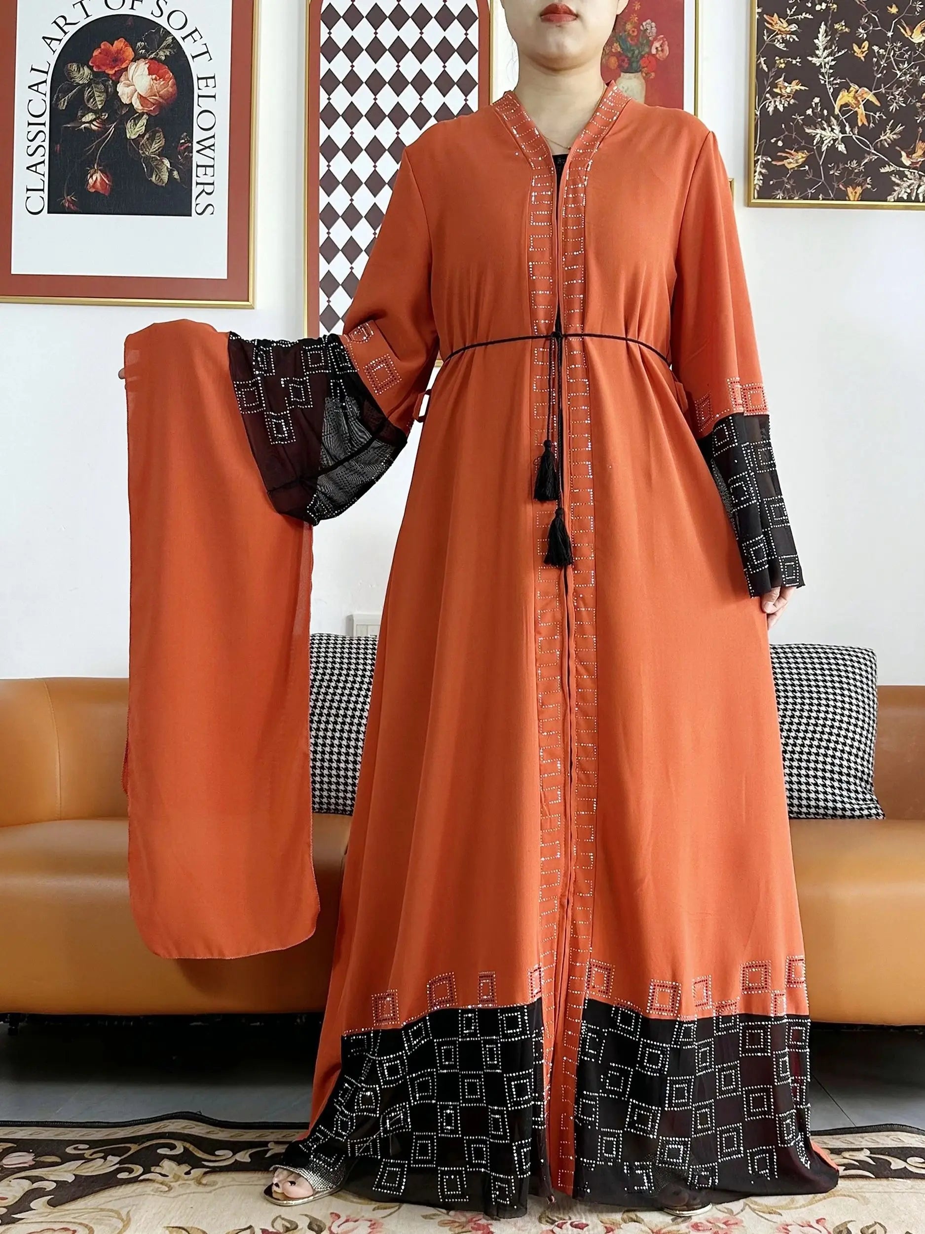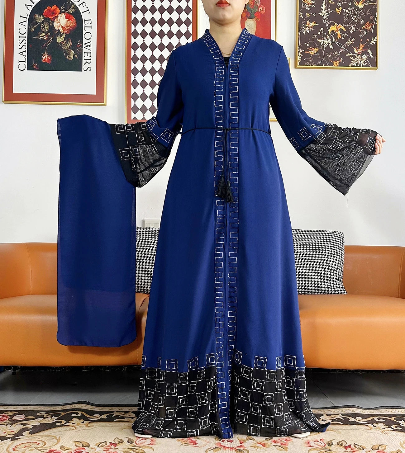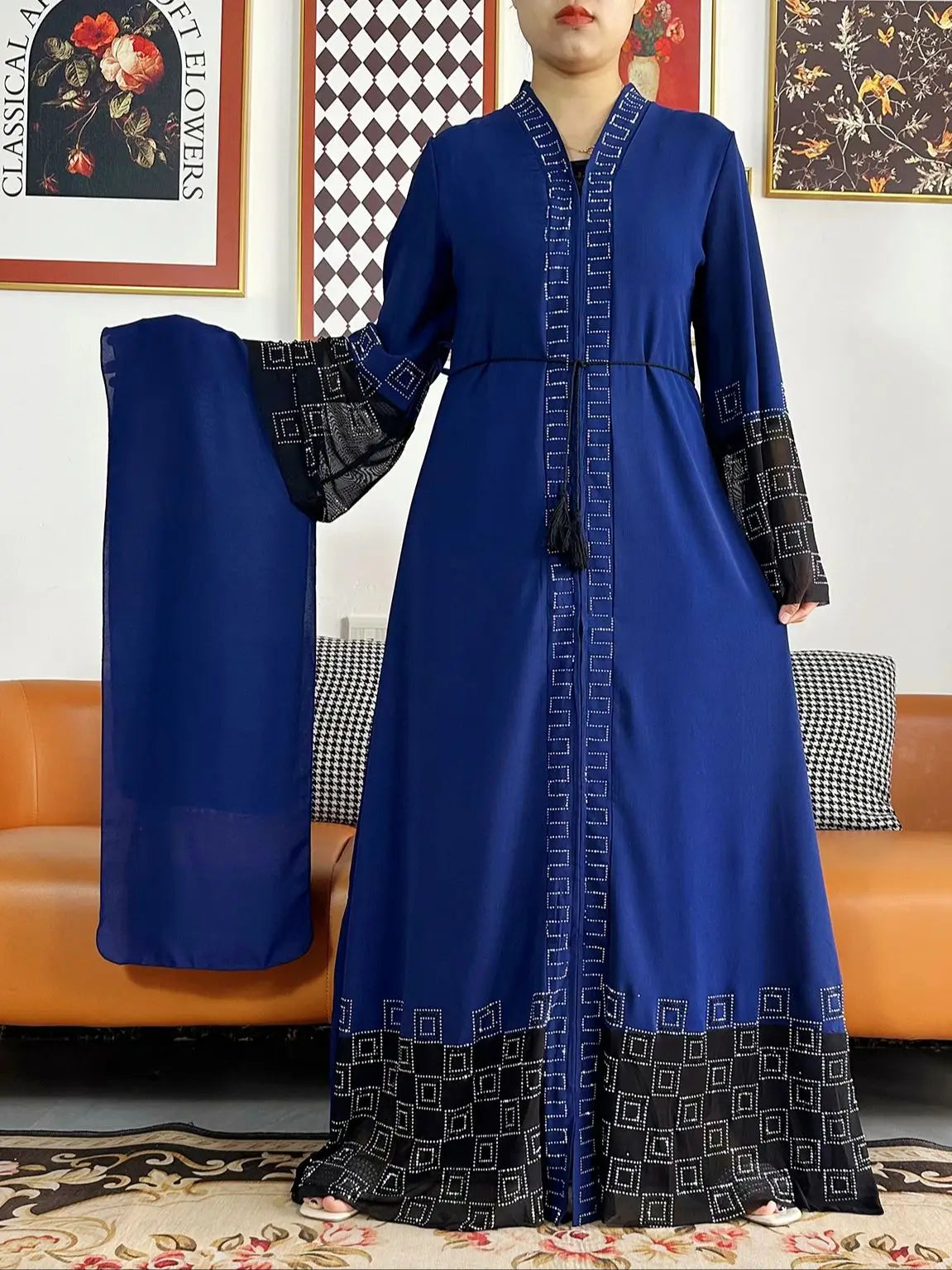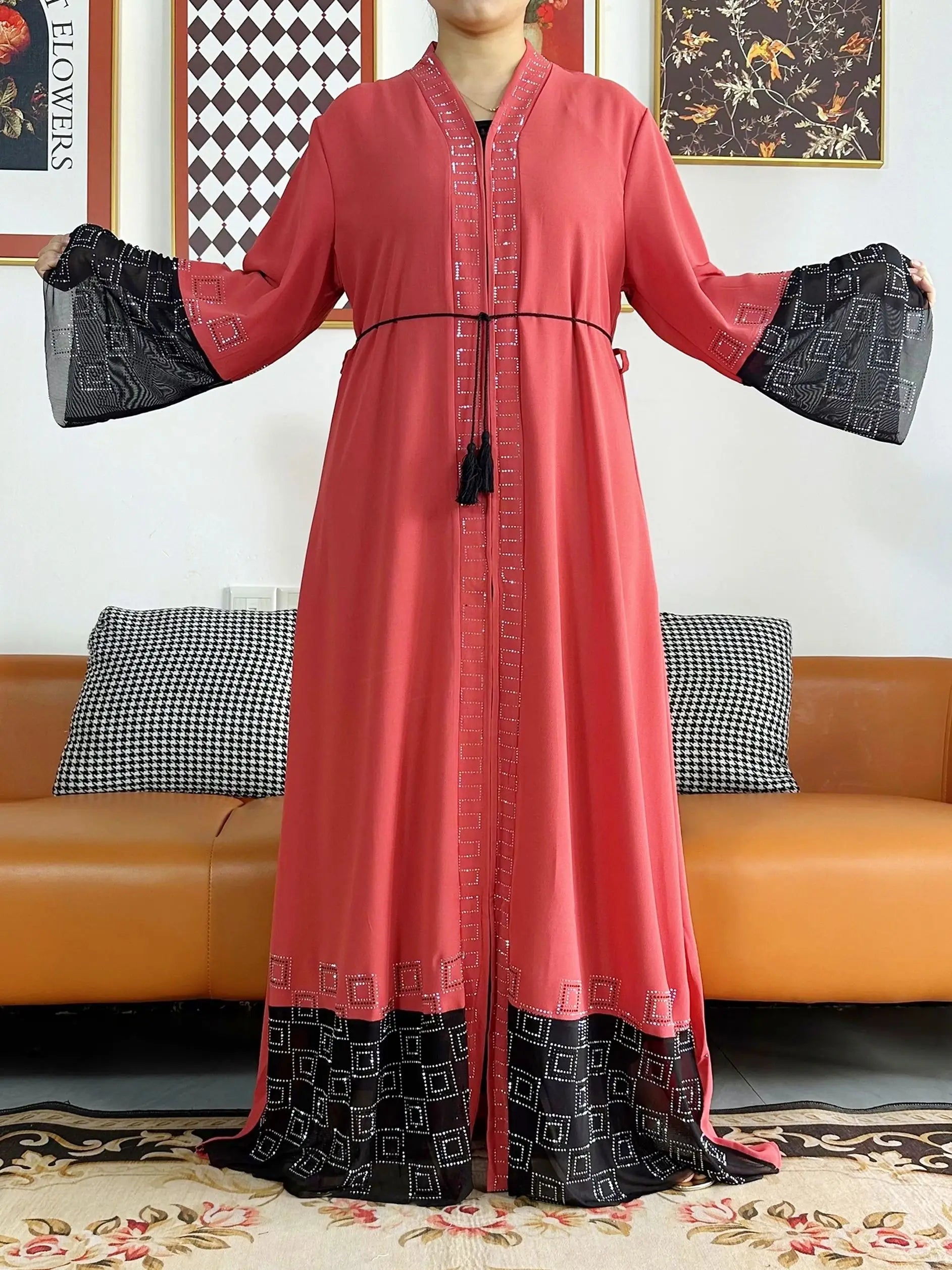 Latest Women Elegant Dresses Dubai Party Outfits Long Sleeve Chiffon Dashiki Muslim Women Robe Open African Abaya Clothing