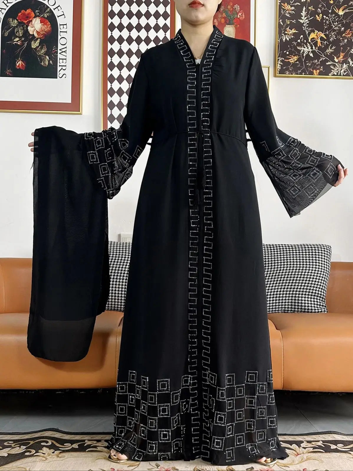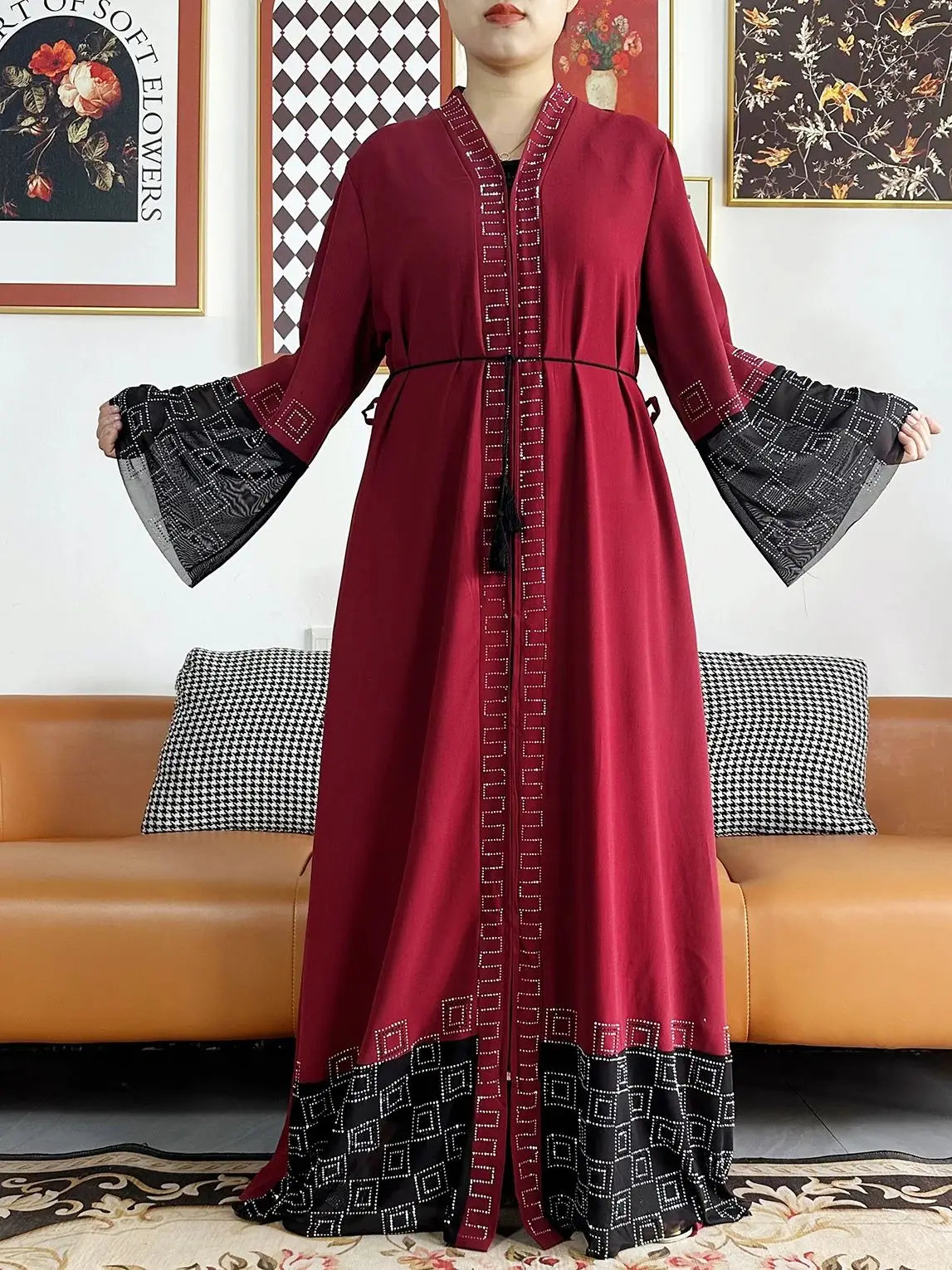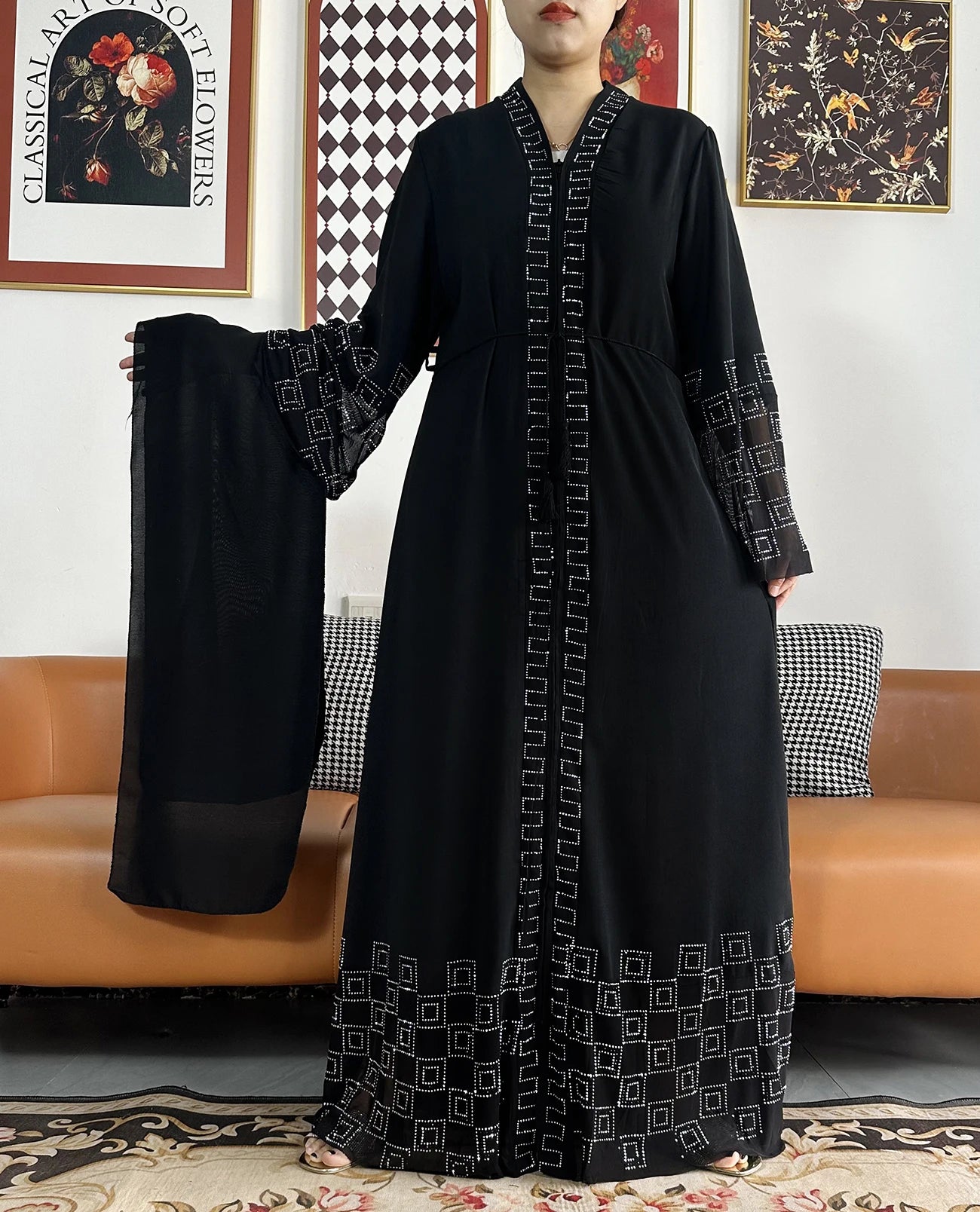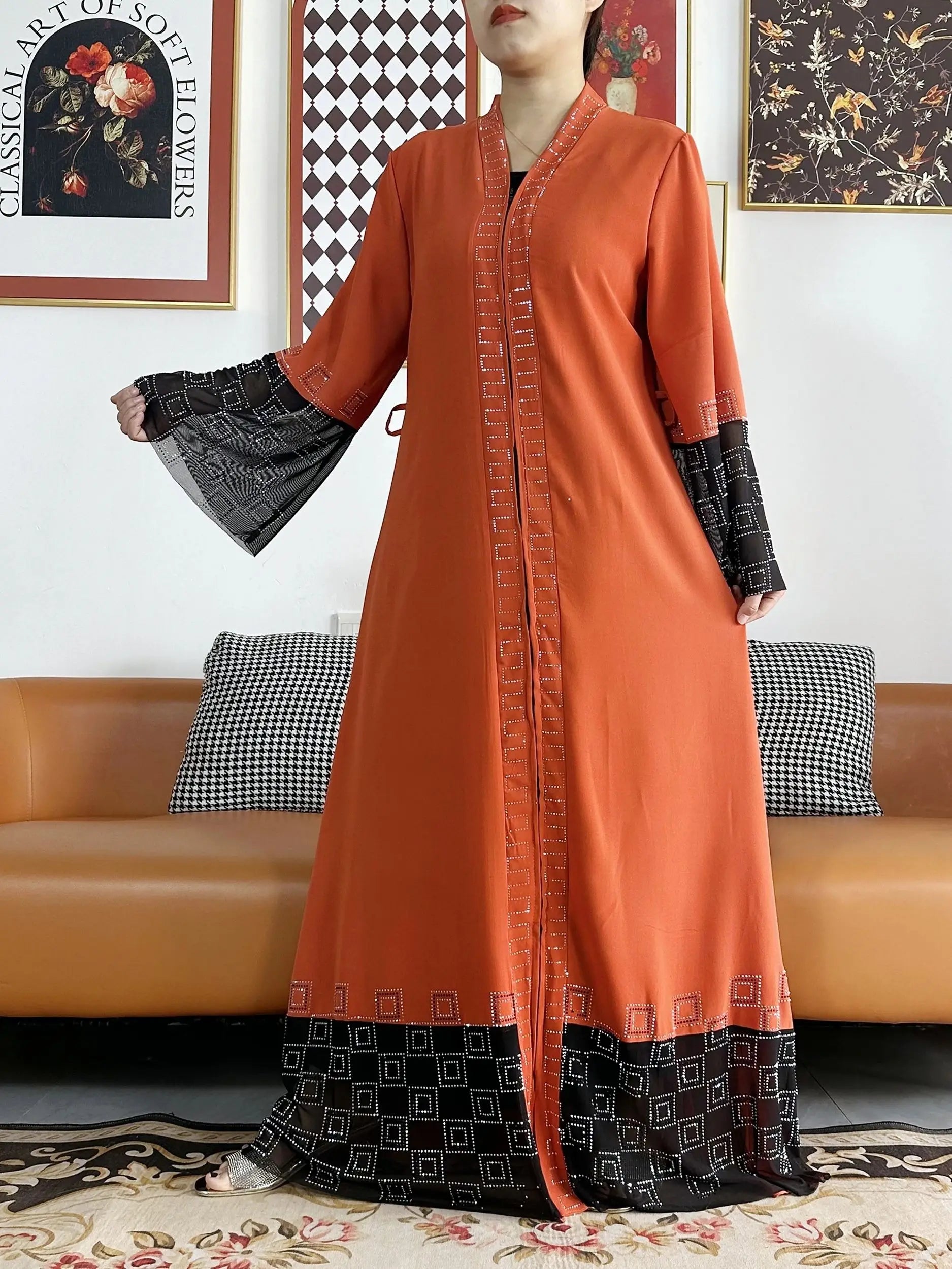 Latest Women Elegant Dresses Dubai Party Outfits Long Sleeve Chiffon Dashiki Muslim Women Robe Open African Abaya Clothing