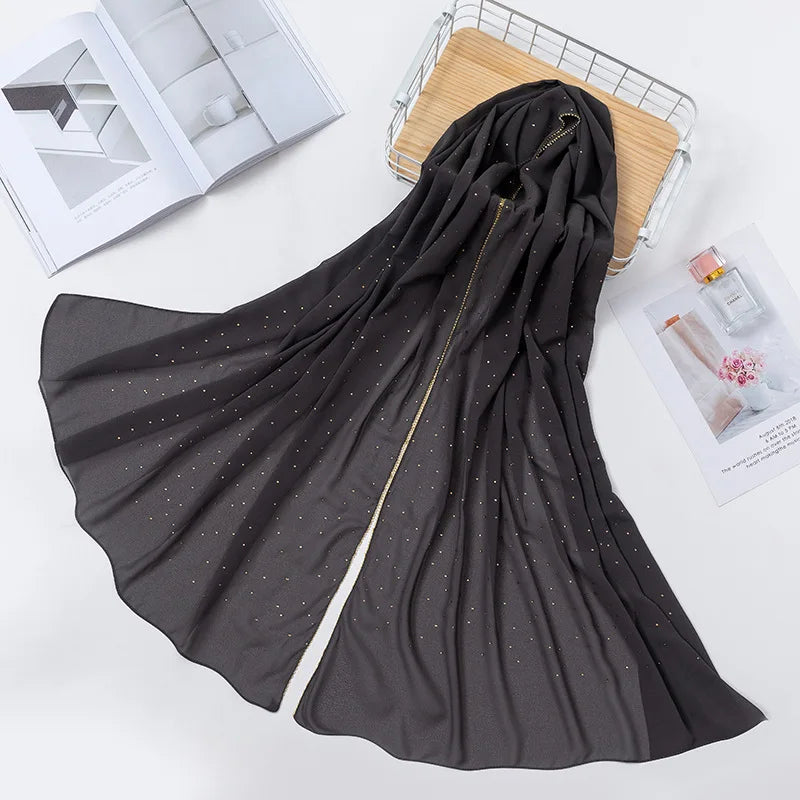 ❤FASHION DESIGN - Bling bubble chiffon hijab scarf shimmer with crystal rhinestone edged,The rhinestones on the shawl are not easy to fall off. Exquisite and delicate accessories, shiny and fashionable