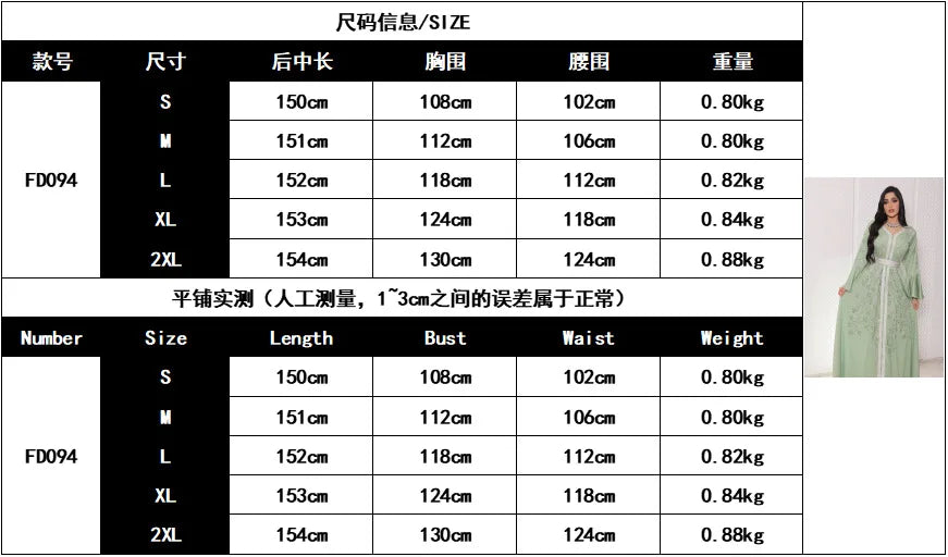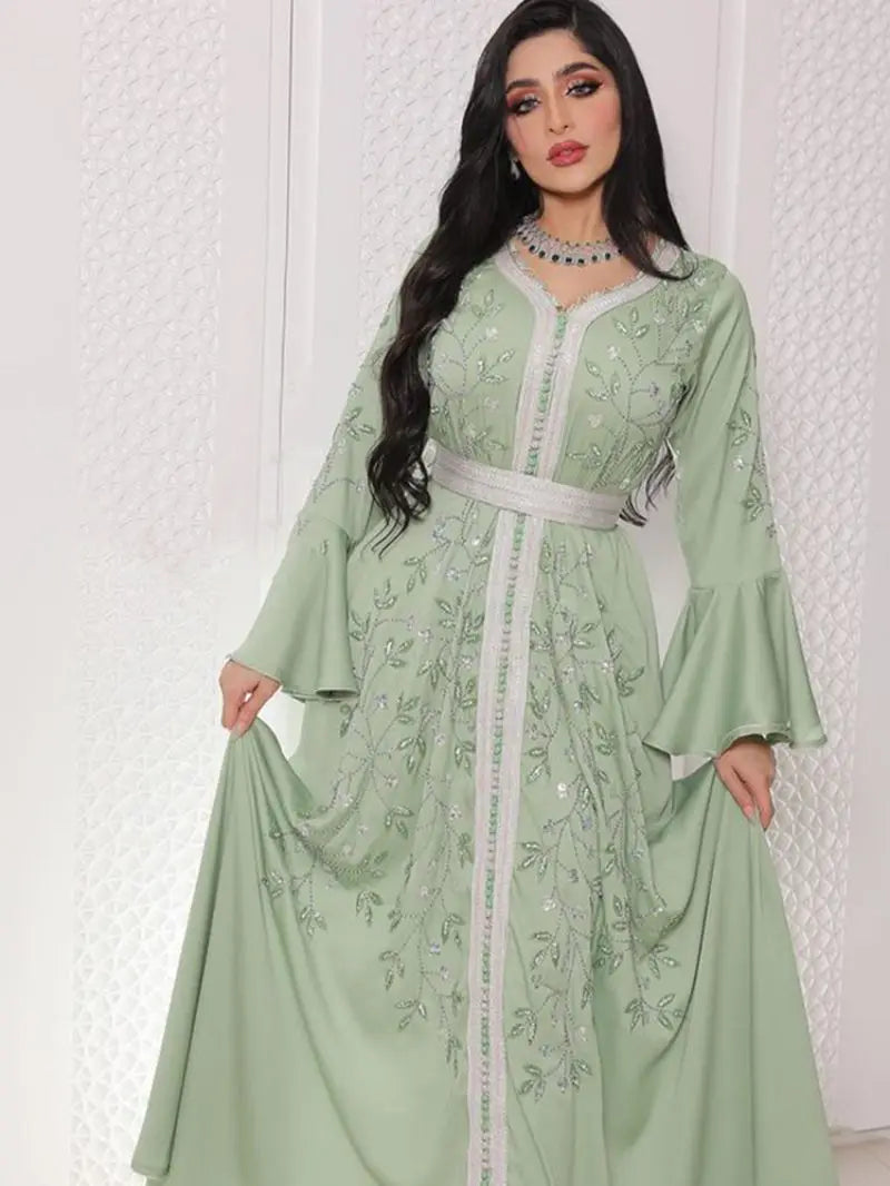 Middle East Hot Diamond Kaftan Robe Dress V-neck High Waist 2025 Autumn And Winter New Fashion High Street Long