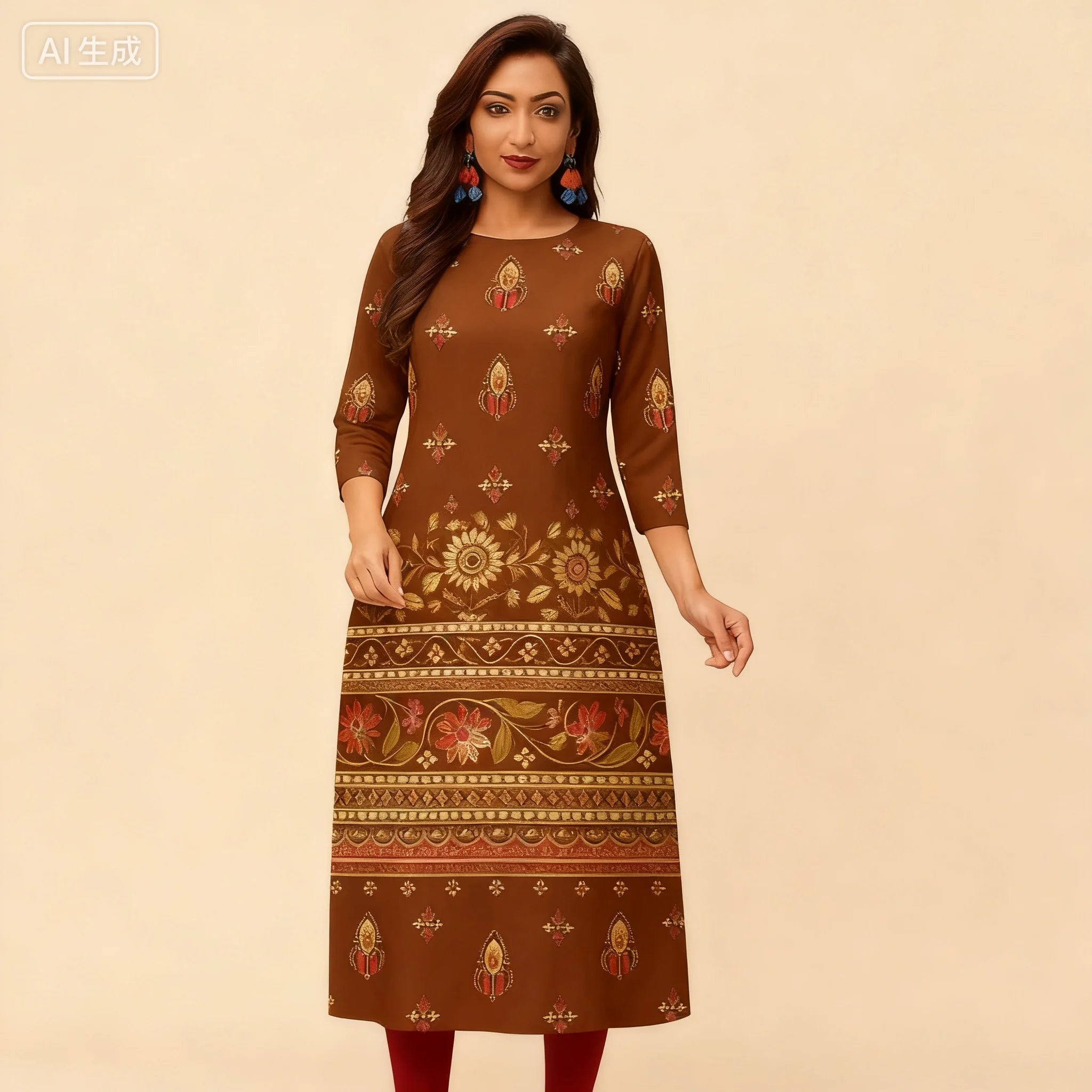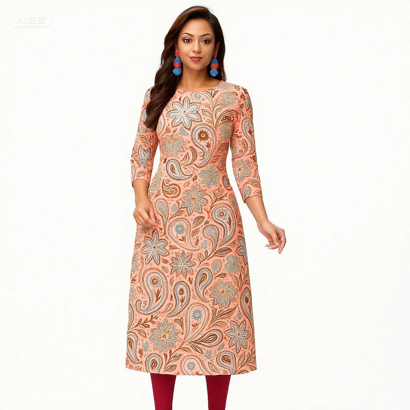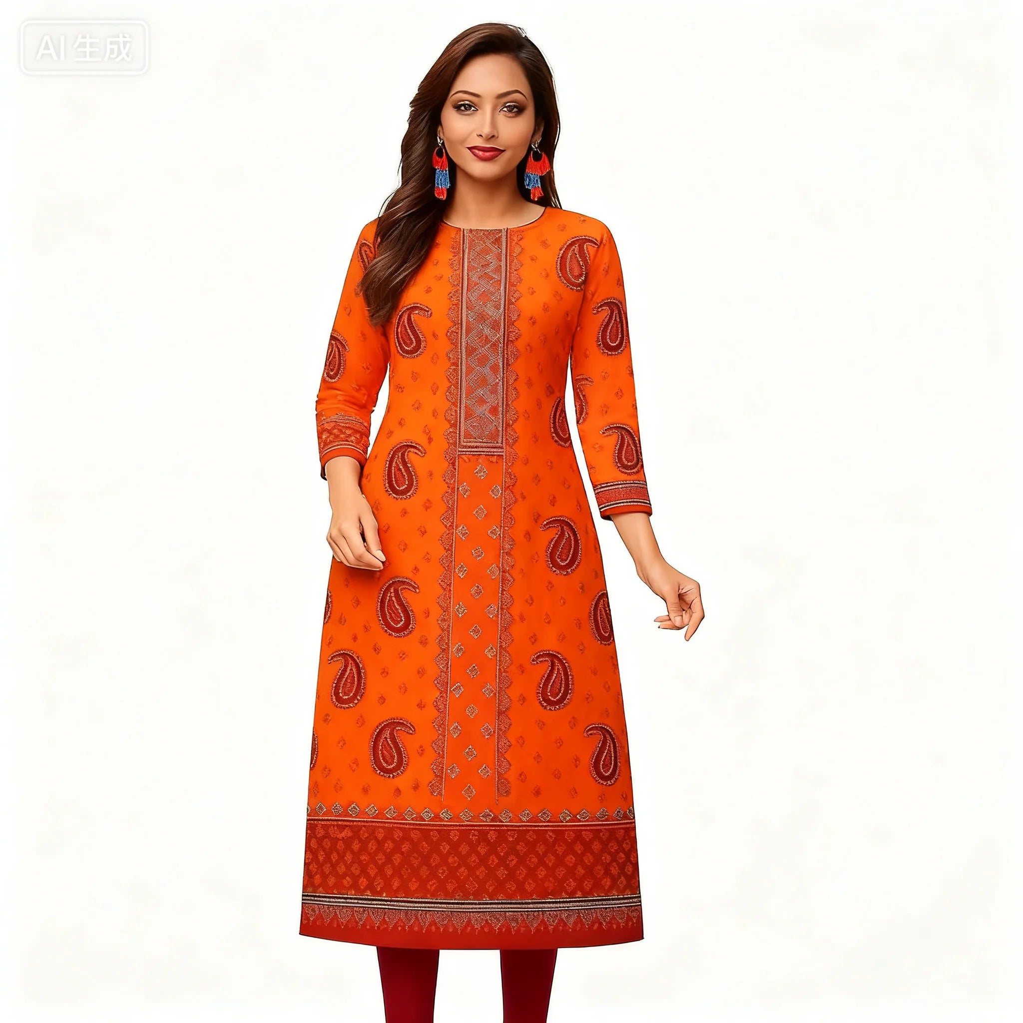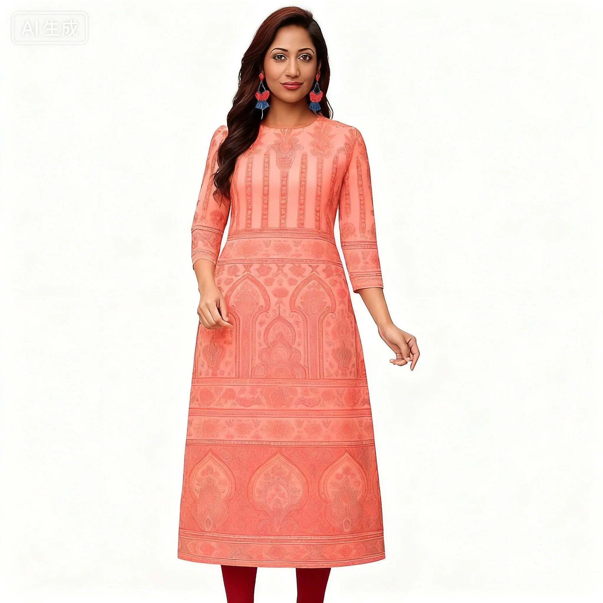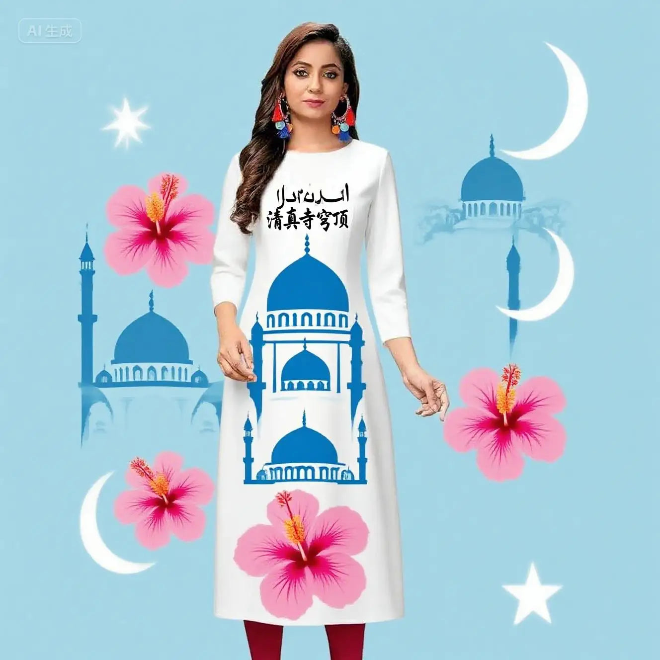Muslim 2026 Women's Kurt Fashionable And Elegant Straight Tube Casual Kurtta Abito Donna Musulmana Girls Prayer Dress