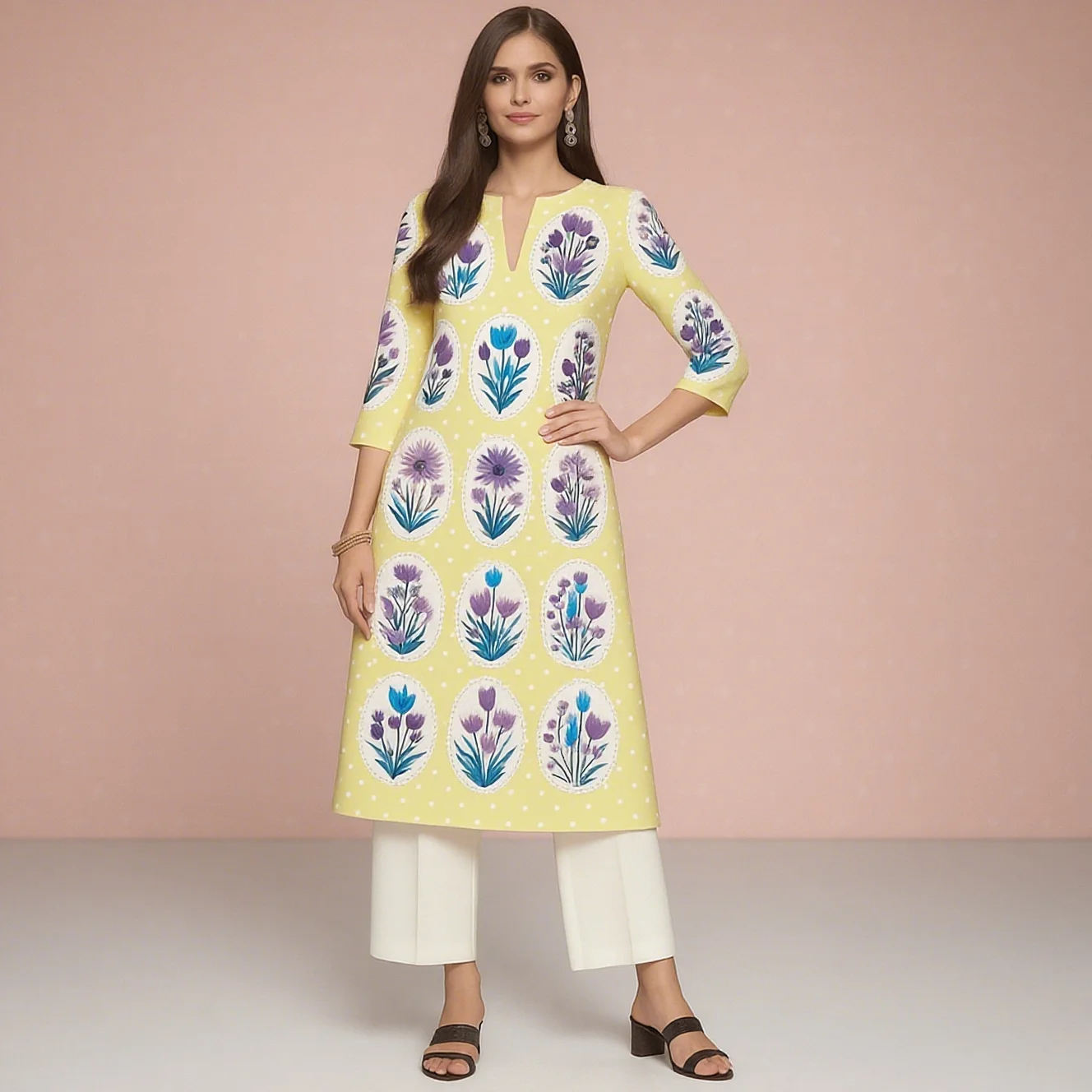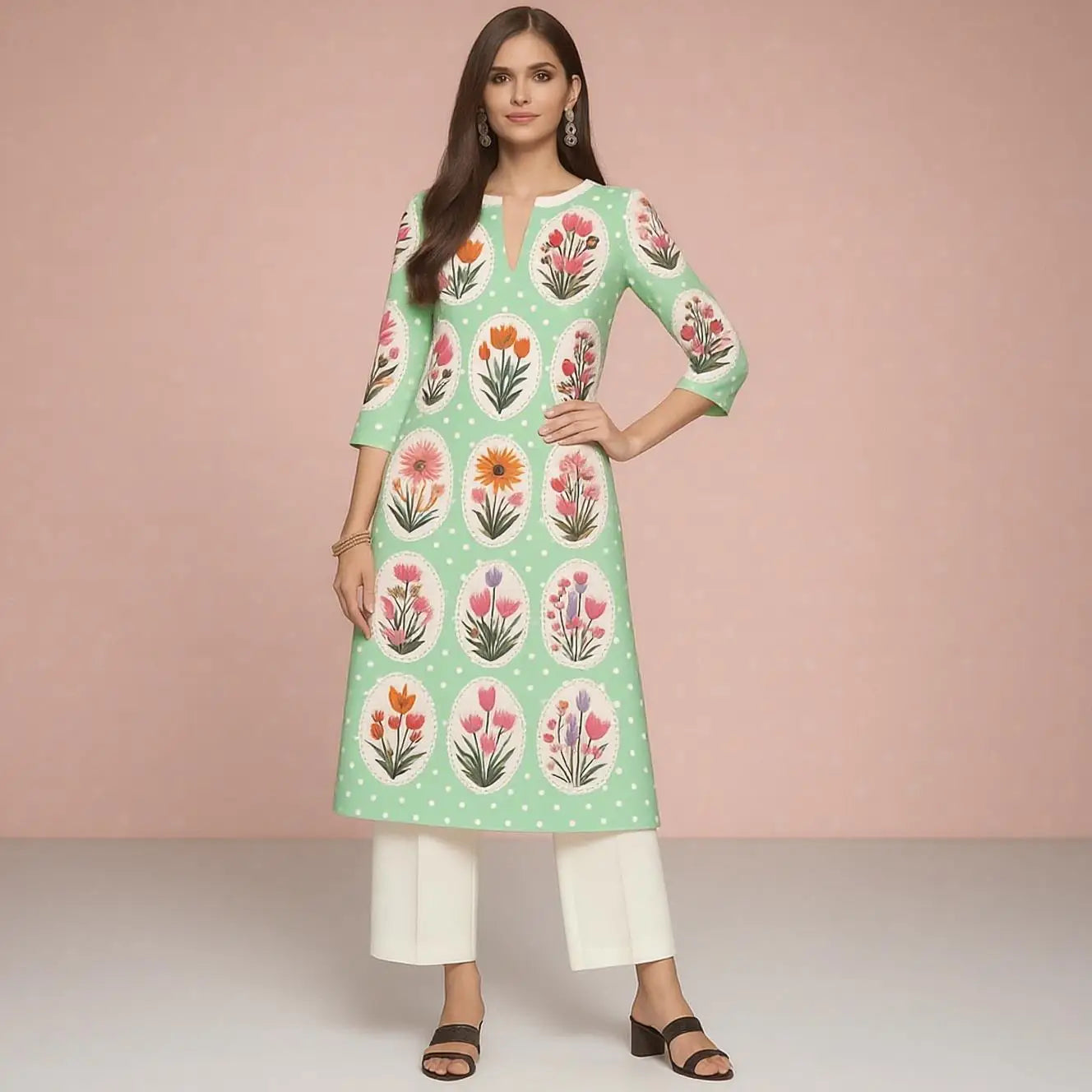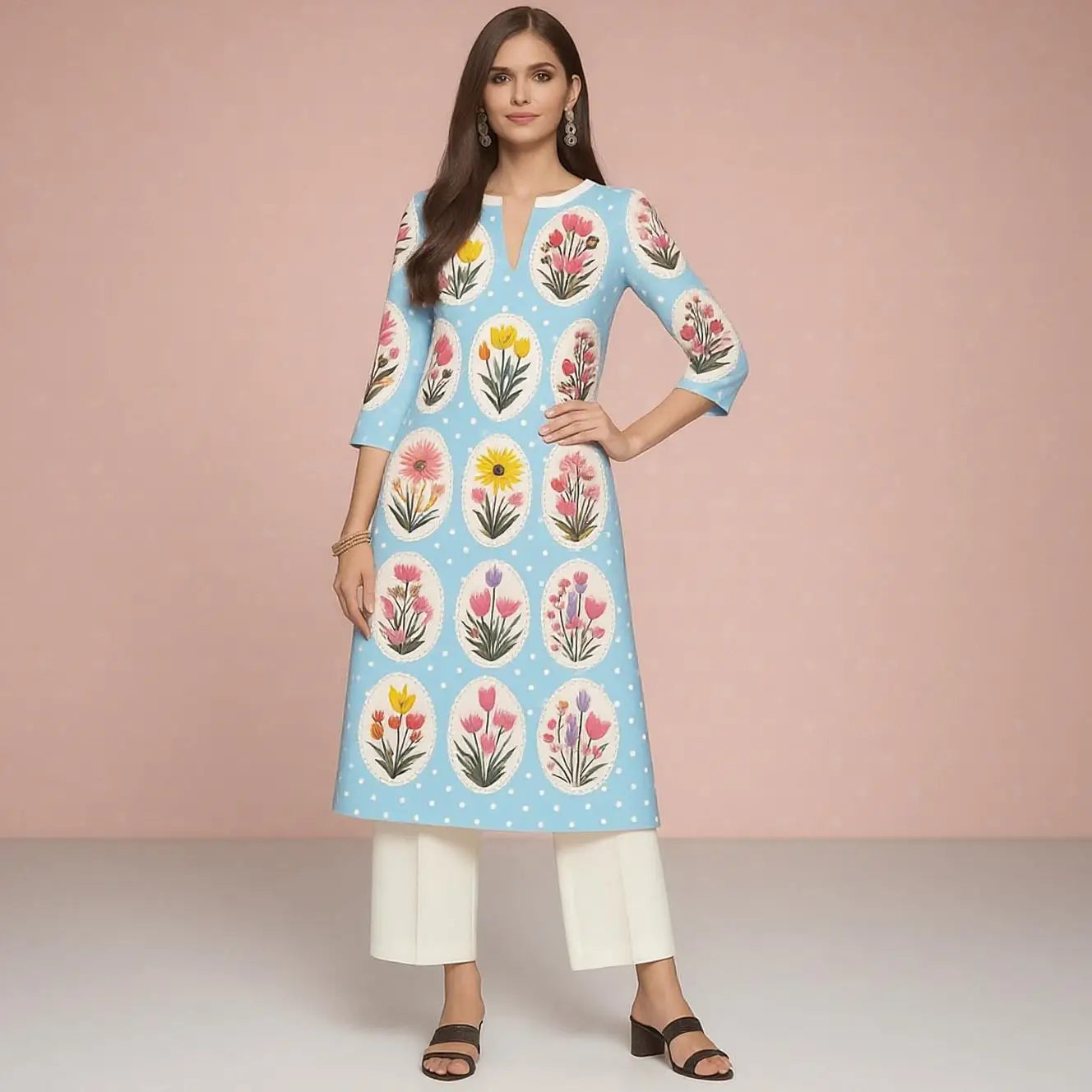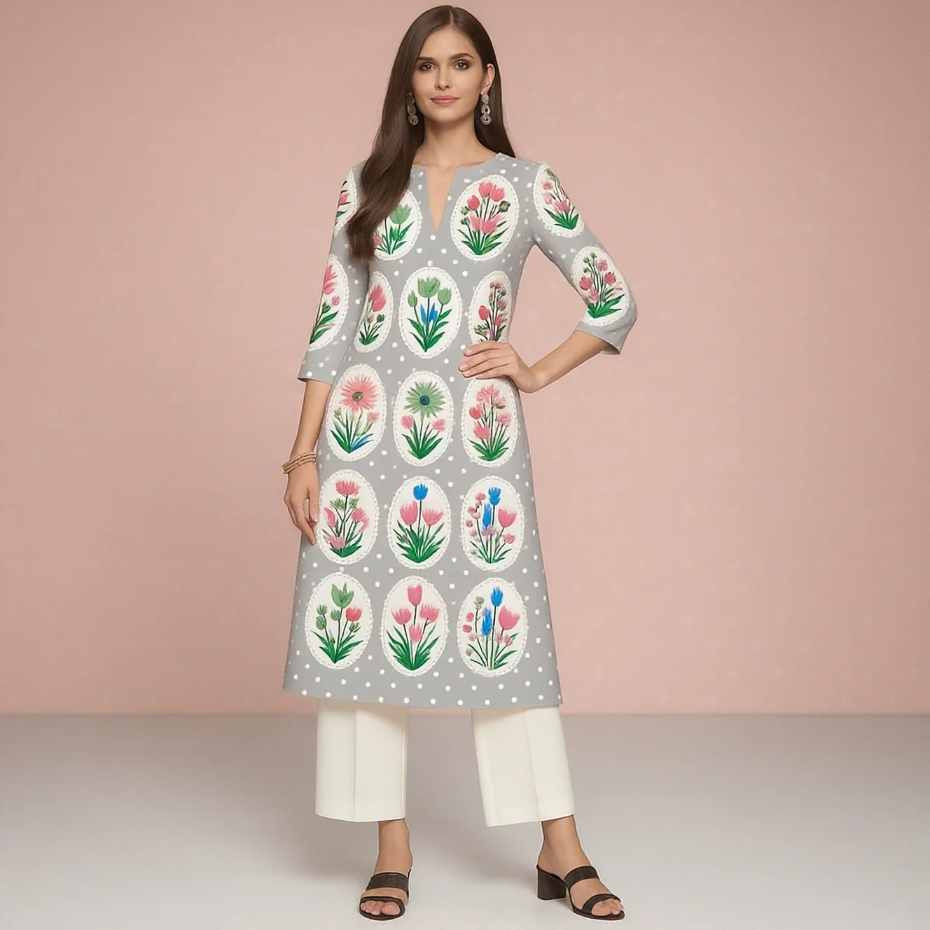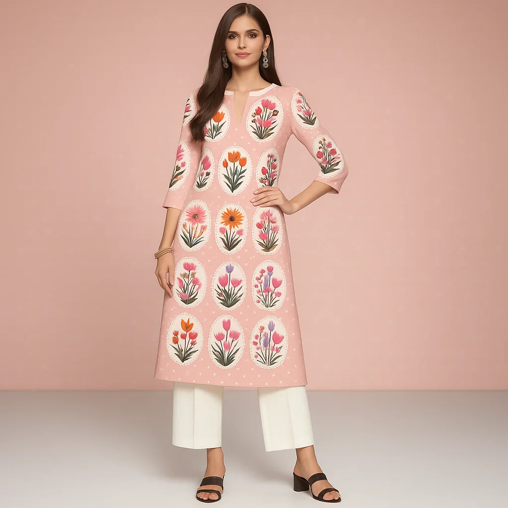 Muslim 2026 Women's Kurt Fashionable And Elegant Straight Tube Casual Peacock Pattern Flowers Comfortable Dress Abayas Femme