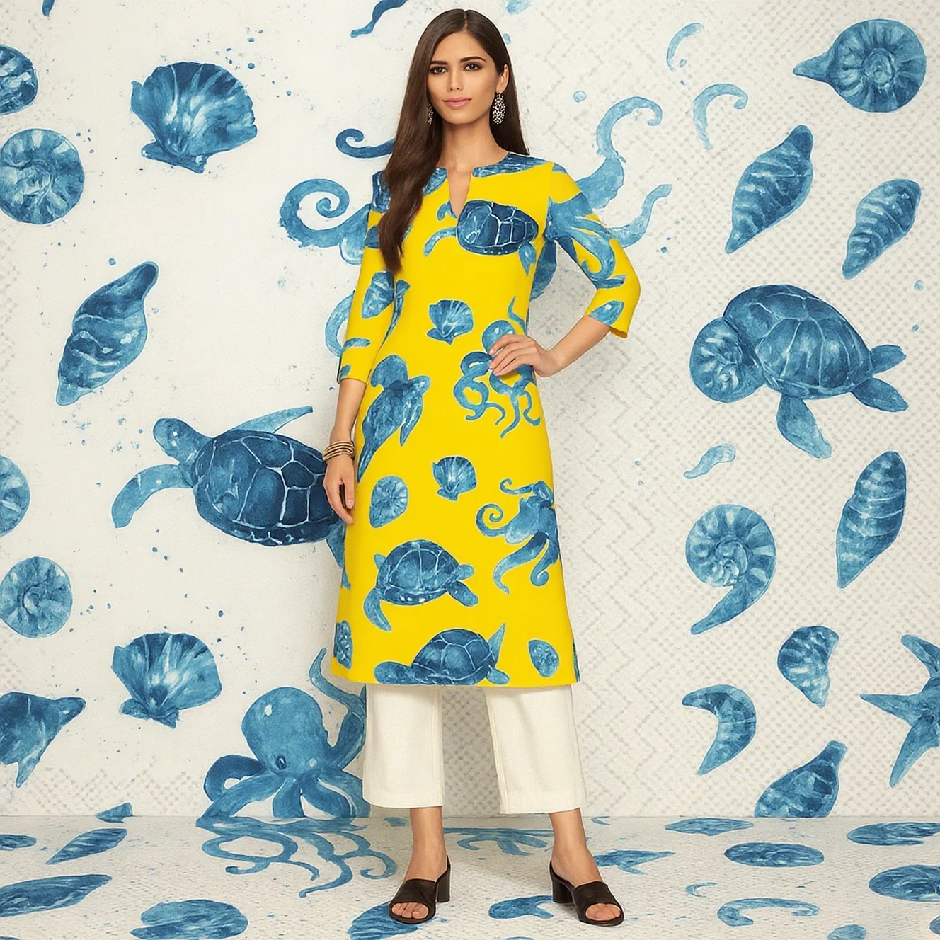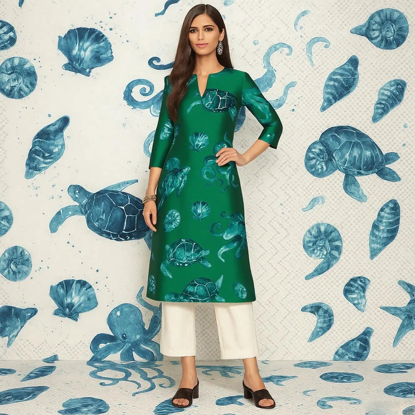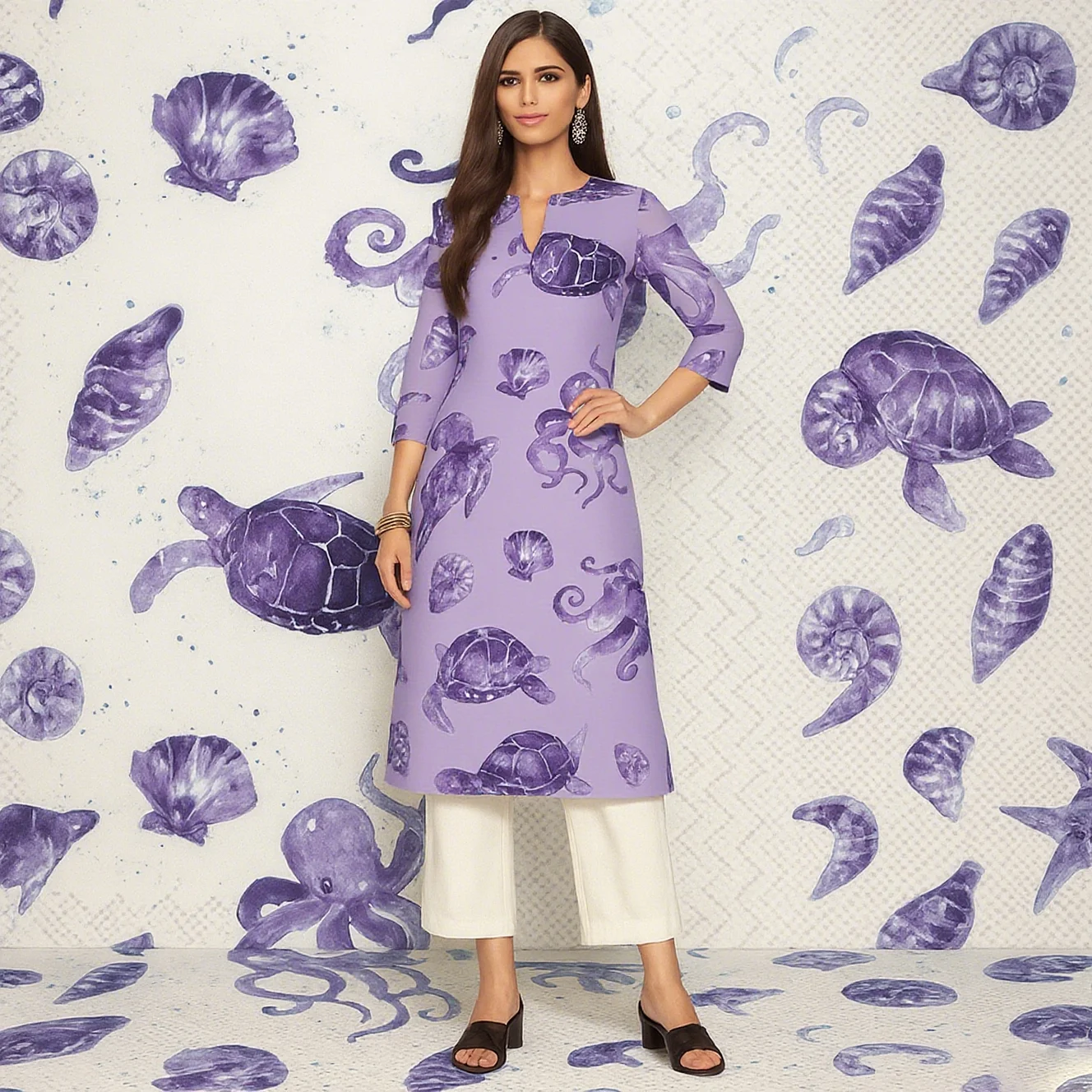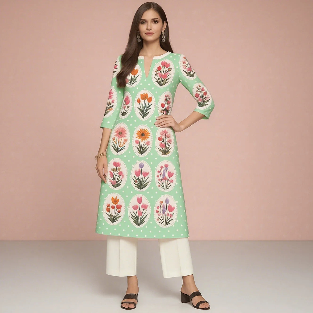 Muslim 2026 Women's Kurt Fashionable And Elegant Straight Tube Casual Peacock Pattern Flowers Comfortable Dress Abayas Femme