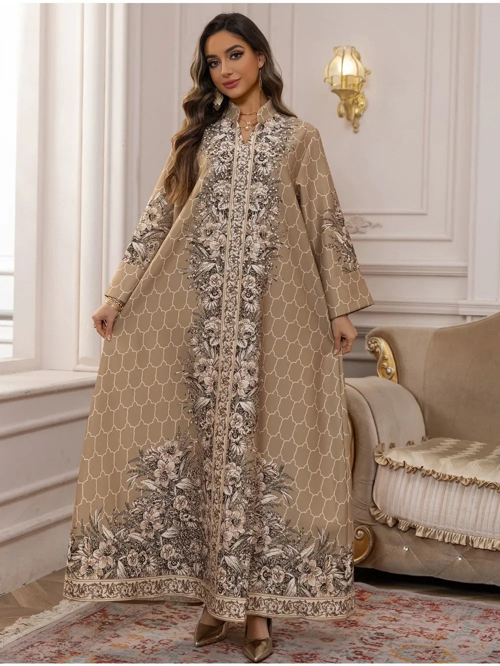 Muslim Dress Women Abaya for Eid Diamond Party Dresses Arab Long Robe Print Abayas Dubai Morocco Kaftan Islam Jalabiya Vestidos