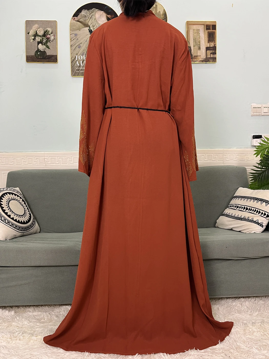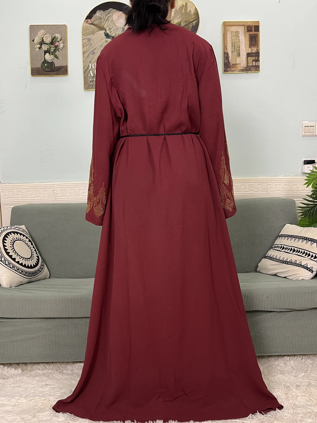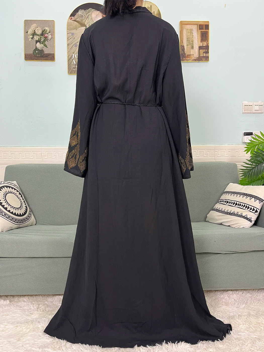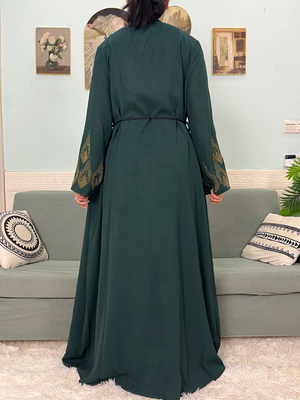 Muslim Open Abayas For Women 2024 Pure Chiffon Zipper Diamonds Loose Femme Robe Islam Dubai Boubou Moroccan Caftan With Turban