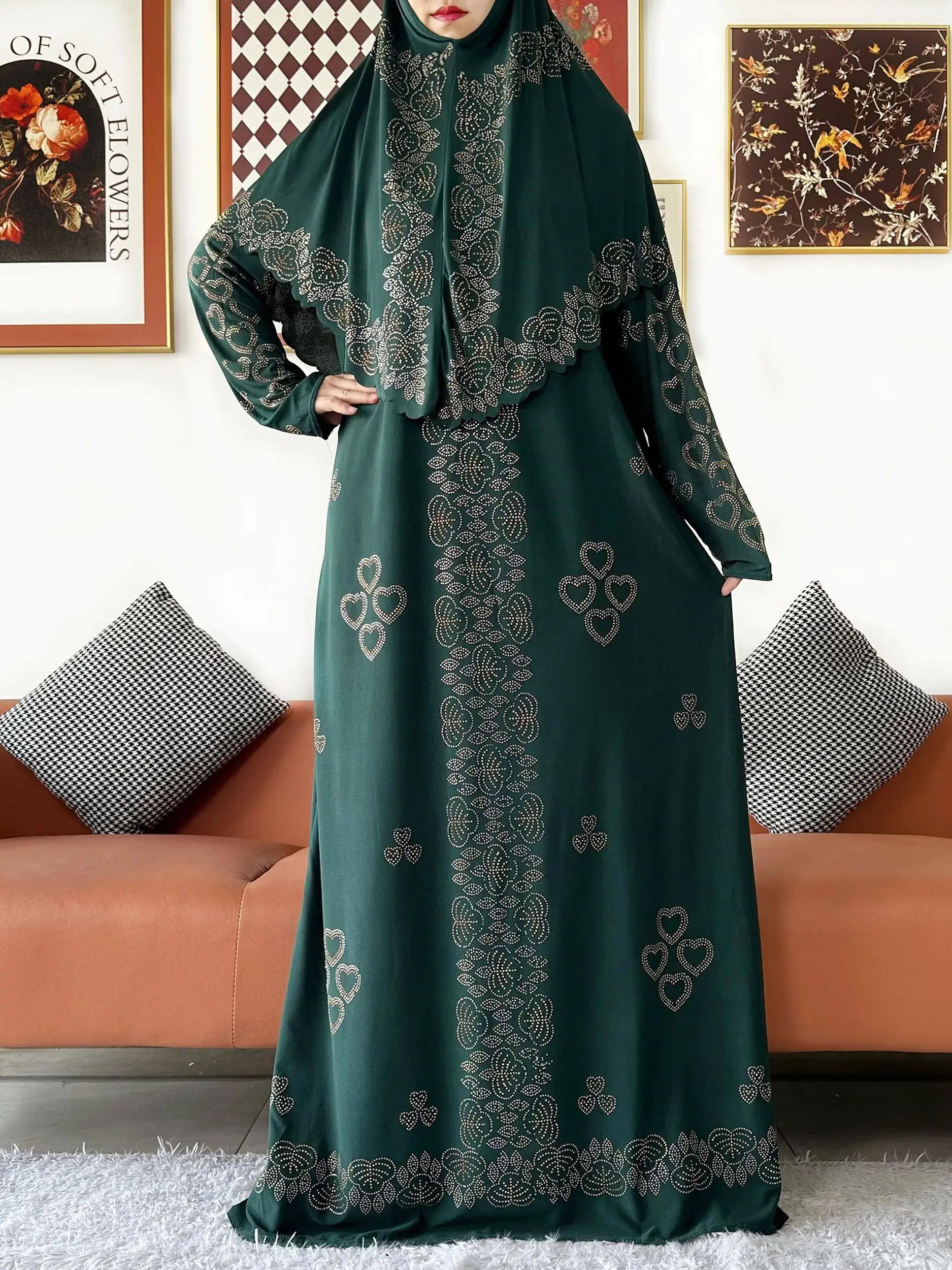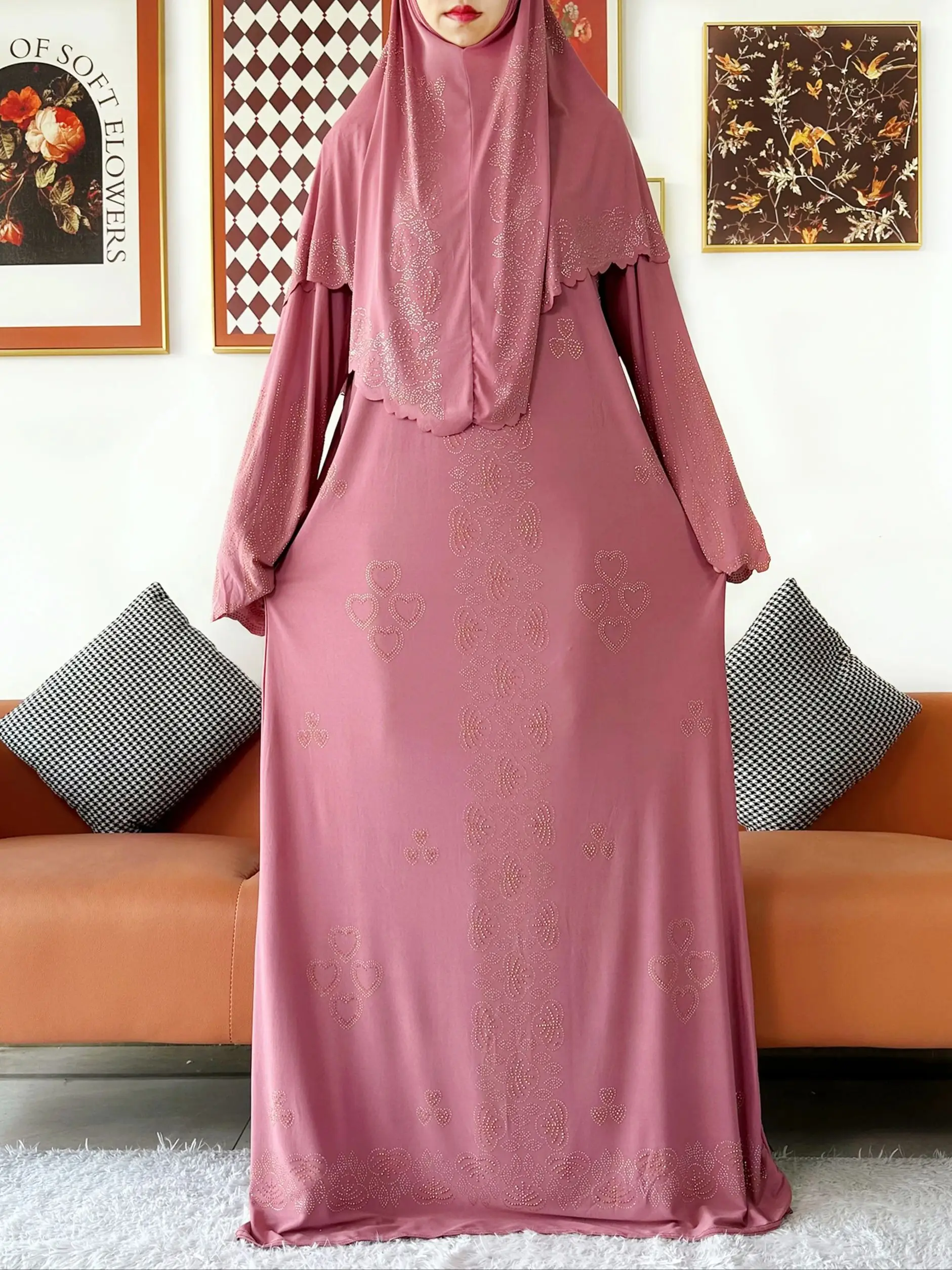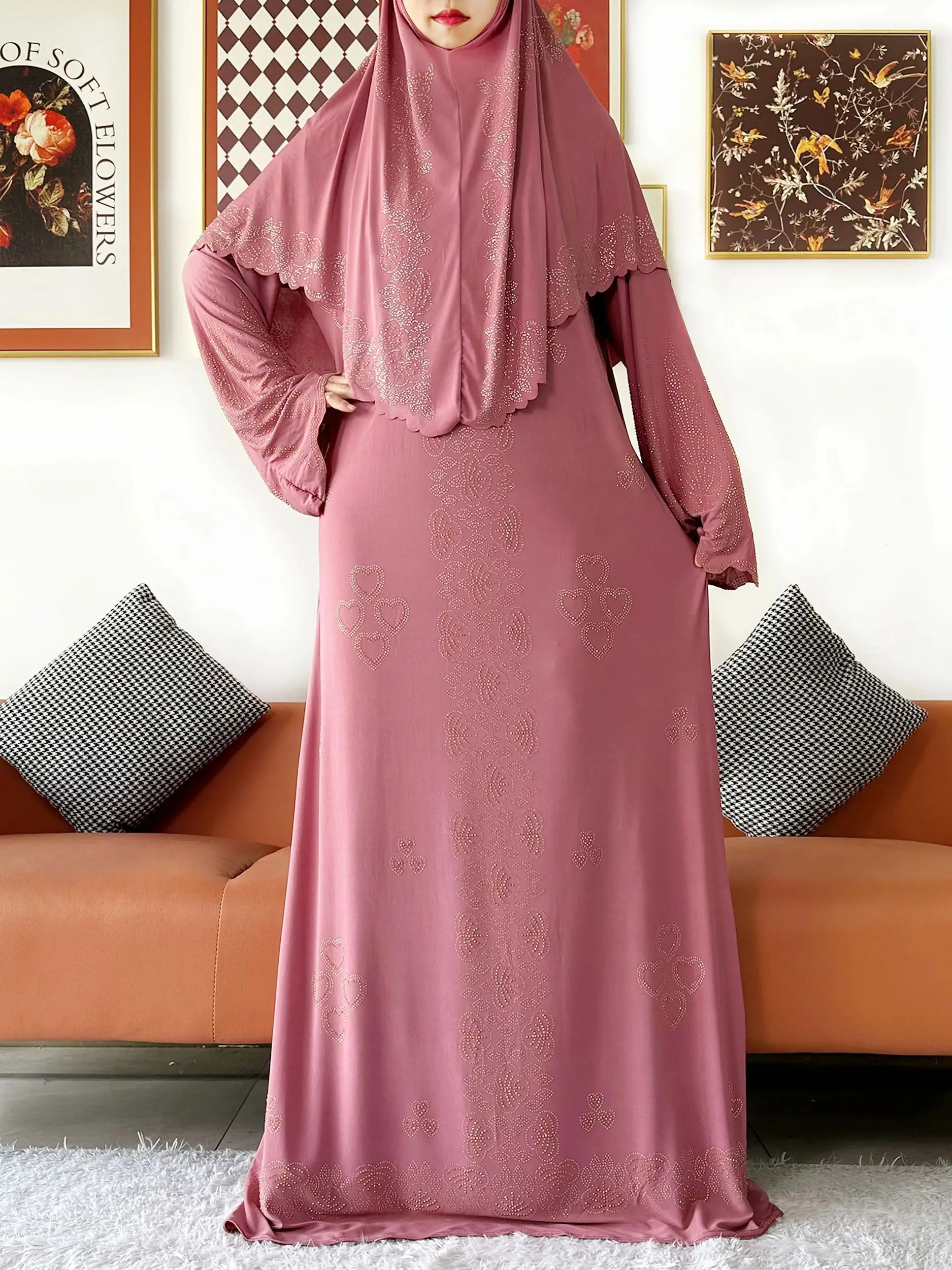 Muslim Two Piece Set Hijab Prayer Dress Fashion Abaya Set Women Prayer Garment Hijab Long Khimar Long Dress Sets Islamic Ramadan