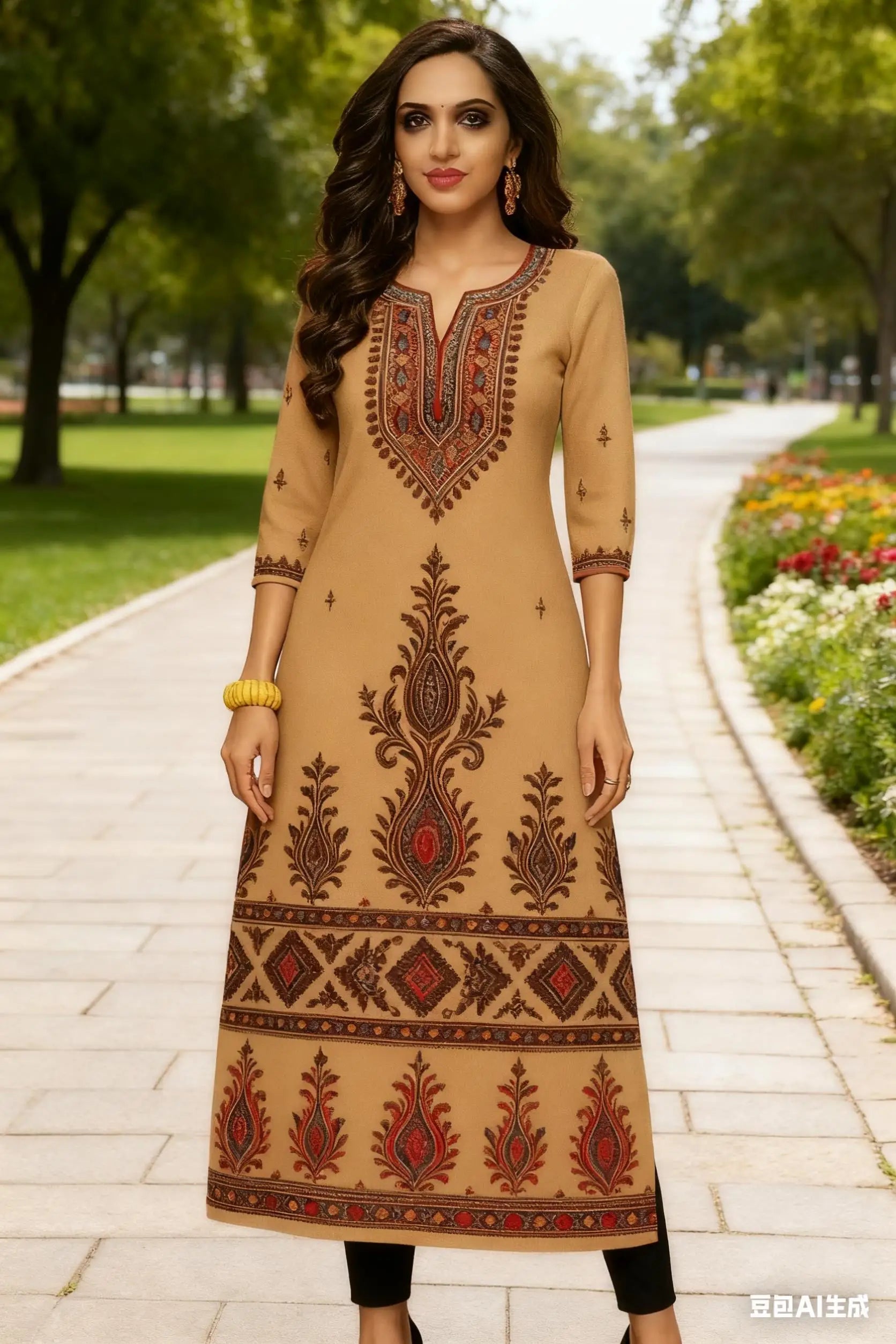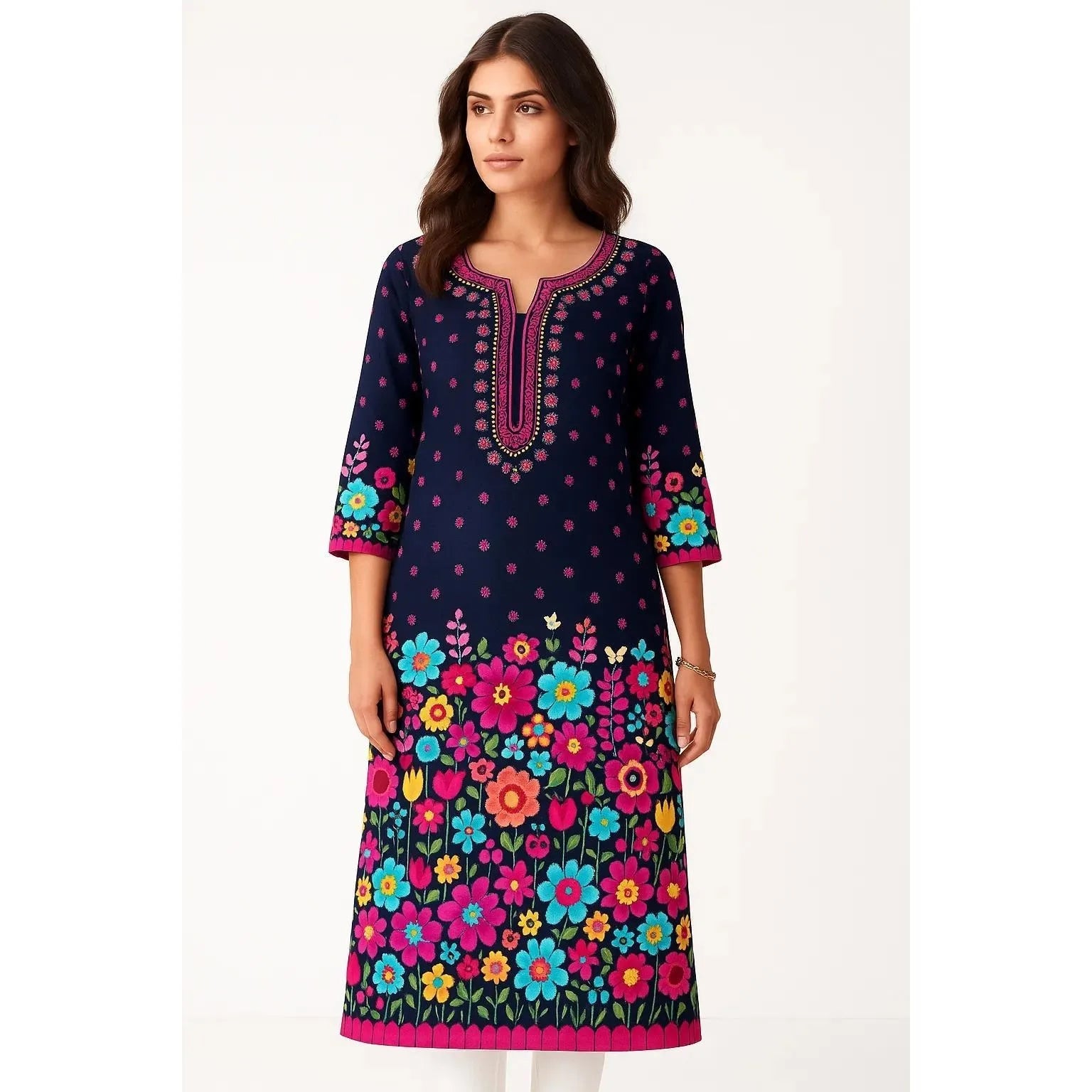 Muslim Women Kurt Casual Dress Middle Eastern Straight Casual Ethnic Flower Mandarin National Style Caftan Marocain Femme