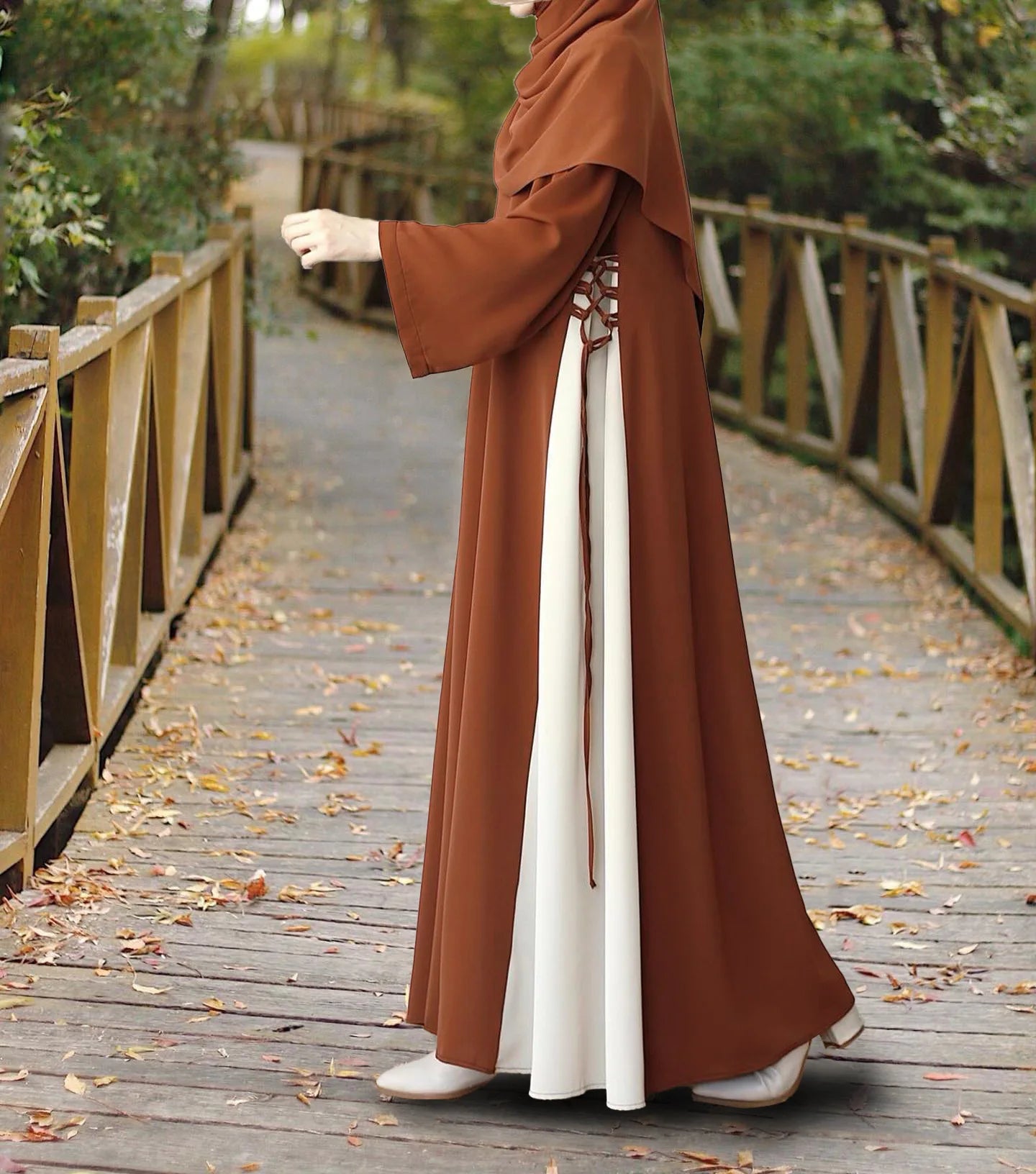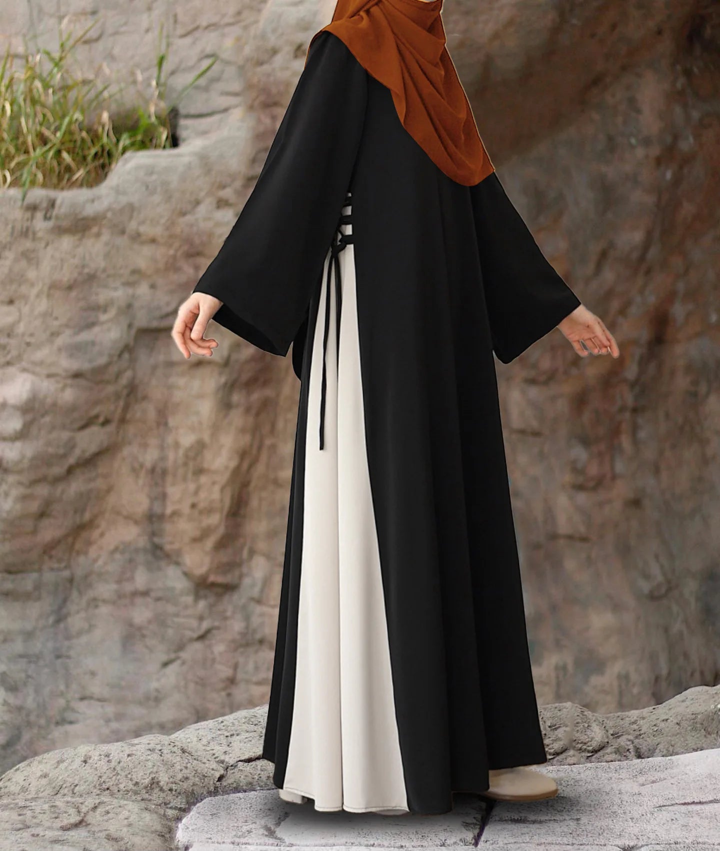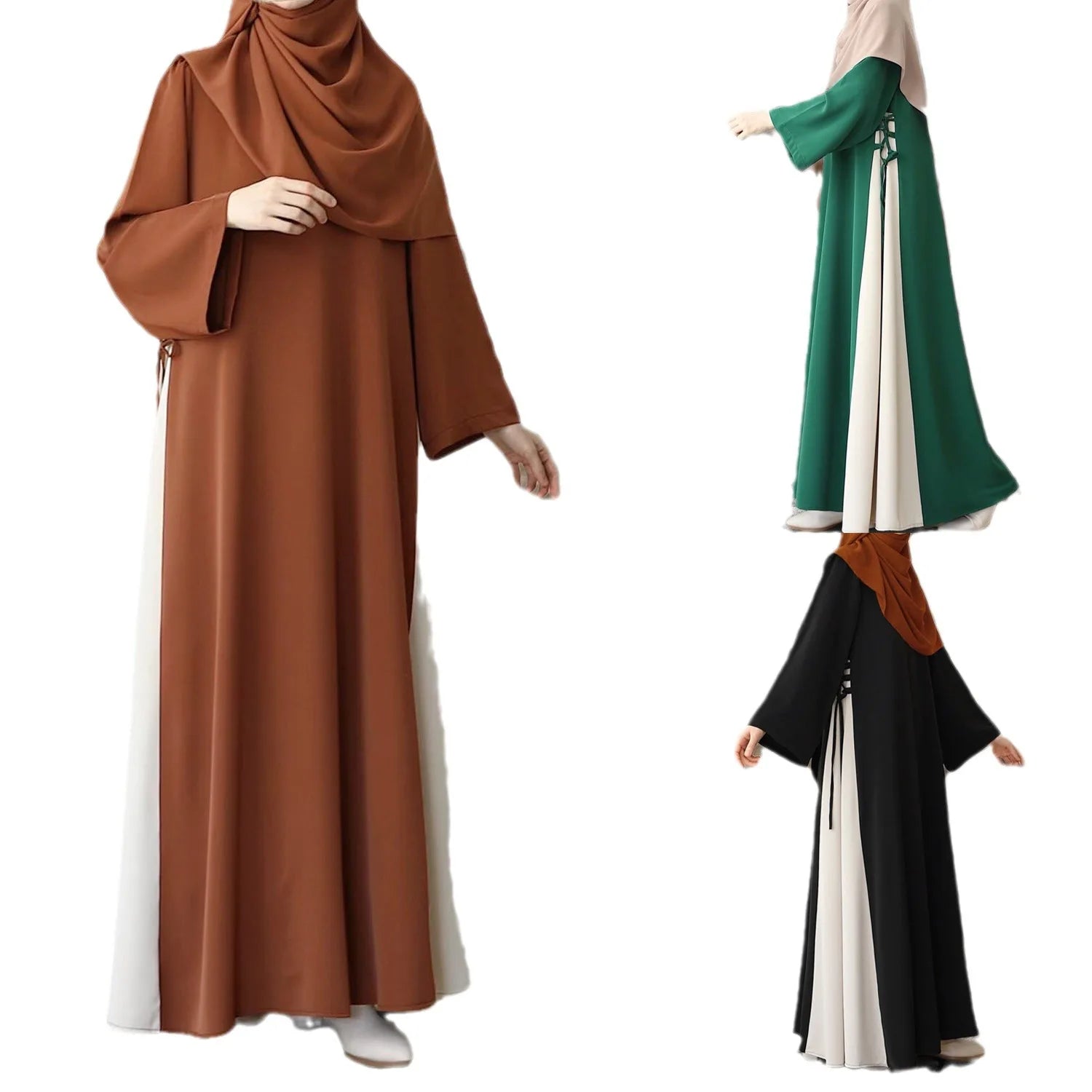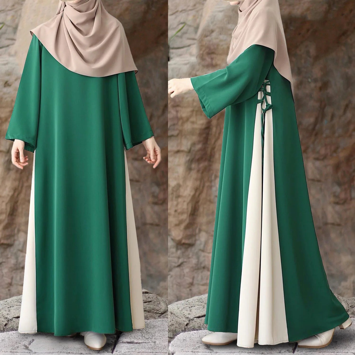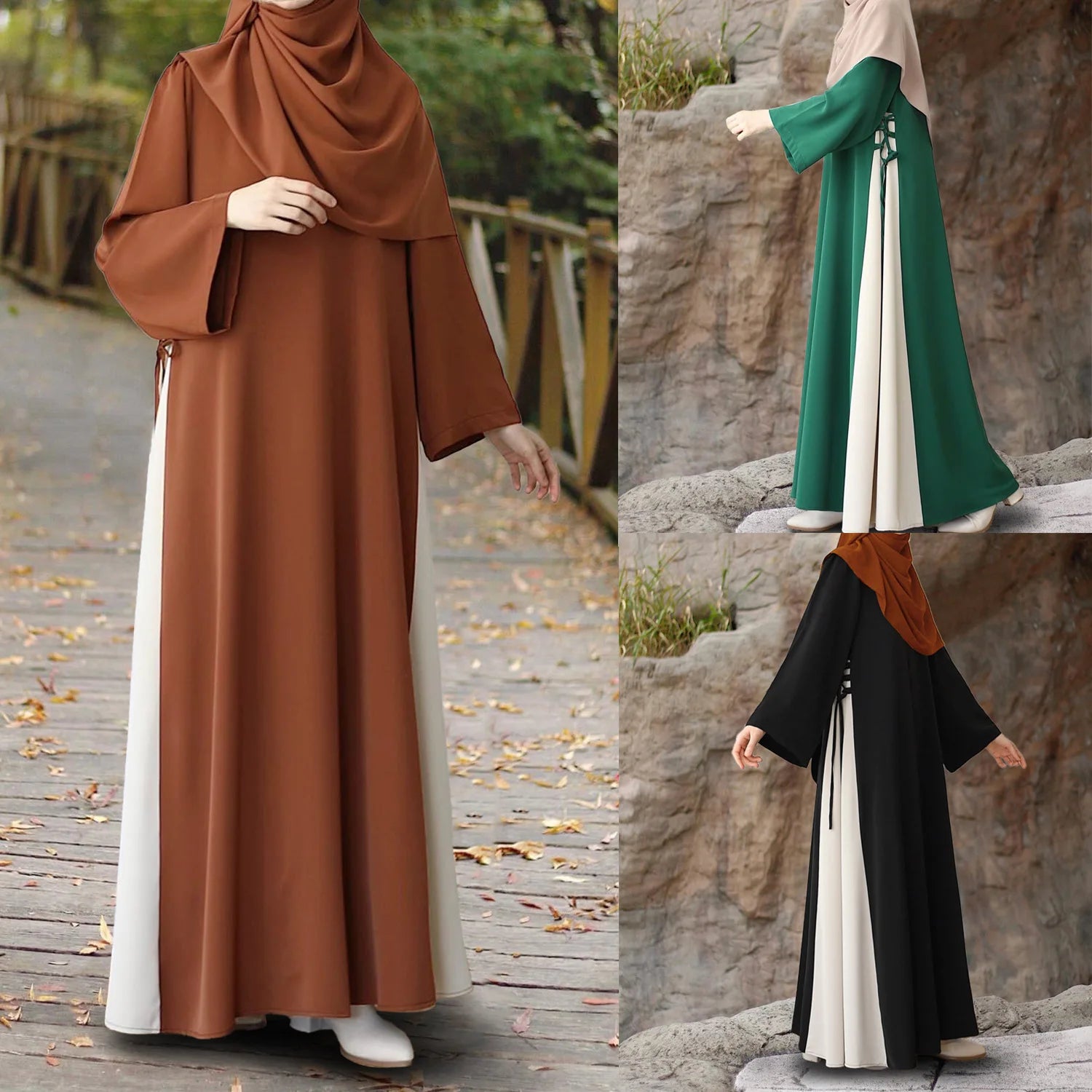 Muslim Women Modest Long Dress Patchwork Drawstring Arab Robe Vestidos Jalabiya Dubai Saudi Abayas Morocco Eid Ramadan Dresses