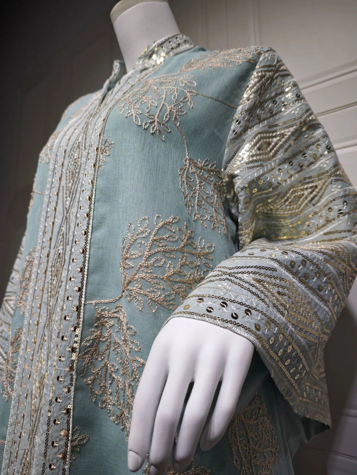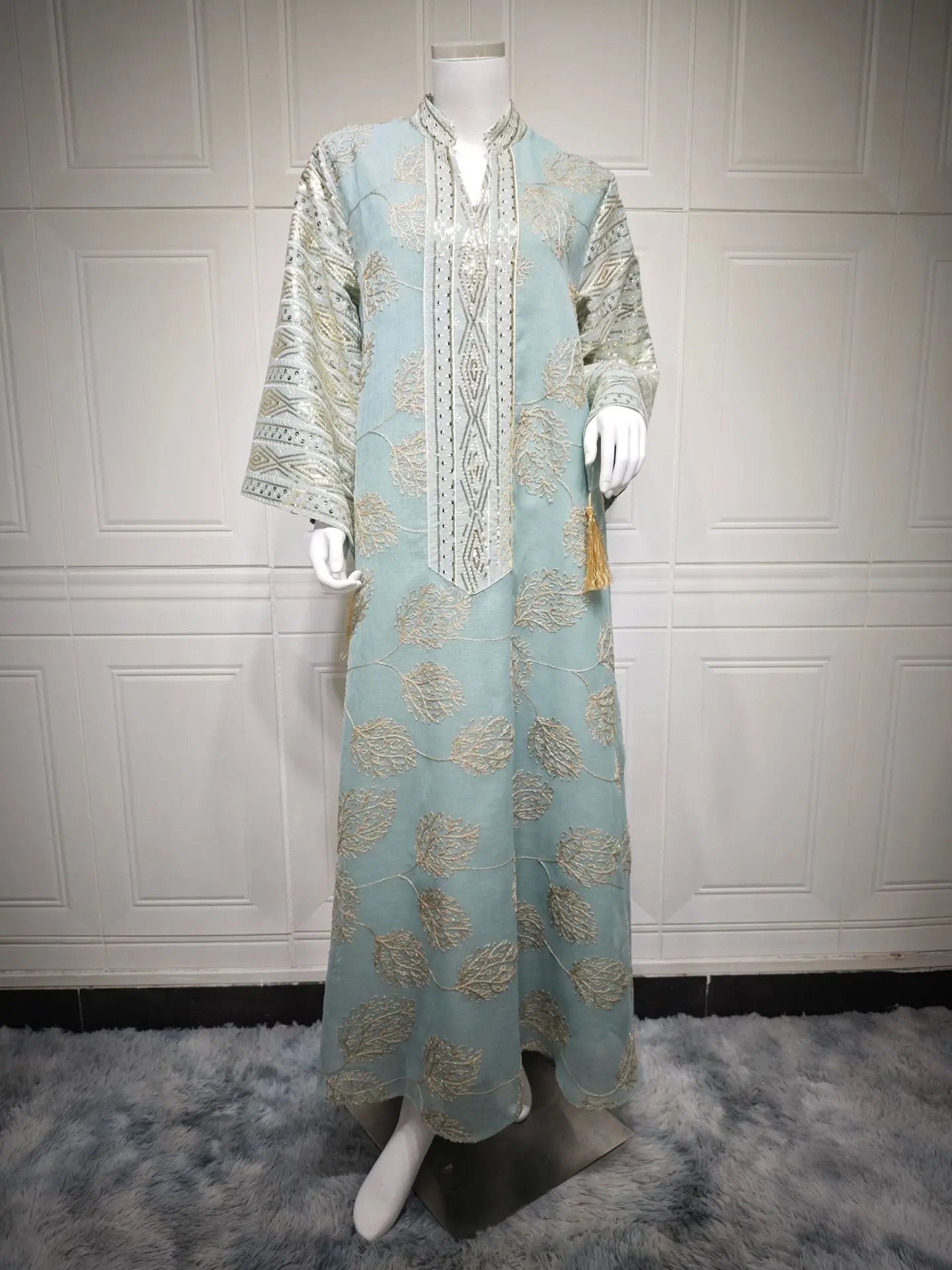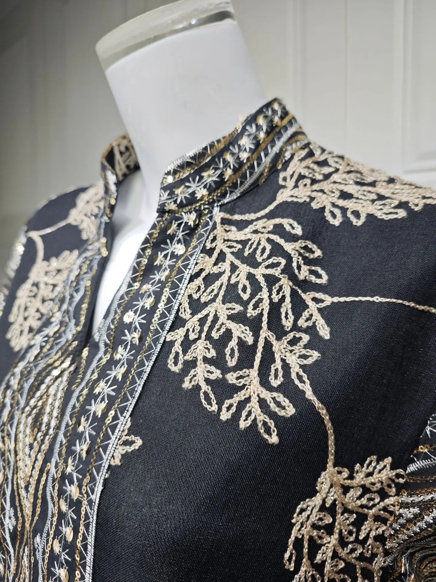 Muslim Women's Black Islamic Embroidered Abaya with Gold Detailing Ideal for Formal Occasions in Middle East like UAE and Saudi
