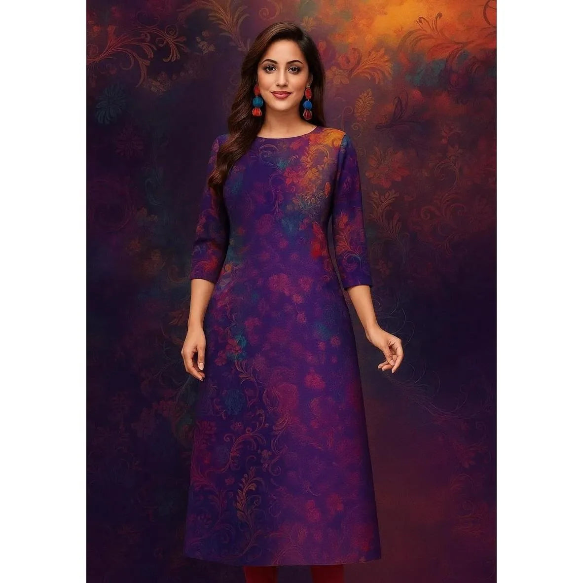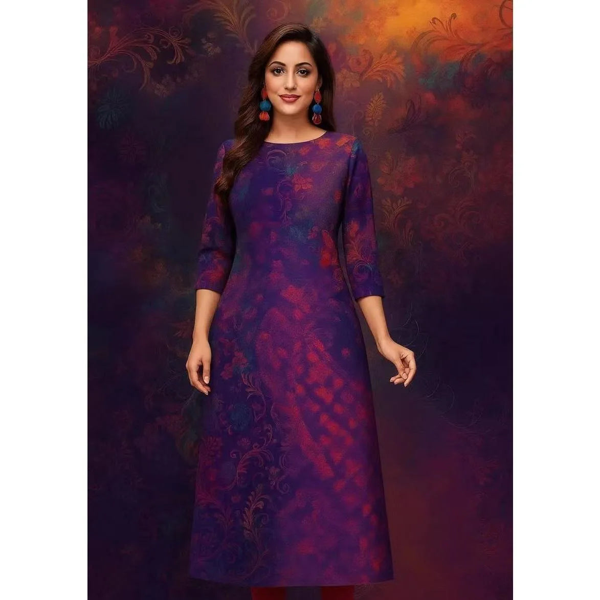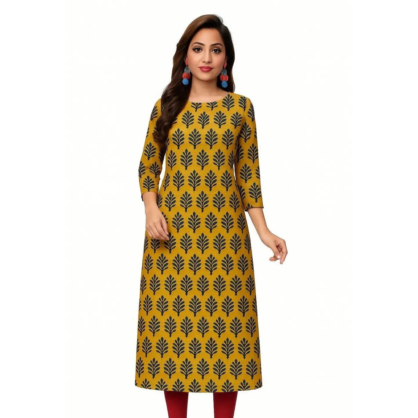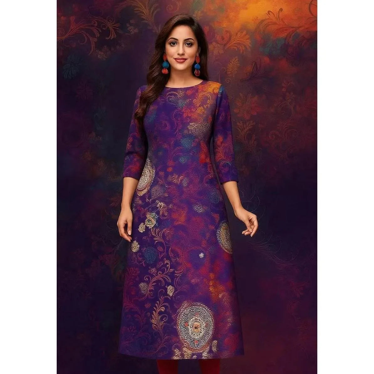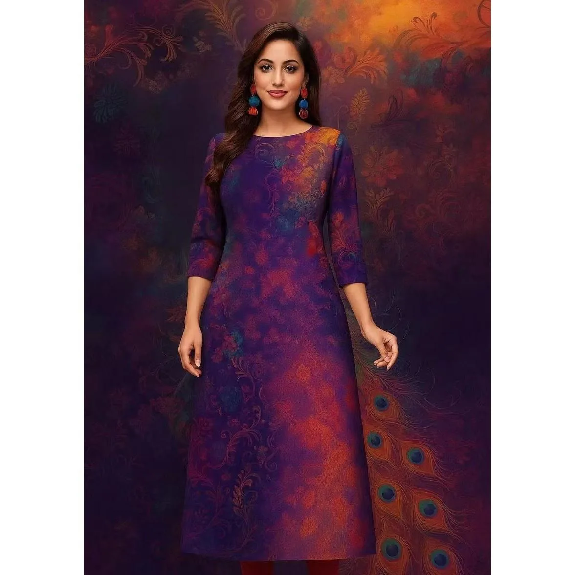 Muslim Women's Kurt Fashionable And Elegant Long Sleeved Straight Tube Casual Kurtta Peacock Pattern Kaftan Marroqui Slit hem