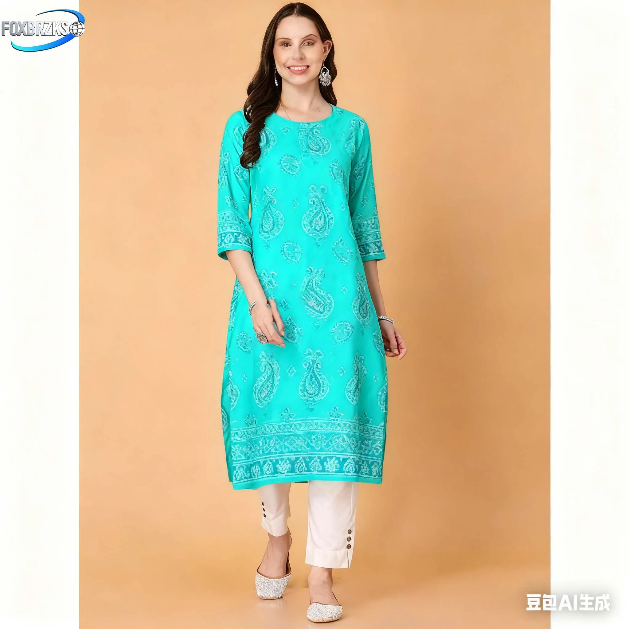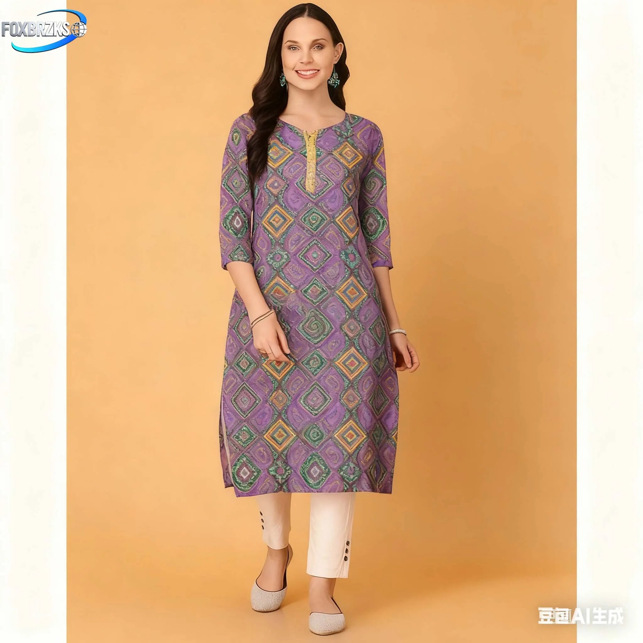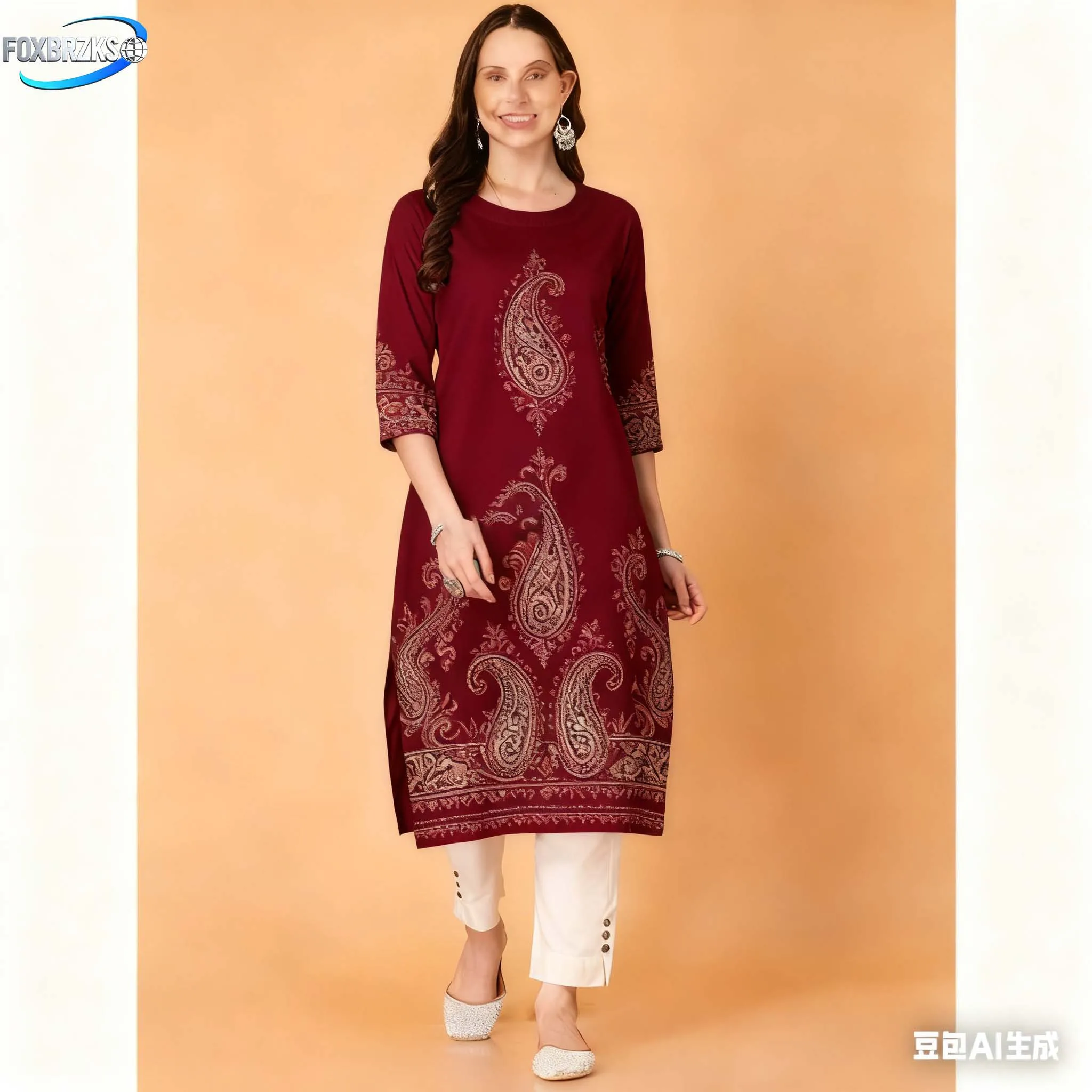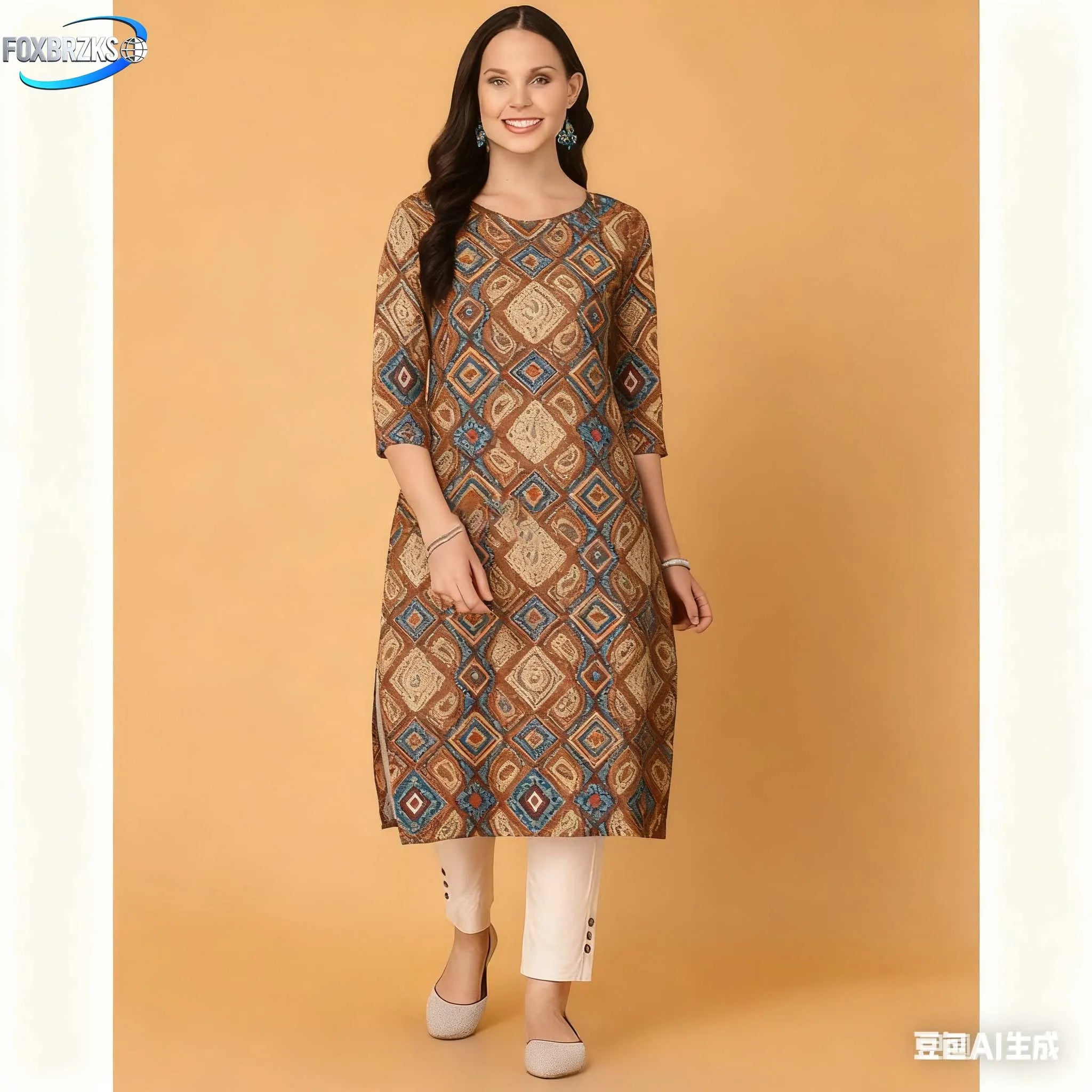 National style Kurt Women's Fashion Comfortable Slit hem Straight Casual Ethnic Flowers Pattern Robe Abito Donna Musulmana