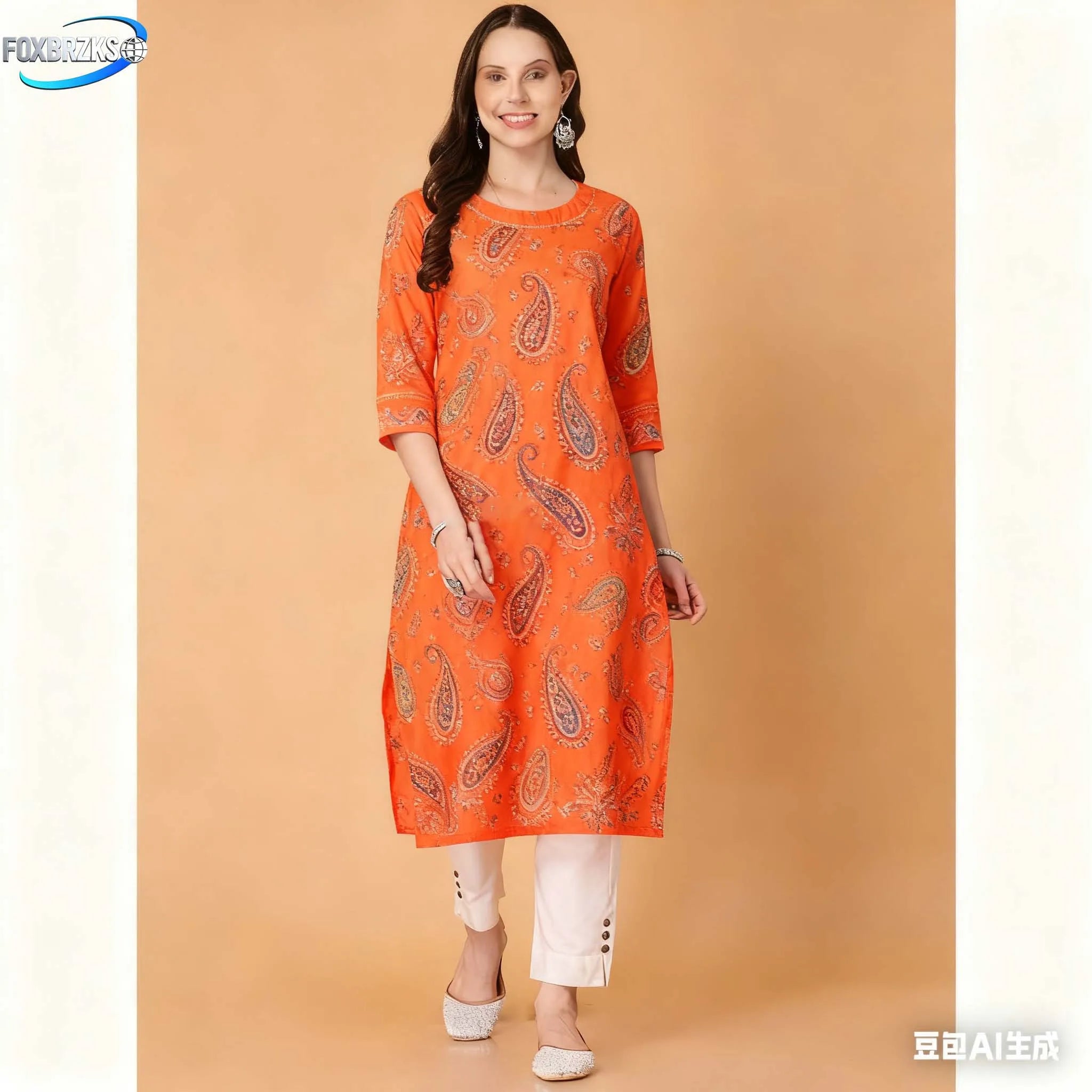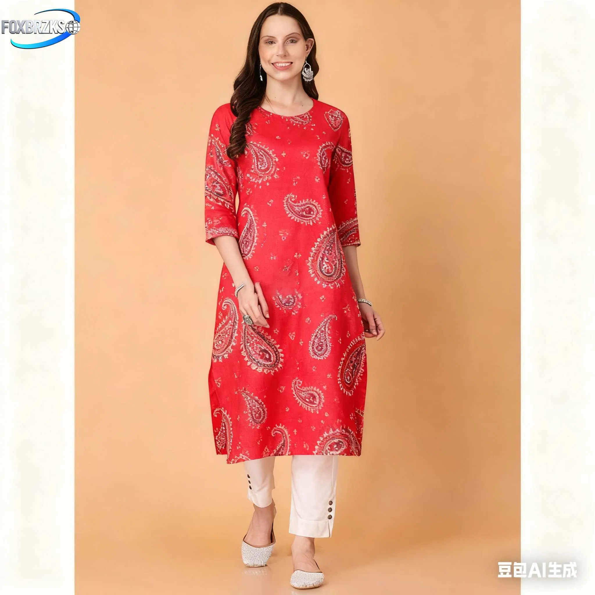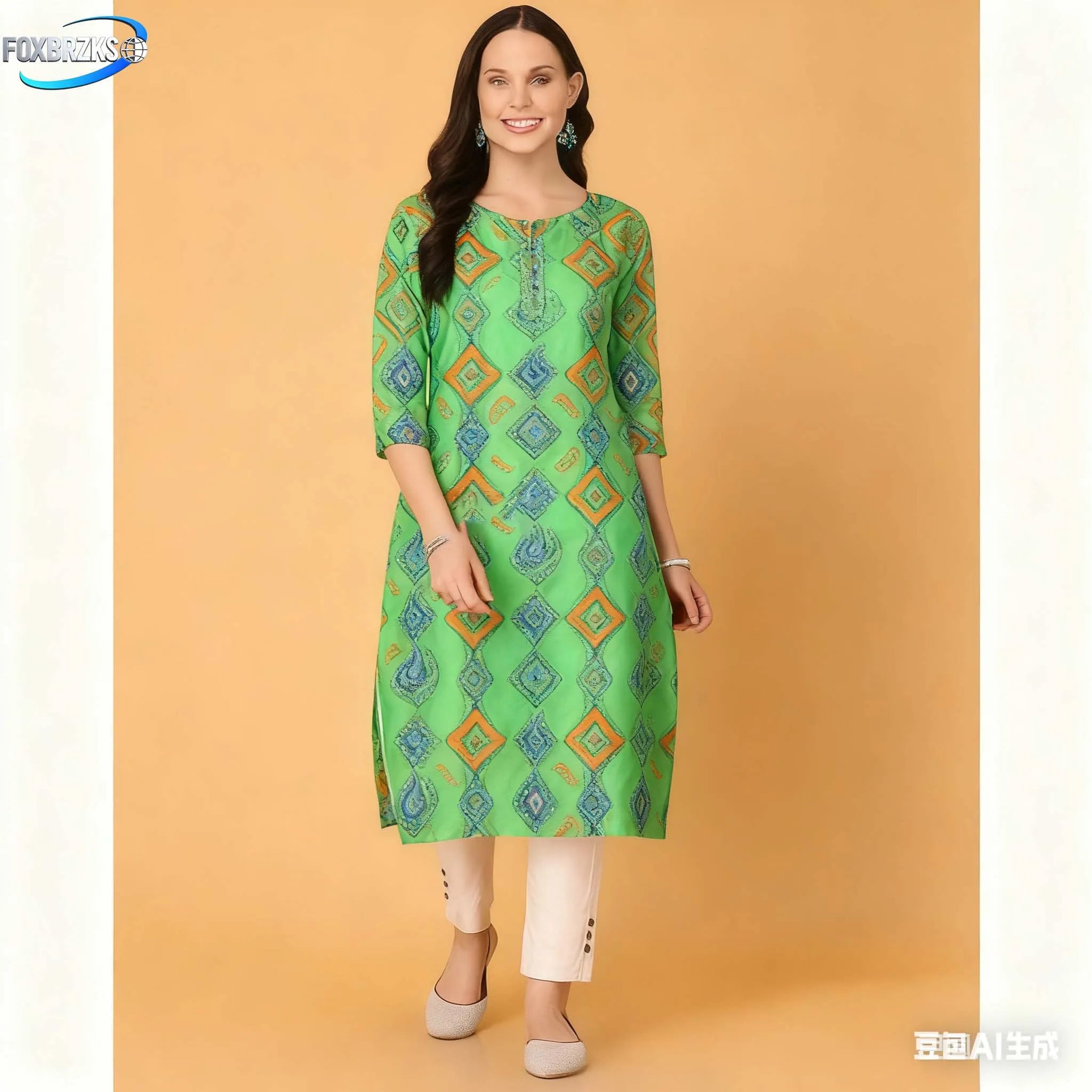 National style Kurt Women's Fashion Comfortable Slit hem Straight Casual Ethnic Flowers Pattern Robe Abito Donna Musulmana