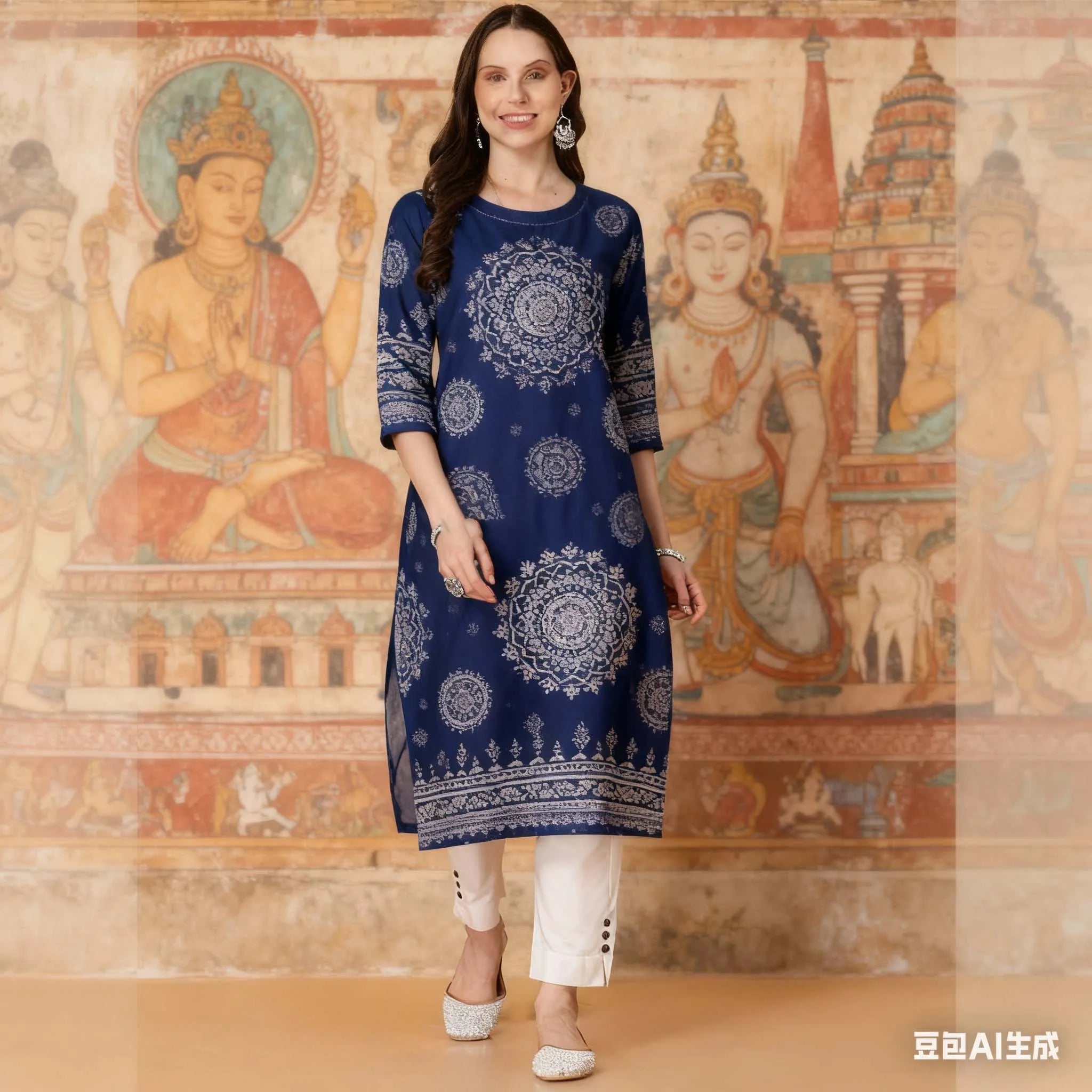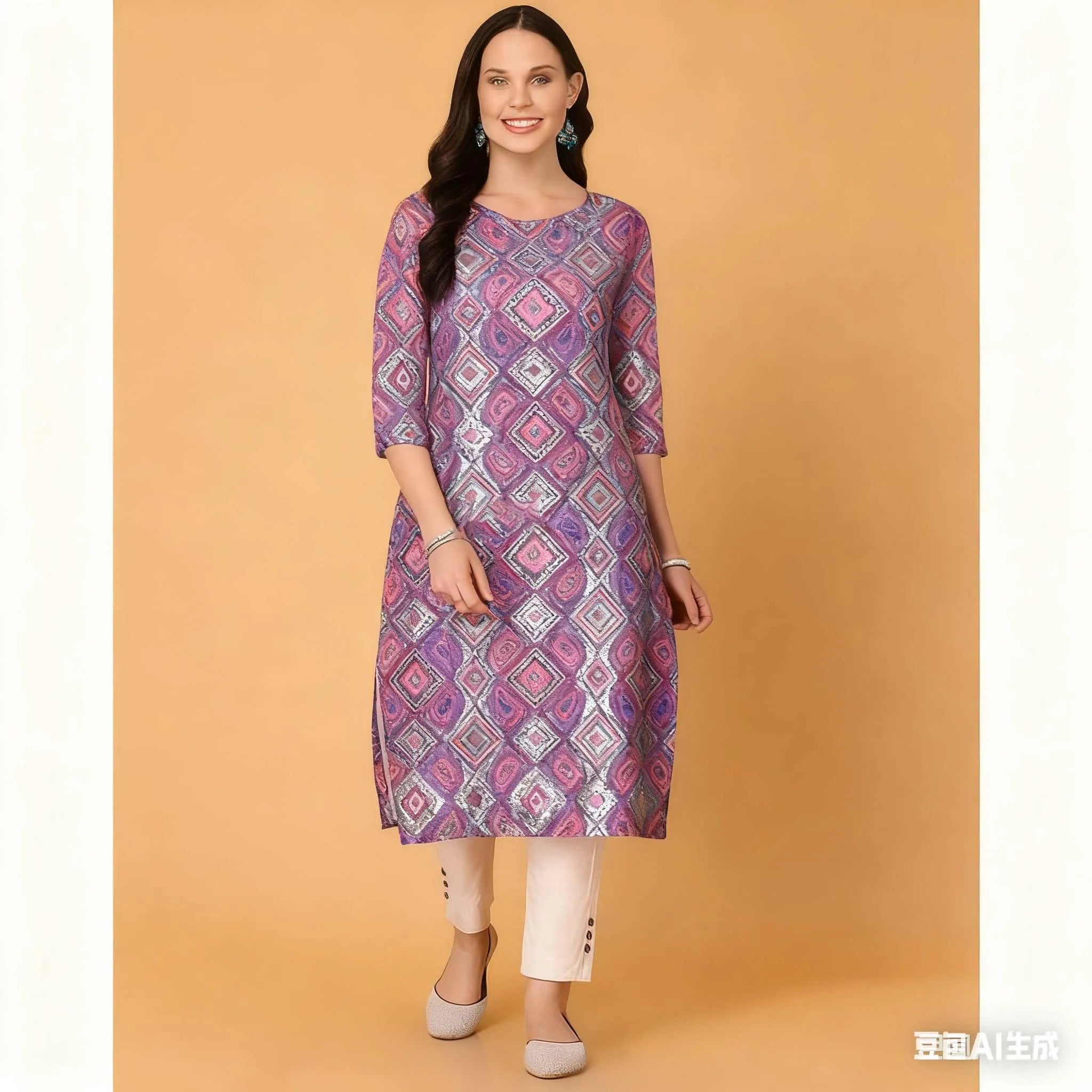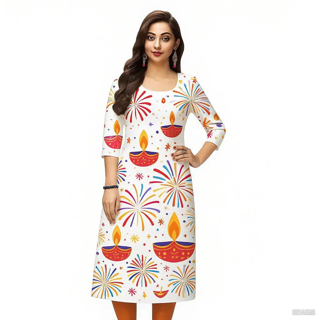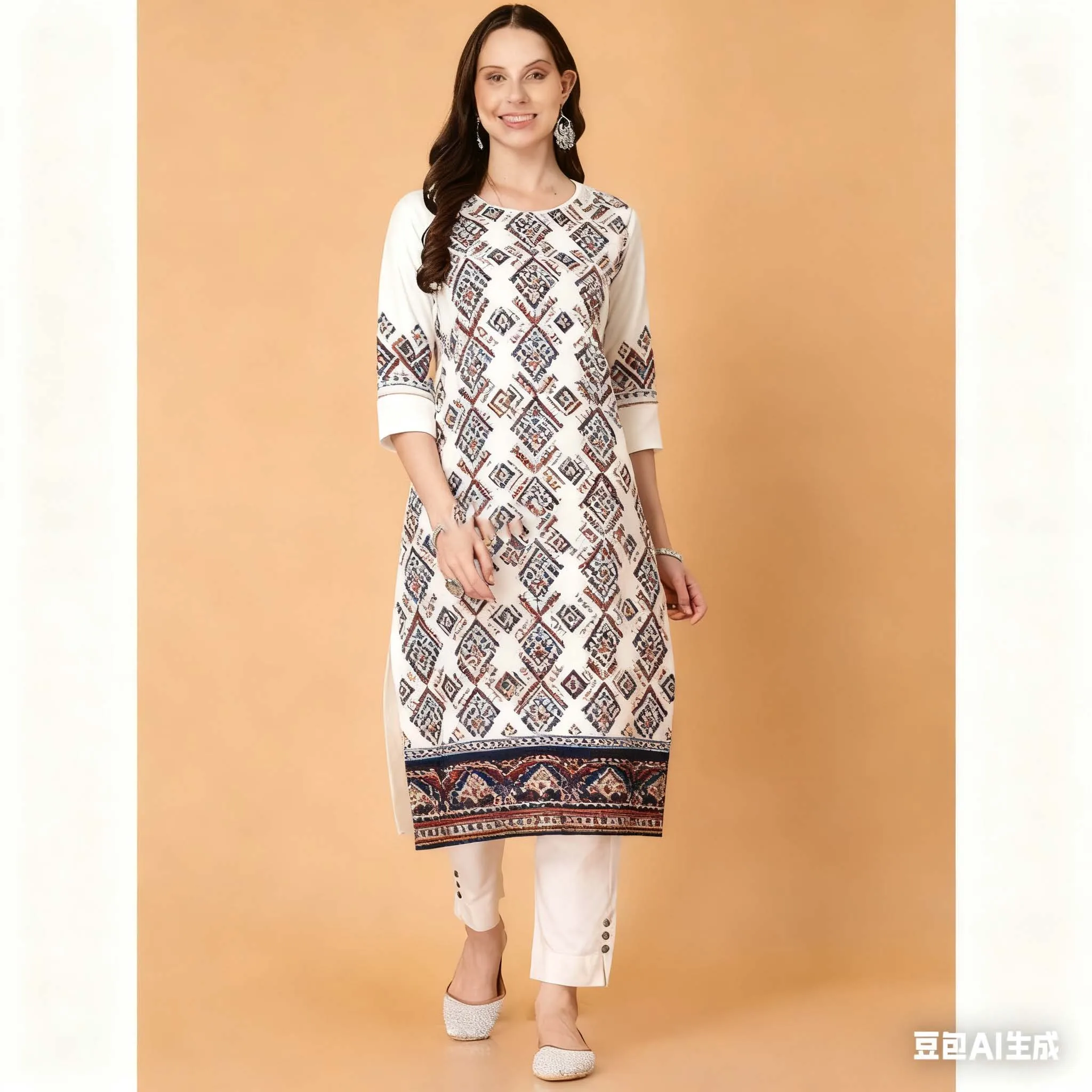 National style Kurt Women's Fashion Comfortable Slit hem Straight Casual Ethnic Flowers Pattern Robe Abito Donna Musulmana