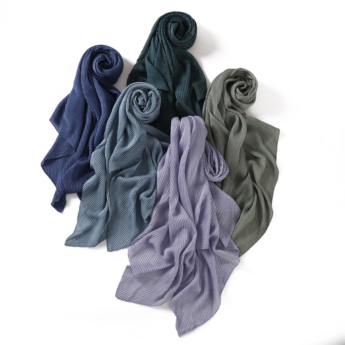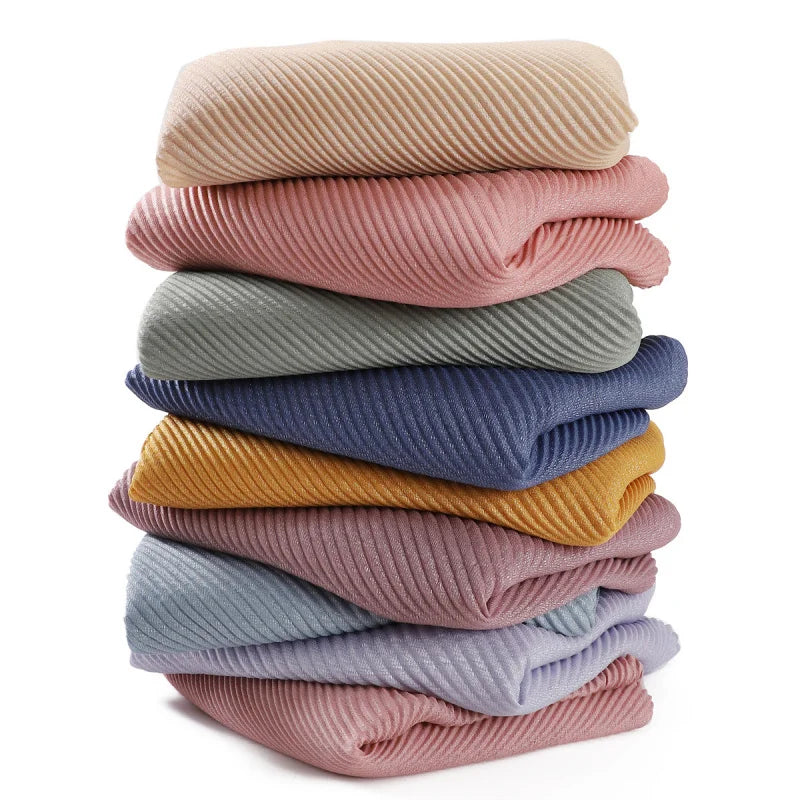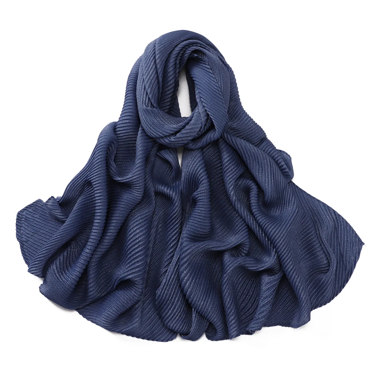 New Breathable Soft Solid Color Silver Silk Crumpled Shiny Pleated Shawl Women's Hair Towel Scarf One Piece Dropshipping