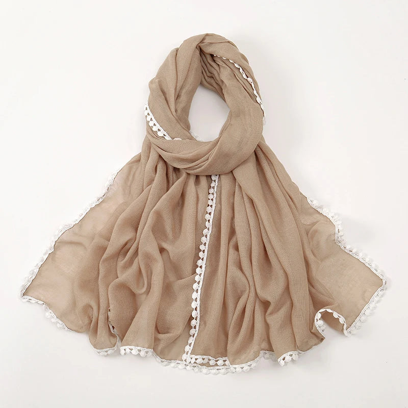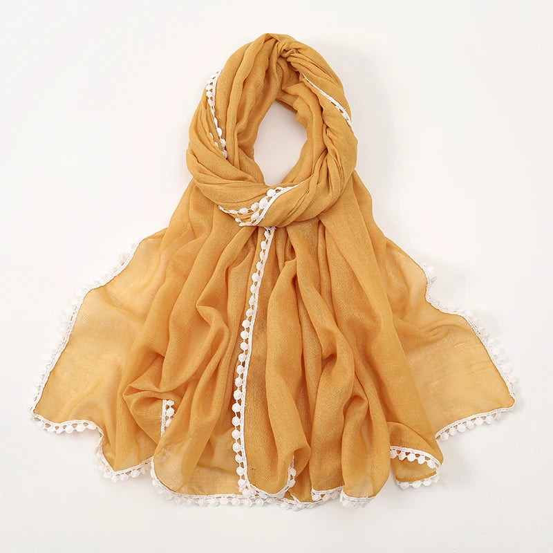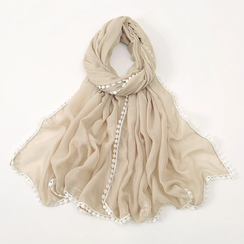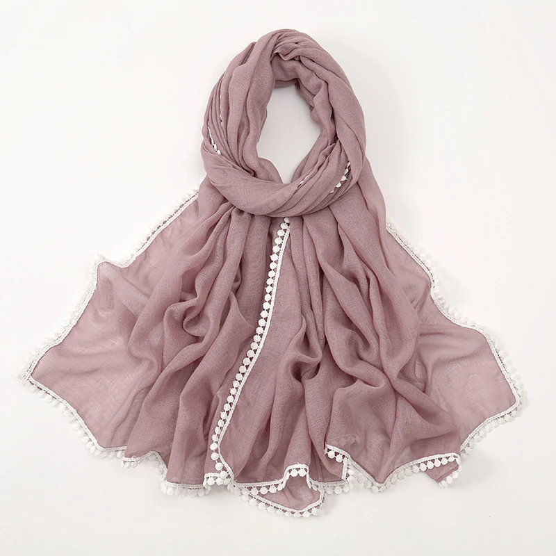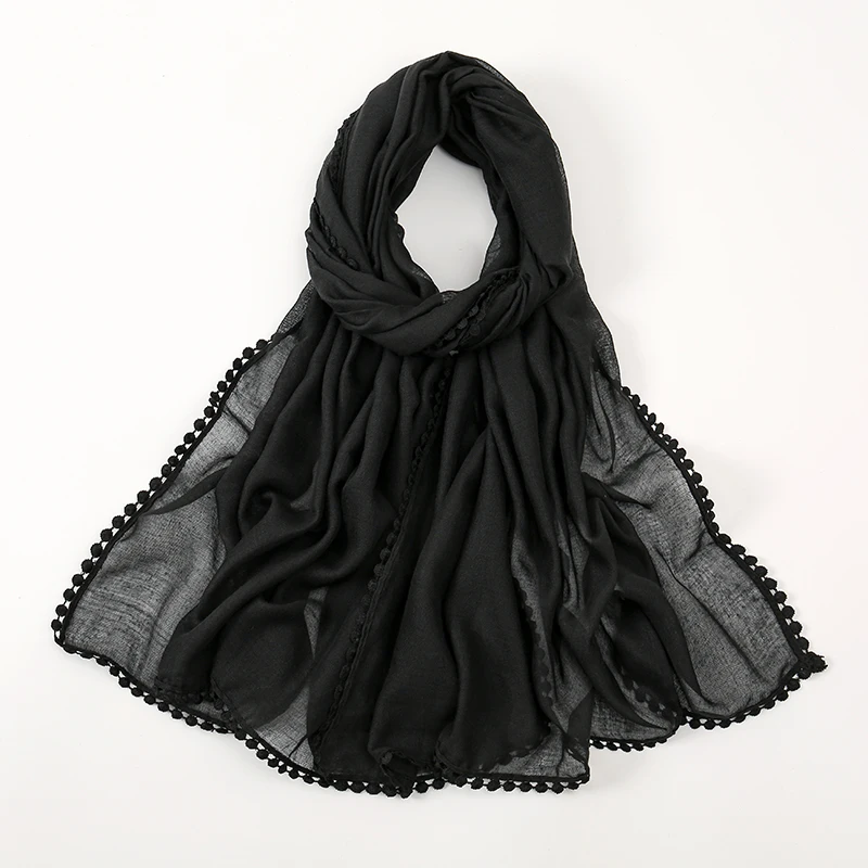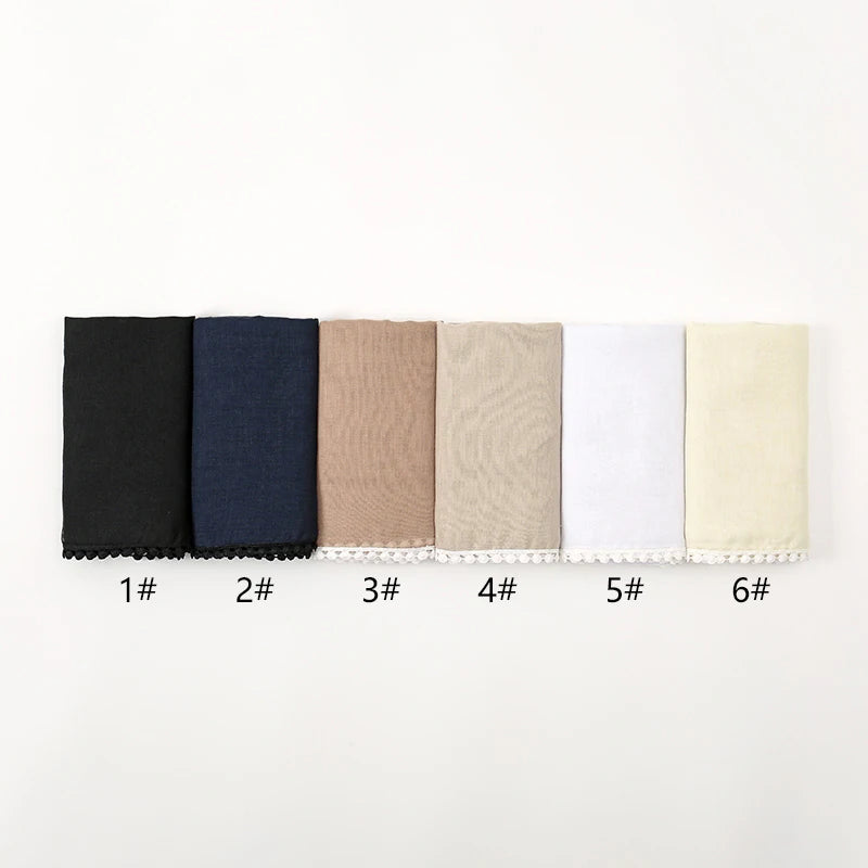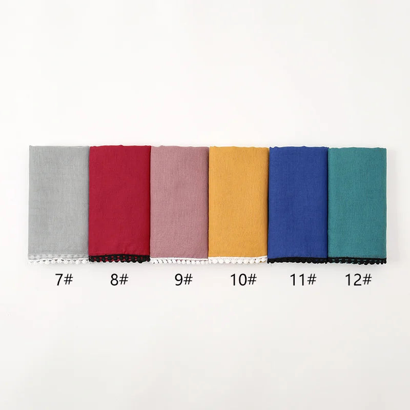 New Cotton Hijab With Lace Muslim Scarf Long Shawls Headscarf Wraps Foulard Echarpe Bufanda Muslim Sjaal Islam Eid Headband