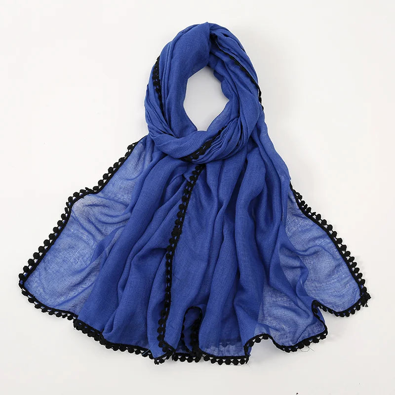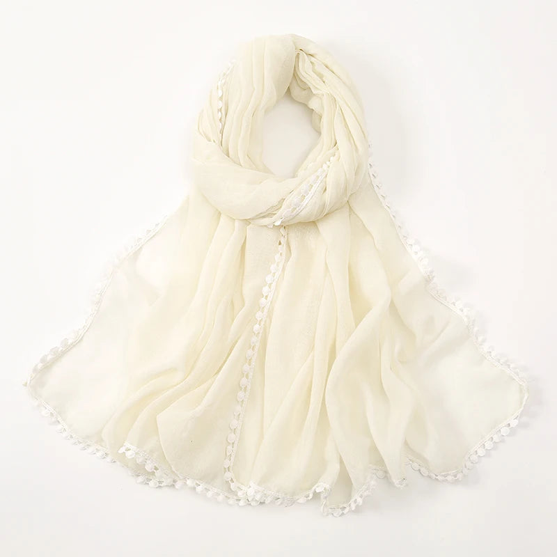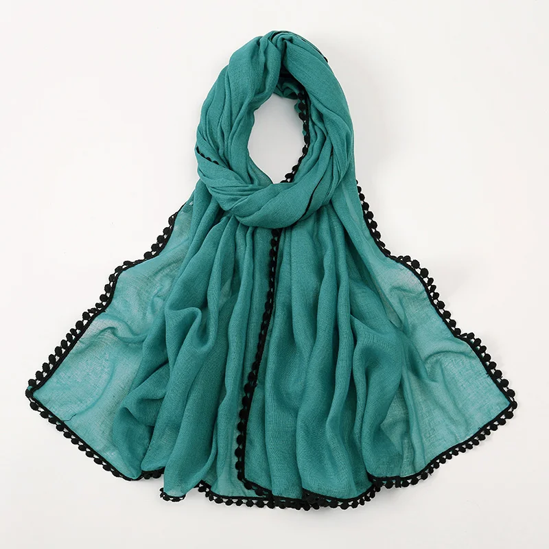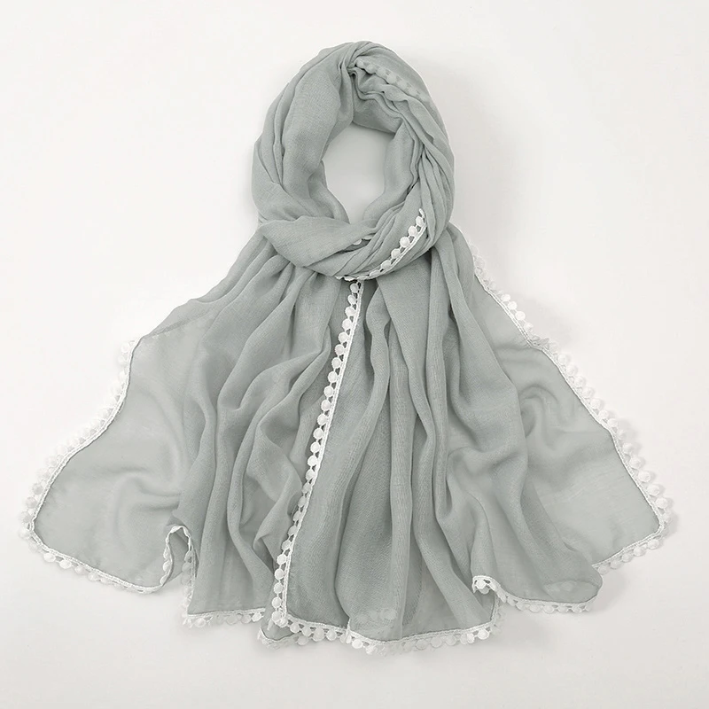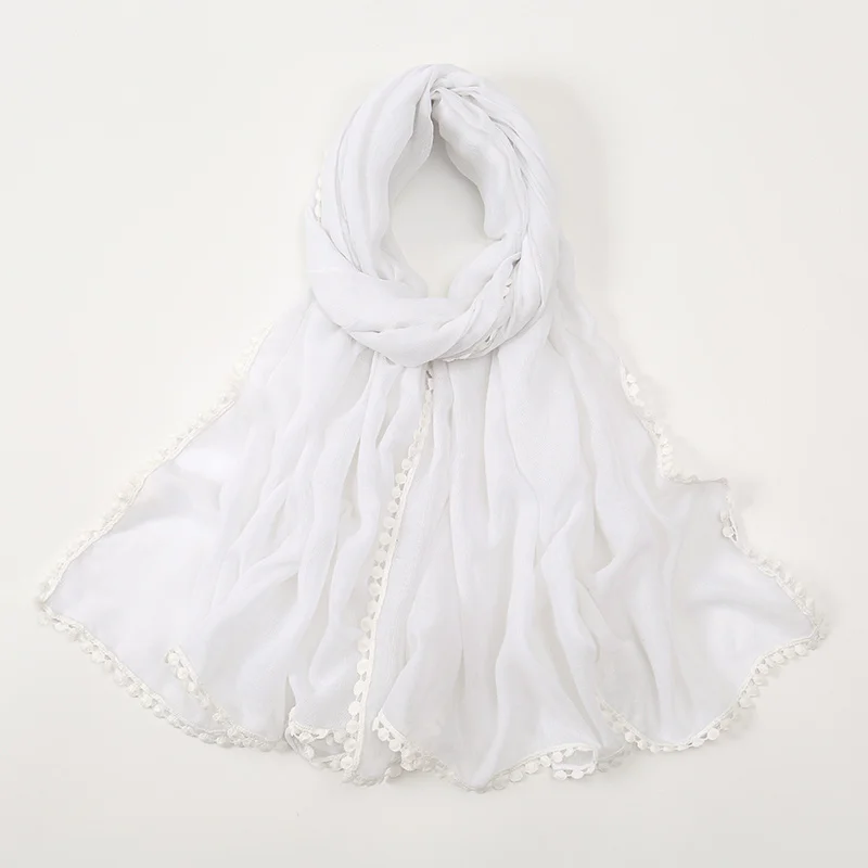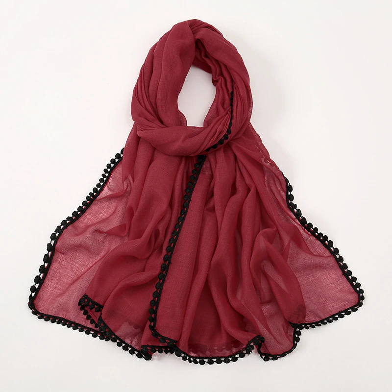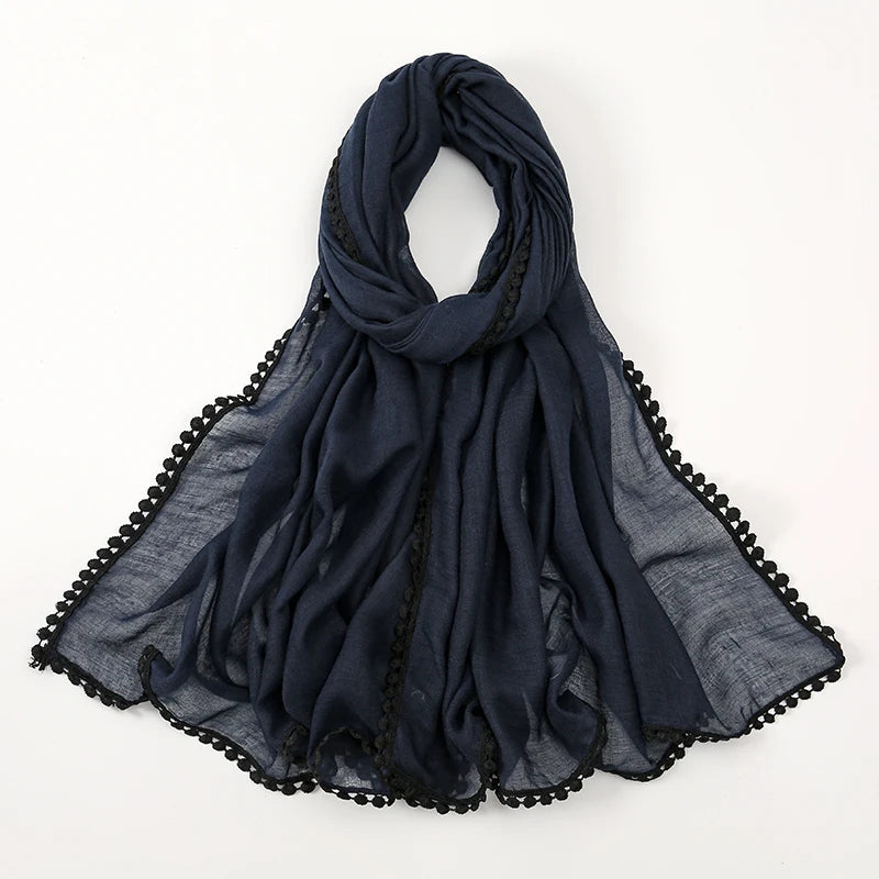 New Cotton Hijab With Lace Muslim Scarf Long Shawls Headscarf Wraps Foulard Echarpe Bufanda Muslim Sjaal Islam Eid Headband