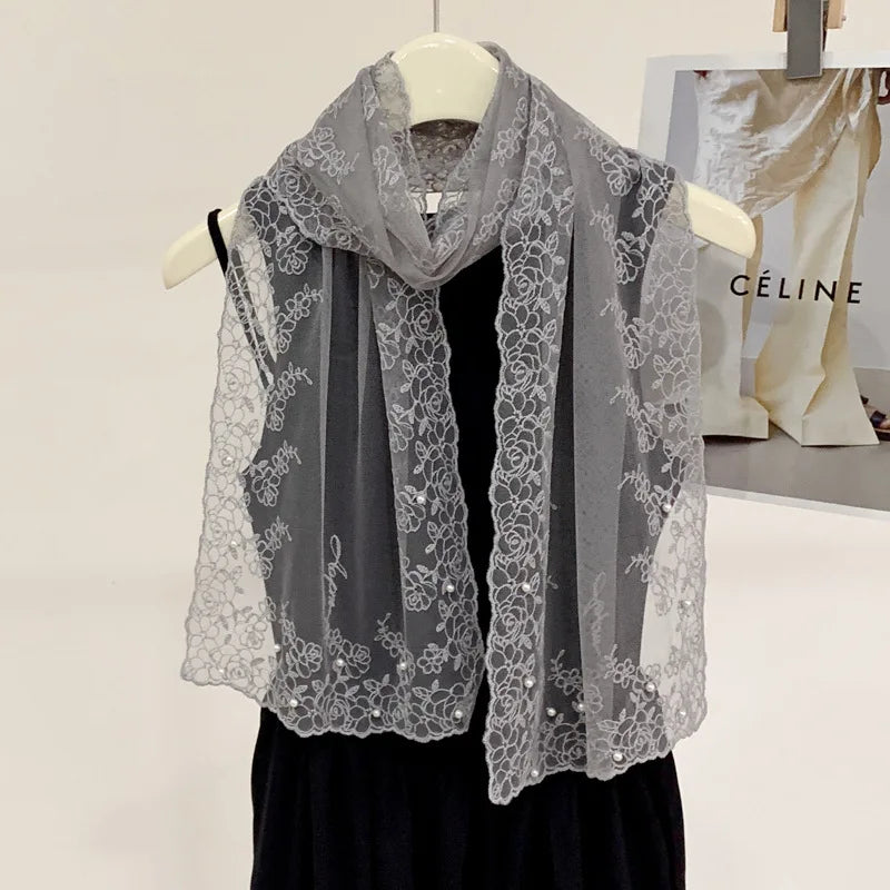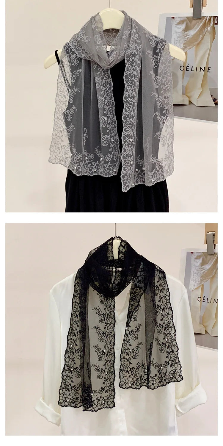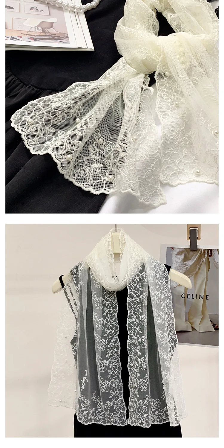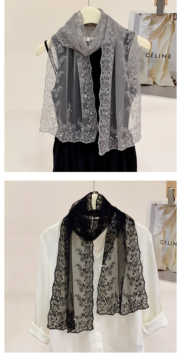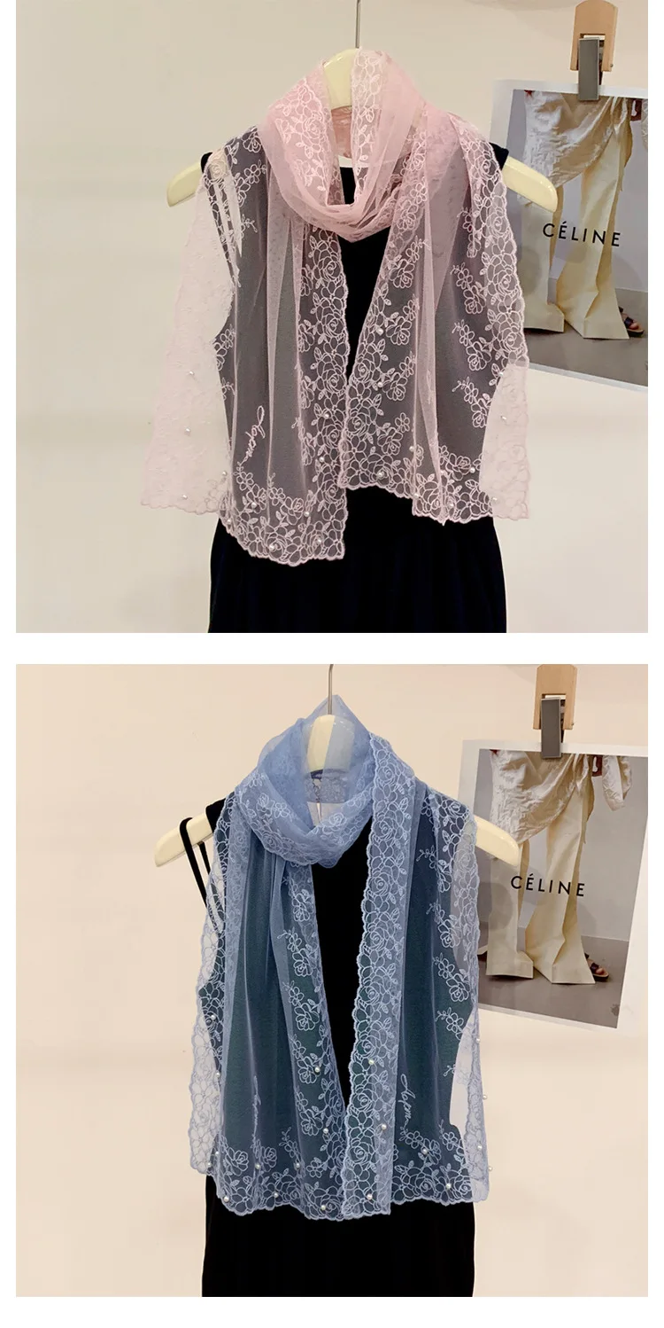 New Lace Beaded Silk Scarf Women's Spring and Autumn Thin Shawl Outer Decorative Scarf Yarn Versatile Tide