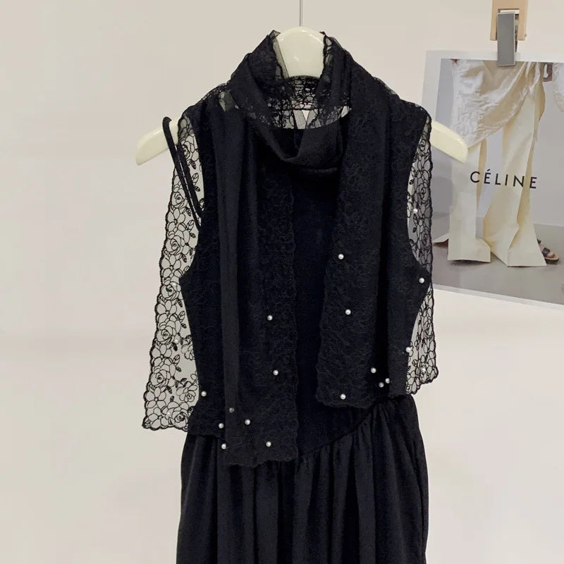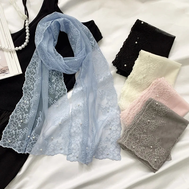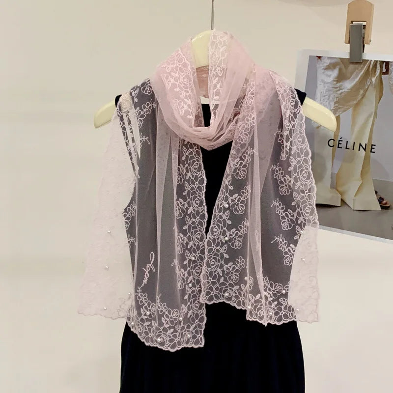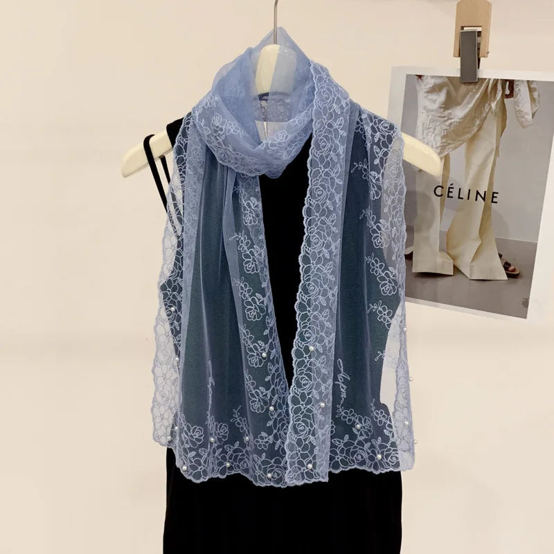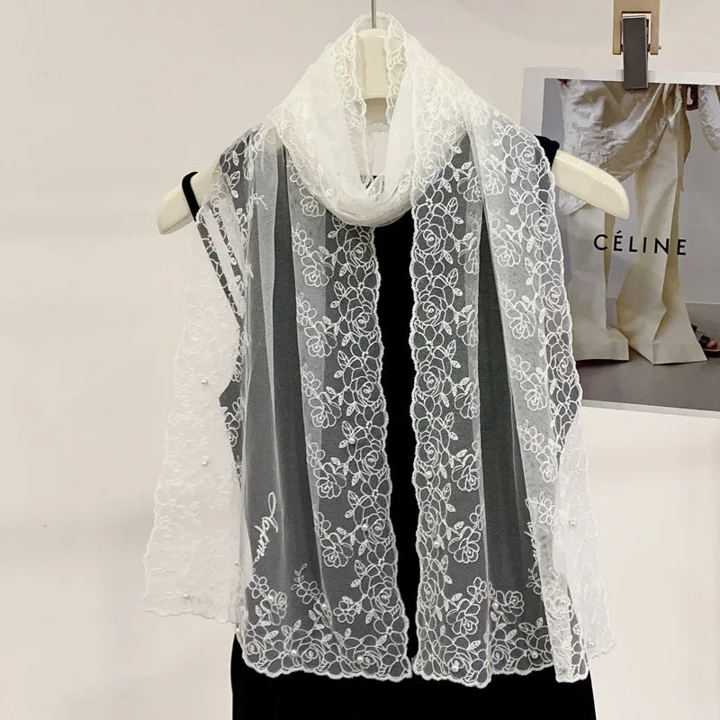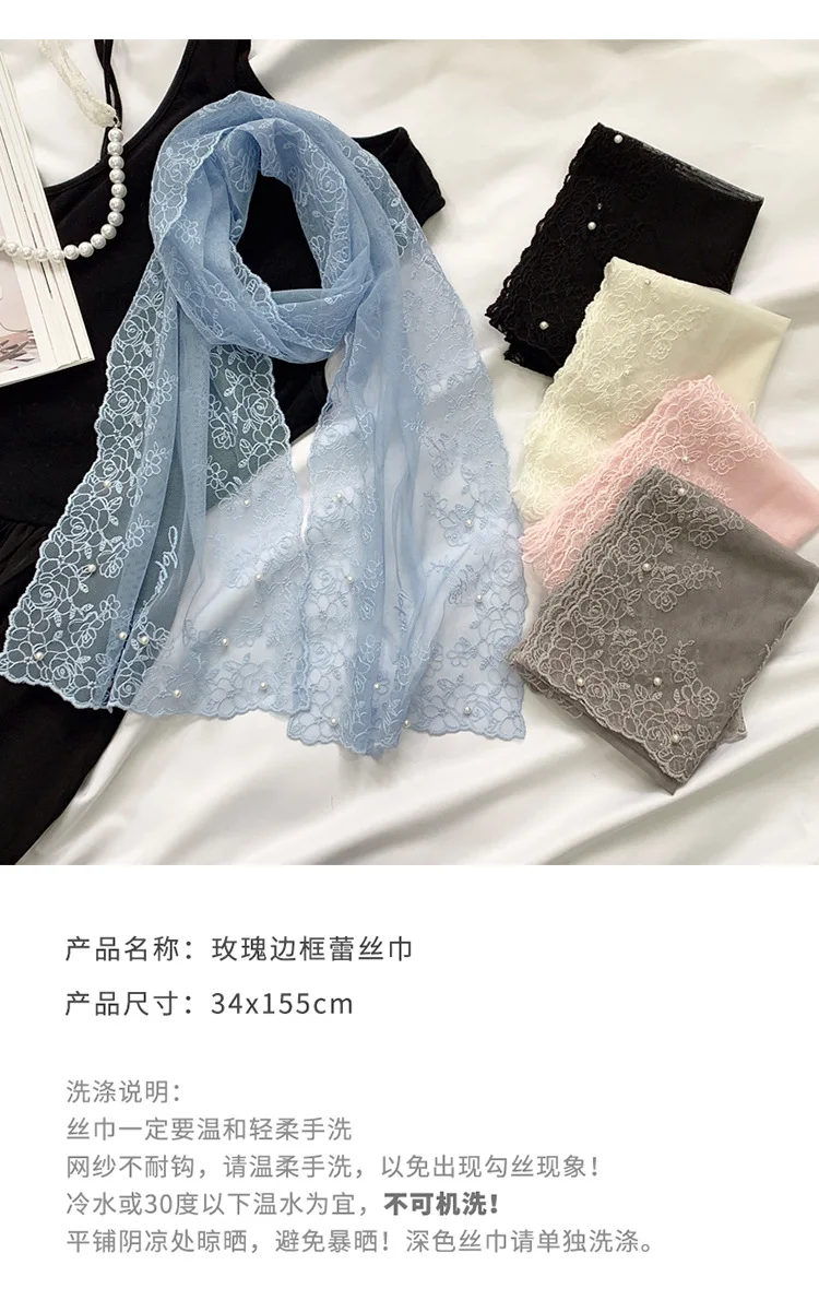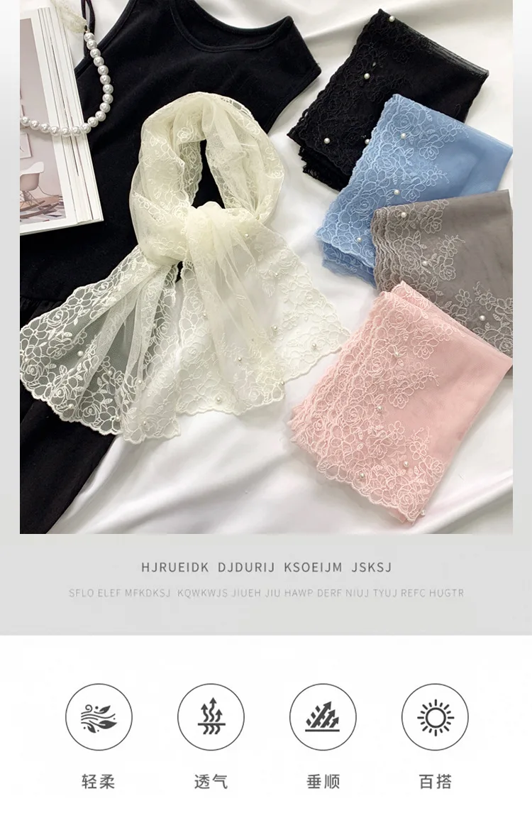 New Lace Beaded Silk Scarf Women's Spring and Autumn Thin Shawl Outer Decorative Scarf Yarn Versatile Tide
