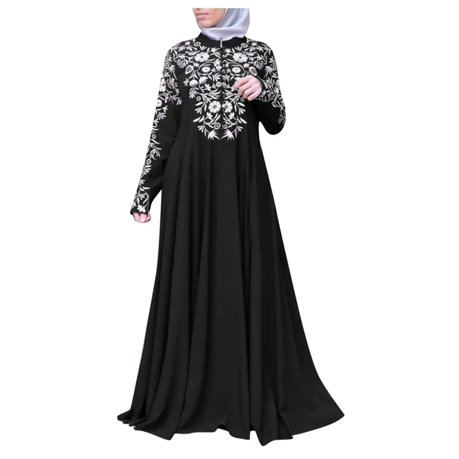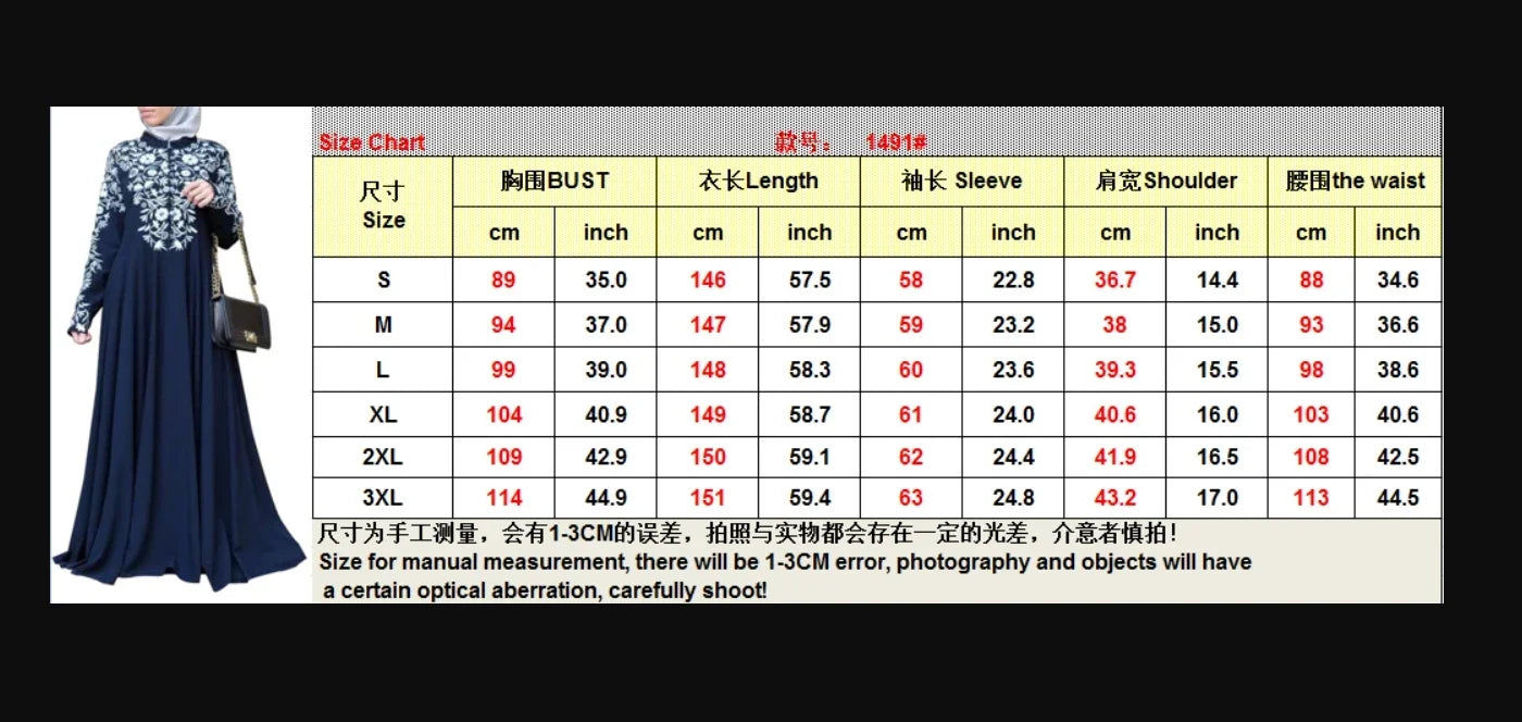 Plus Size Muslim Women Kaftan Dress Abaya Ethnic Style Long Sleeve Islamic Clothing Dubai Saudi Black Robe Turkish Modesty S-3XL