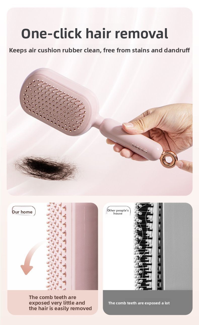 Overview Air cushion design: Provides gentle scalp massage and reduces hair breakage during combing. One-button hair removal: Easily clean trapped... Read more