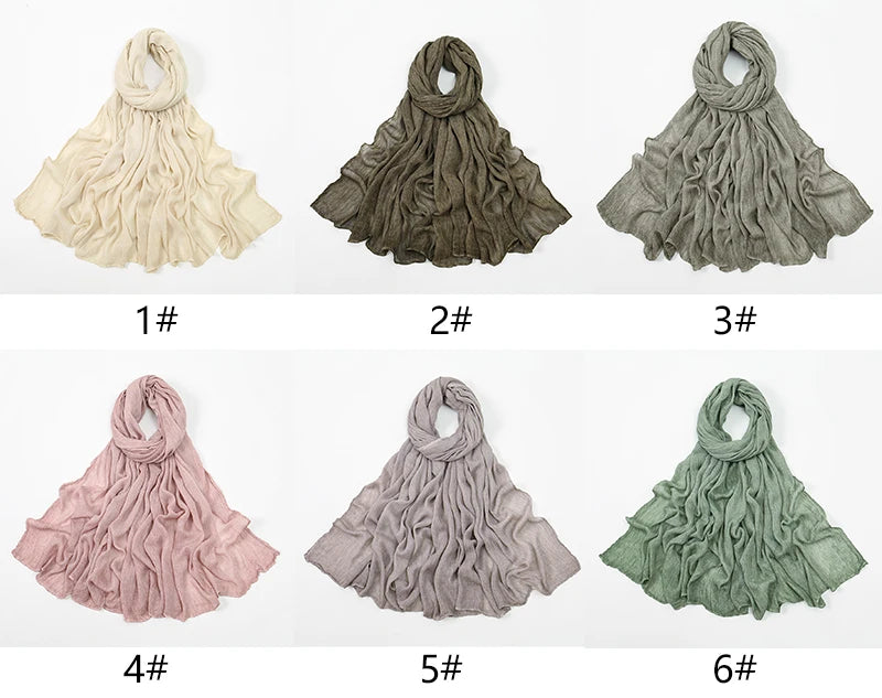 Premium Rayon Cotton Wrinkle Hijab Scarf For Woman Muslim Hijabs Fashion Soft Shawl Islam Turban Ramadan Soild Headband 180*80cm