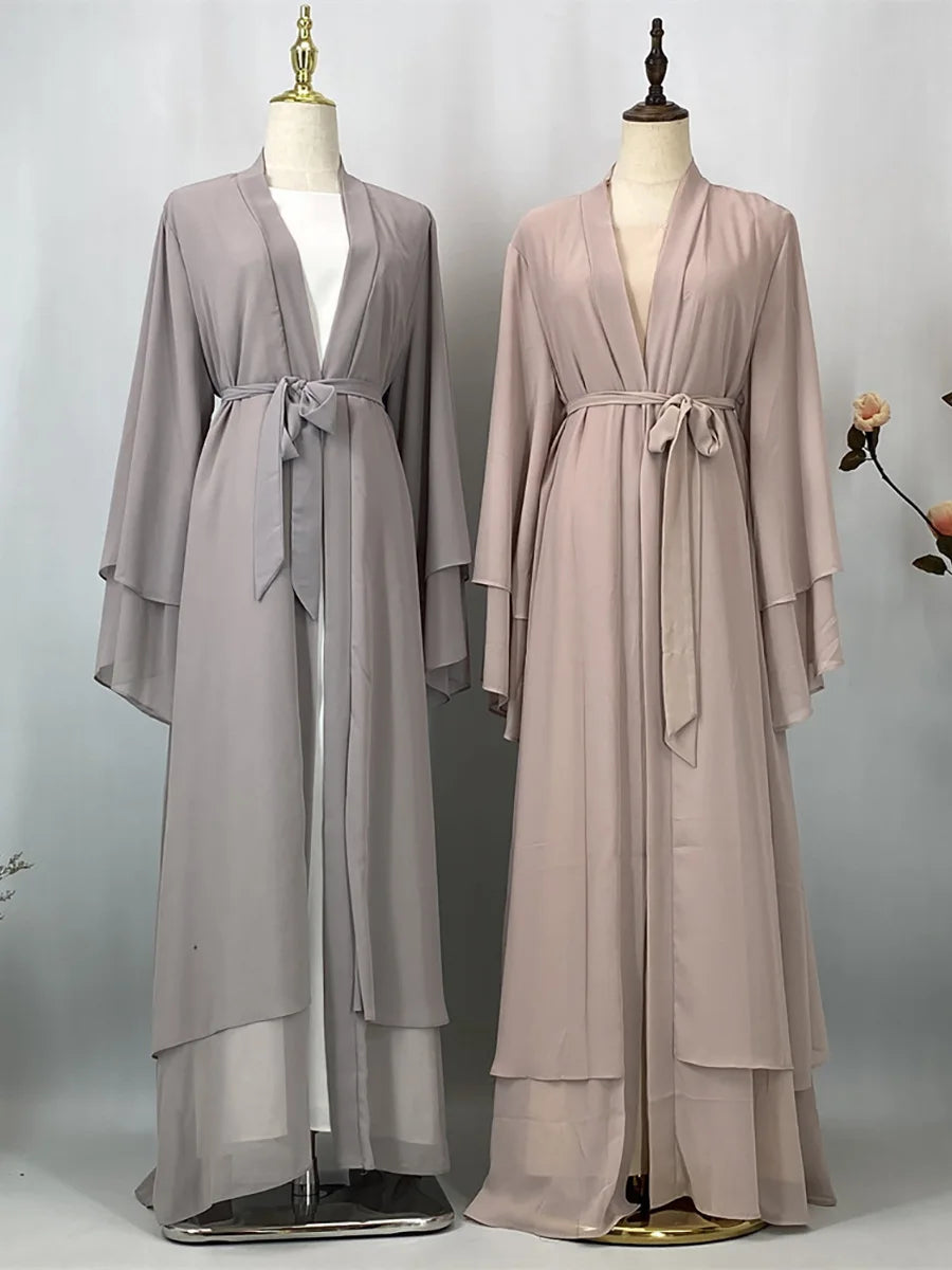 Ramadan Kebaya Chiffon Open Abaya For Women Muslim Dress Kaftan Islam Clothing Caftan Marocain Femme Modest Robe Dubai Kimono