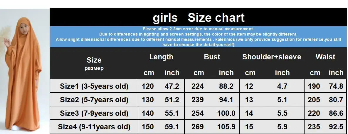 Ramadan Muslim Dress Girls Kids Prayer Garment Hijab Dress Child Hooded Abaya Full Cover Niqab Islam Dubai Eid Robe 2023 jilbab