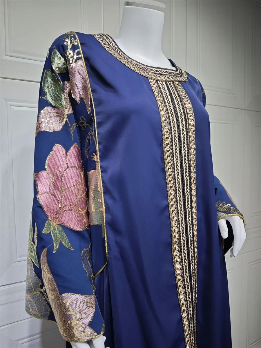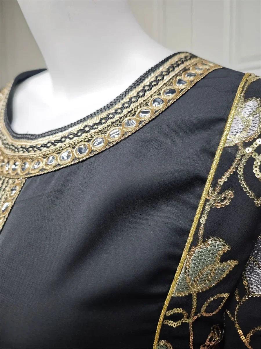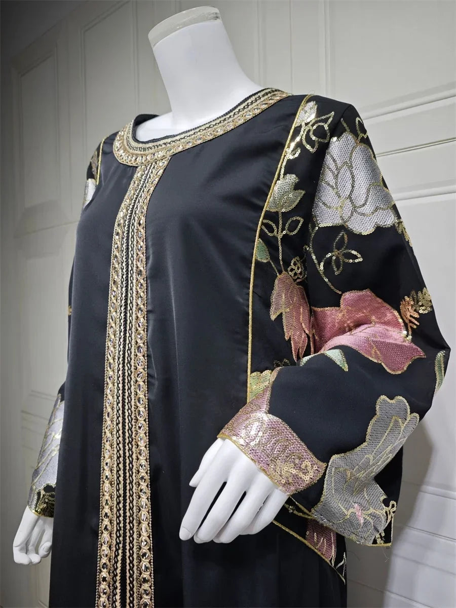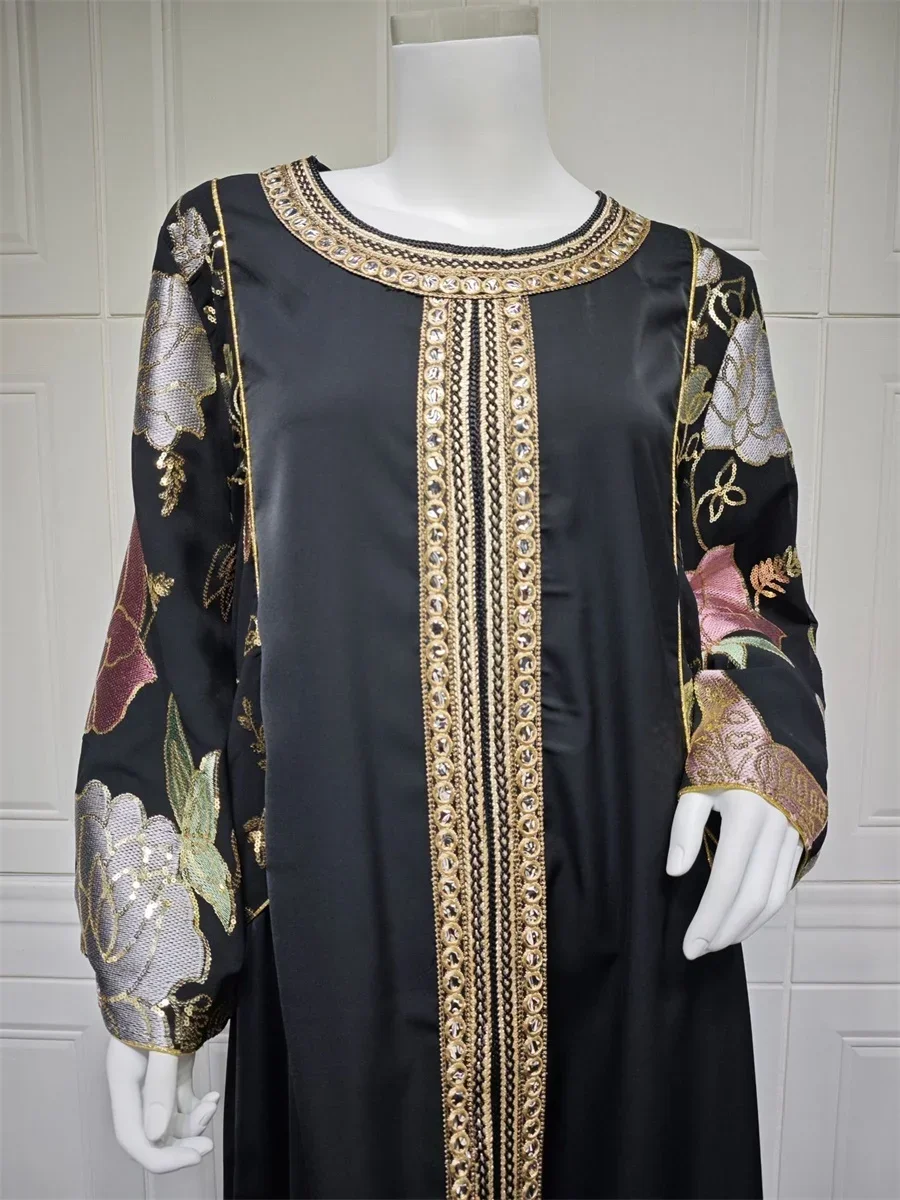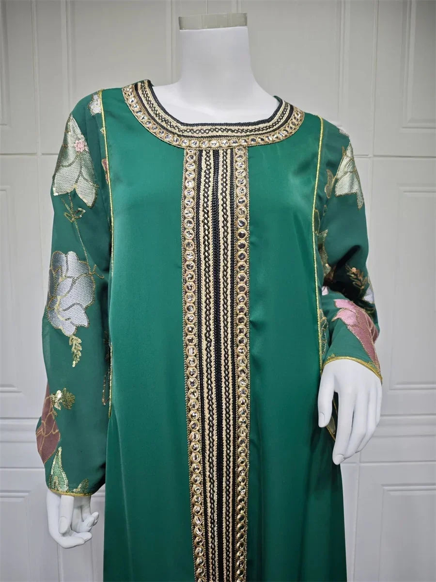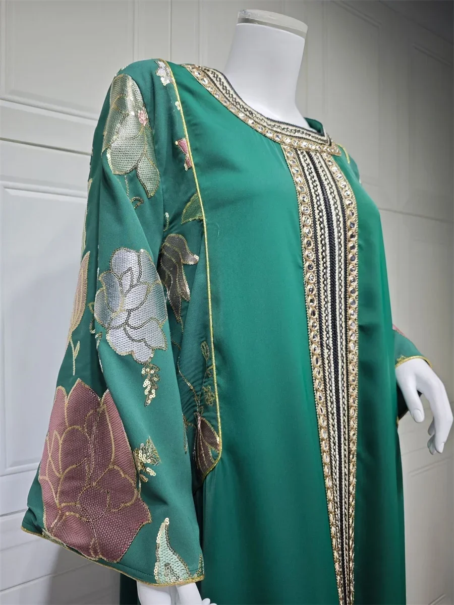 Ramadan Muslim Women's Gold Stamping Petal Sleeve Abaya O-Neck Stripe Dubai Dresses For Women Gala