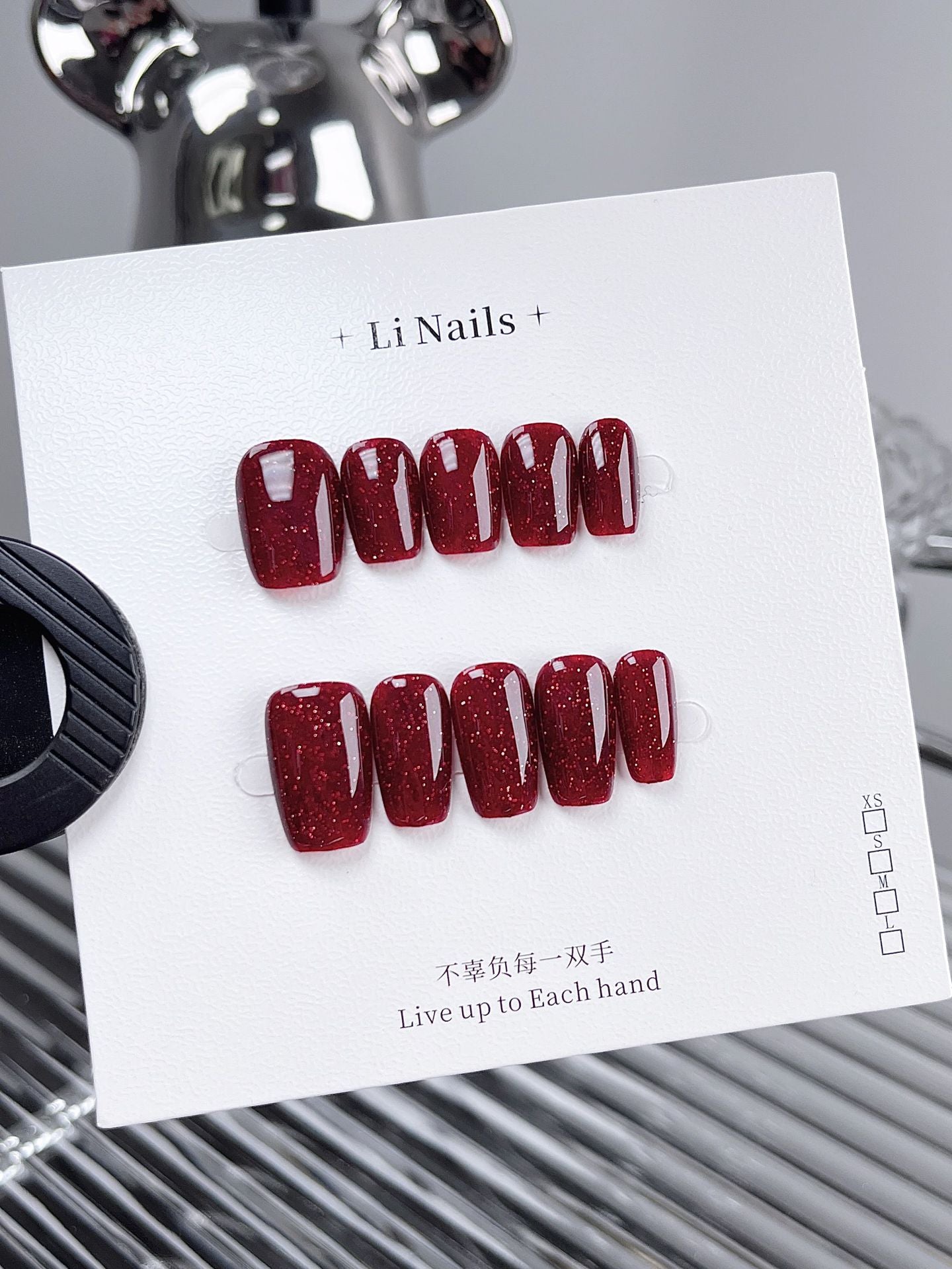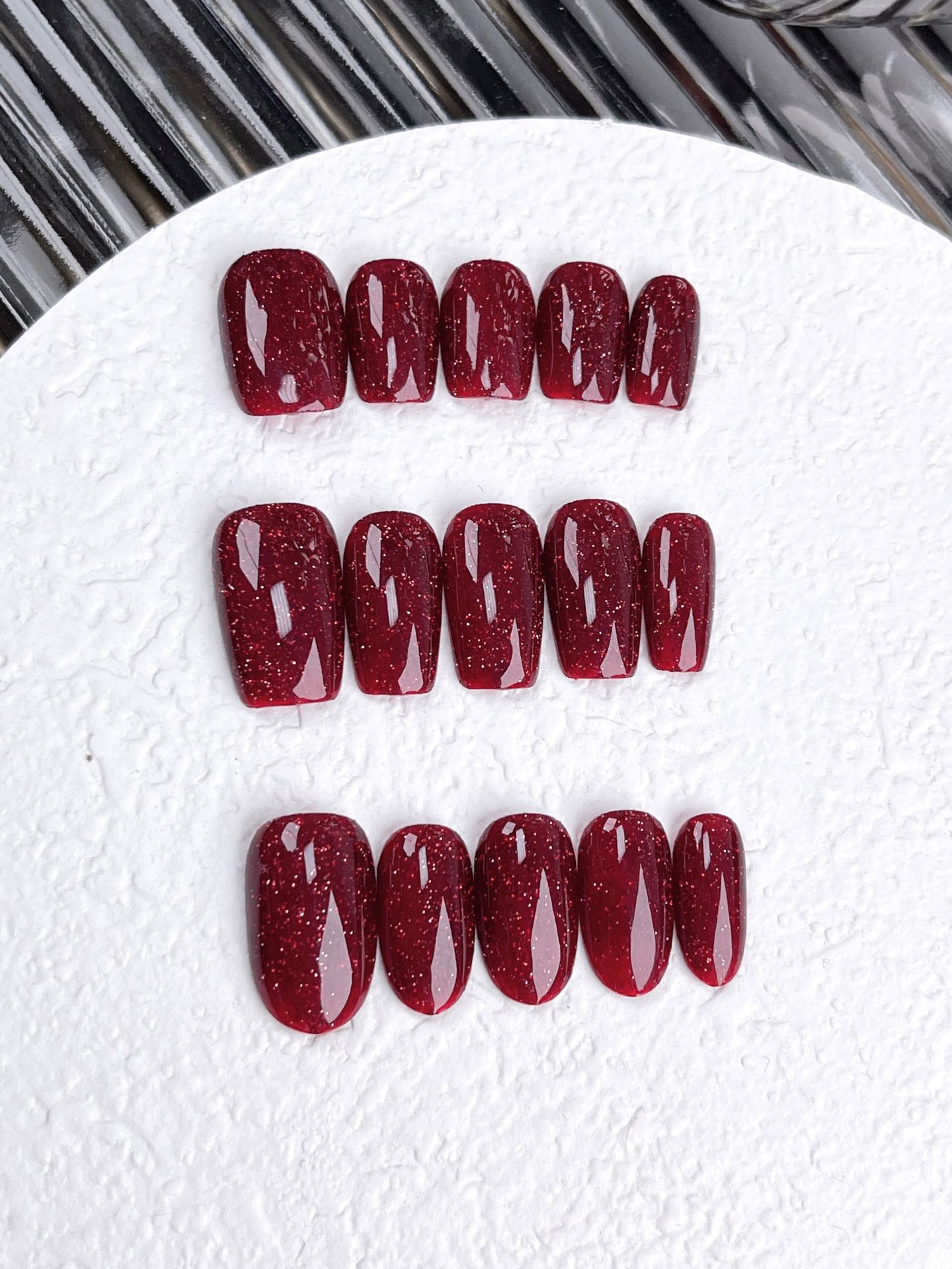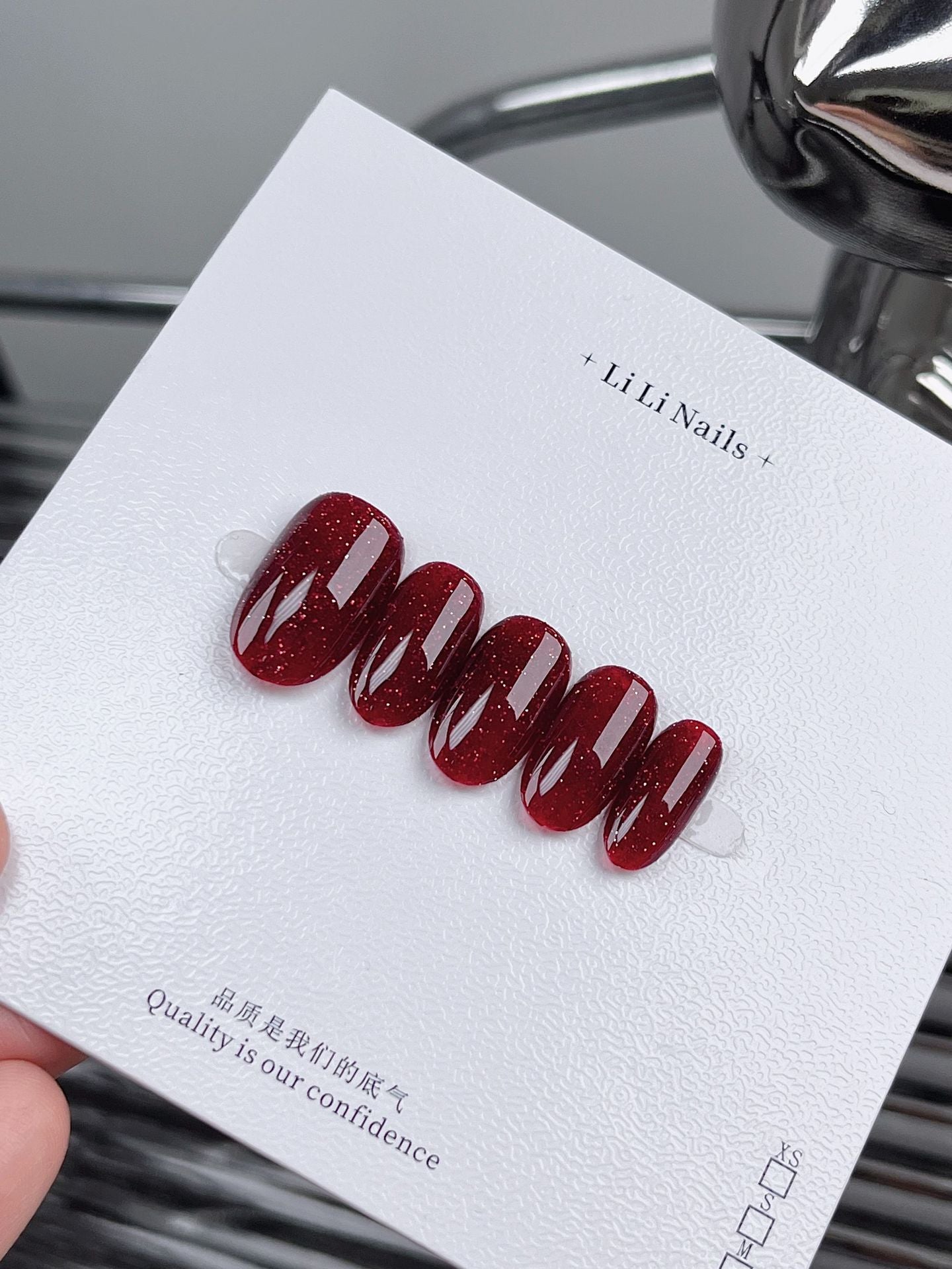 Reusable Handmade Nail Art Patches with Red Diamonds