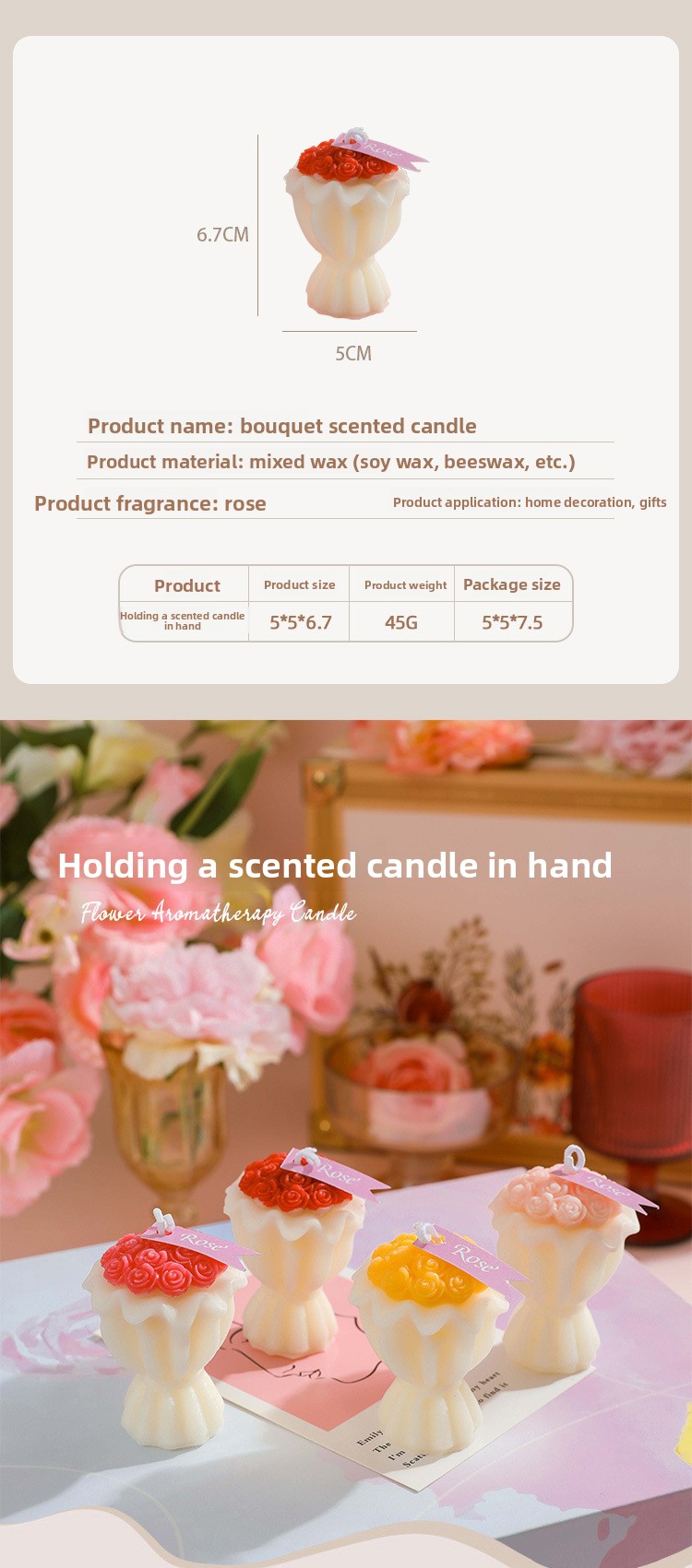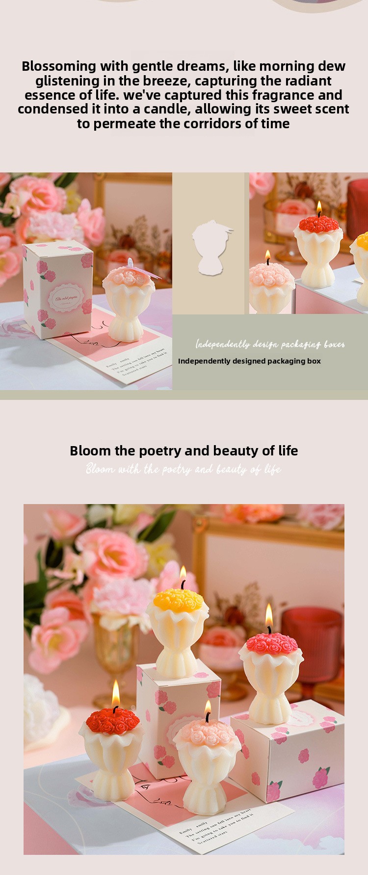 Overview Handcrafted Design: Meticulously crafted bouquet-shaped decorative candles with artistic appeal. Fragrance Feature: Infused scented wax providing pleasant aroma during... Read more