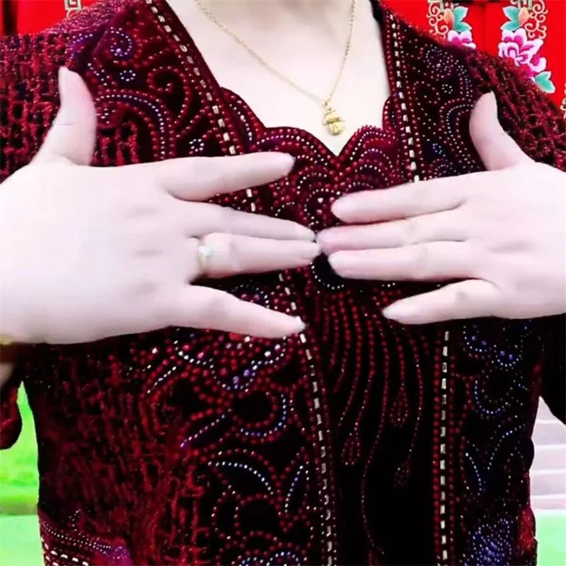 SPECIFICATIONSAge: SeniorBrand Name: IOQRCJVCN: ZhejiangClothing Length: regularCollar: O-NeckCraft of Weaving: OtherDecoration: DiamondsElasticity: Medium StrecthFabric Type: BroadclothFit: True to SizeFit Type:... Read more