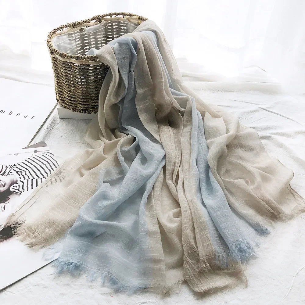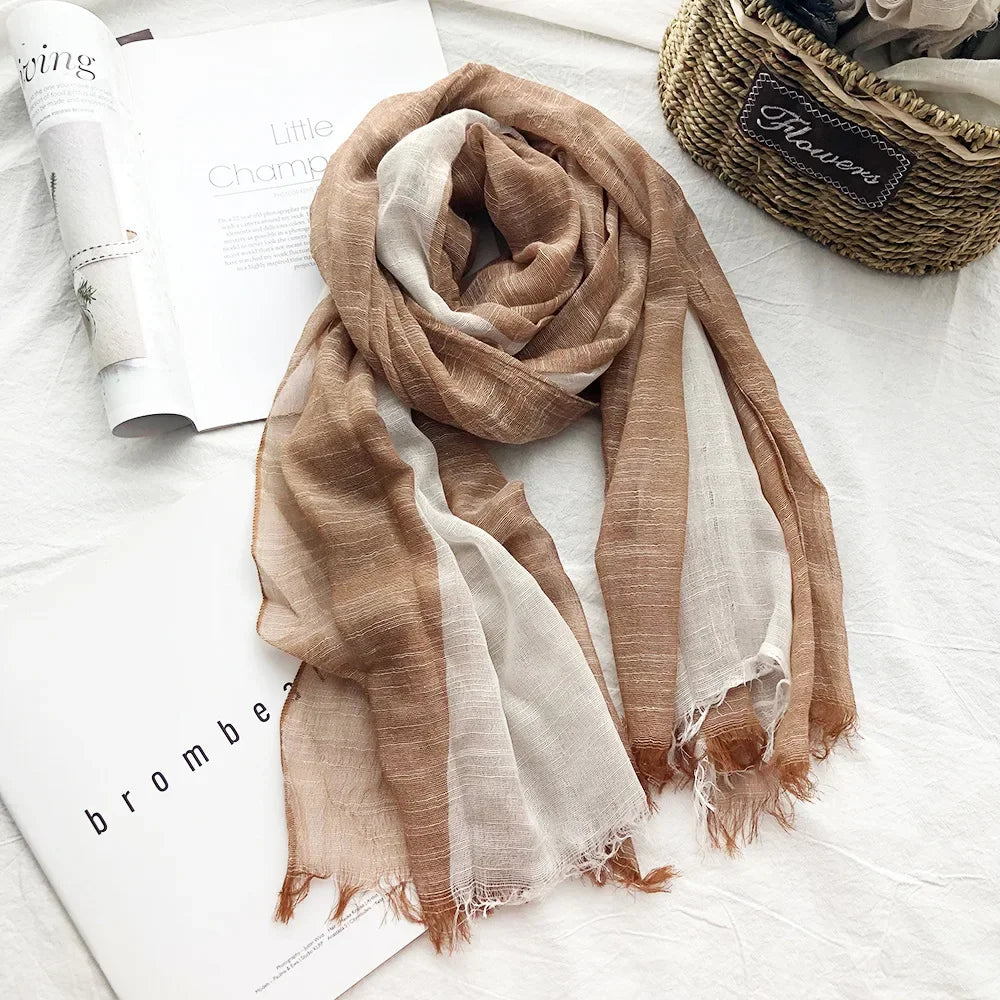 Thin Scarf Shawl New Cotton and Linen Women's Solid Color Sunscreen Muslim Headband Israel Saudi Arabia Japanese South Korea