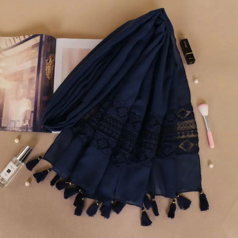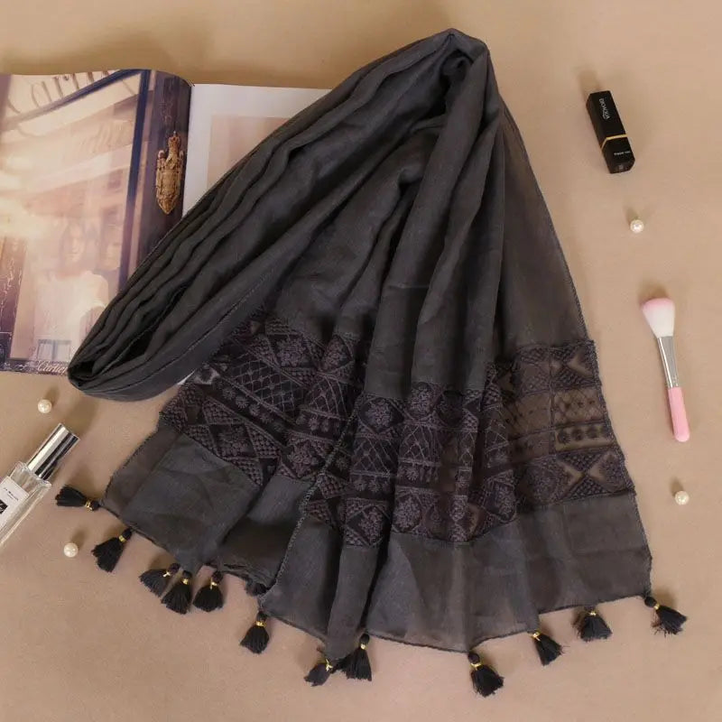 Women Fashion Plain Lace Floral Patchwork Viscose Shawl Scarf Luxury Brand Laser Cut Long Size Bufandas Muslim Hijab Wrap Snood