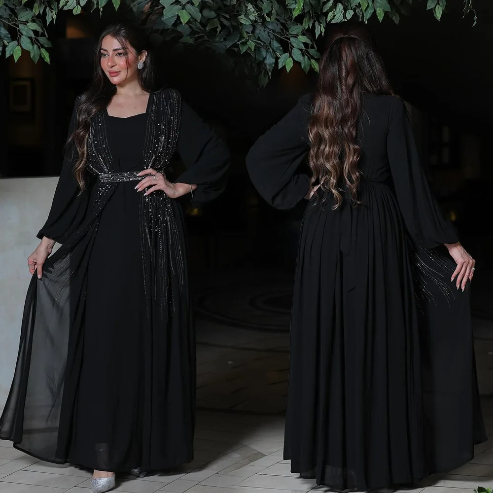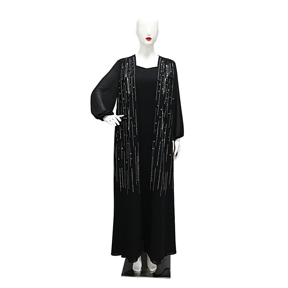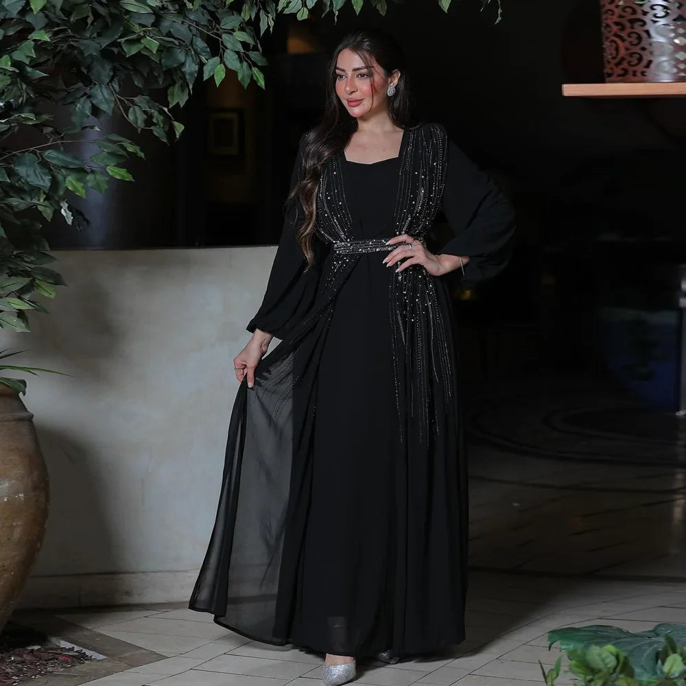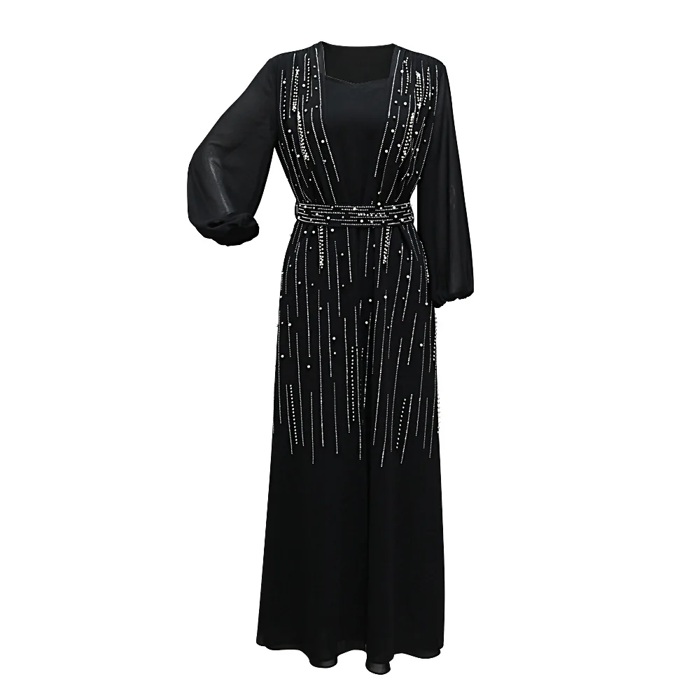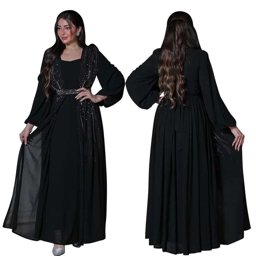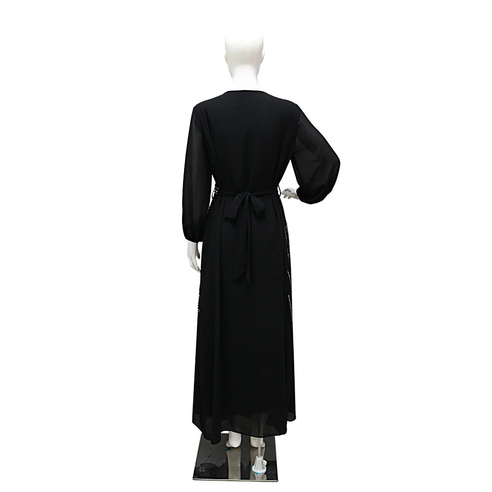 Women Long Loose Maxi Dress Muslim Dubai Women's Clothing Hot Diamond Belt Robe Dinner Dress
