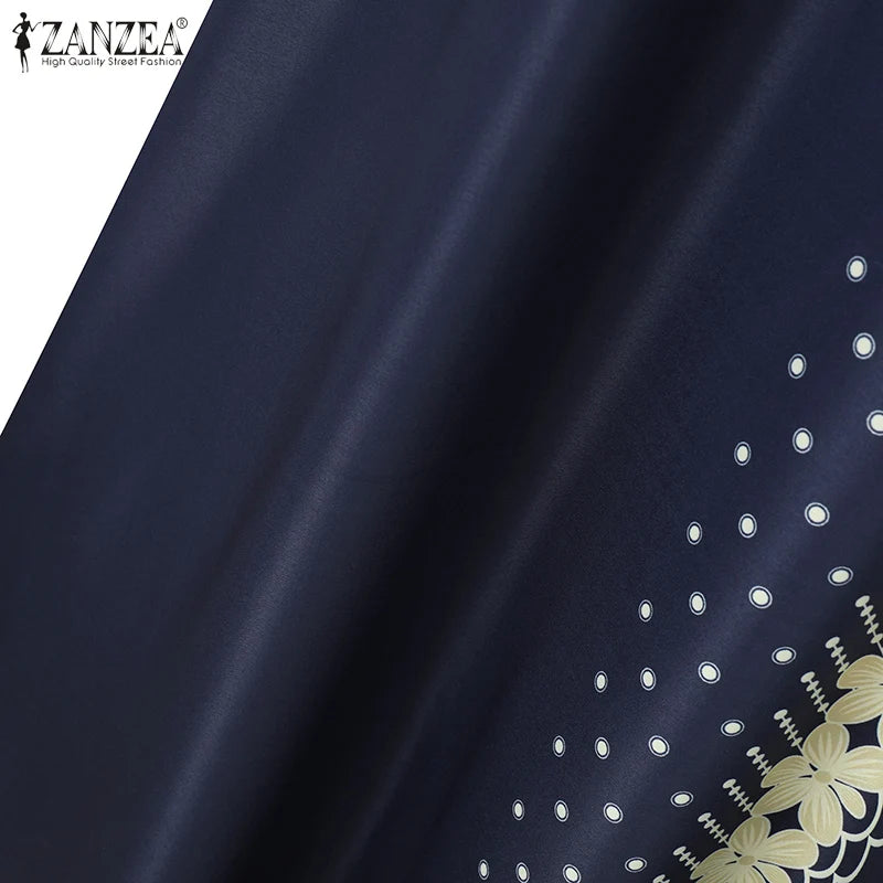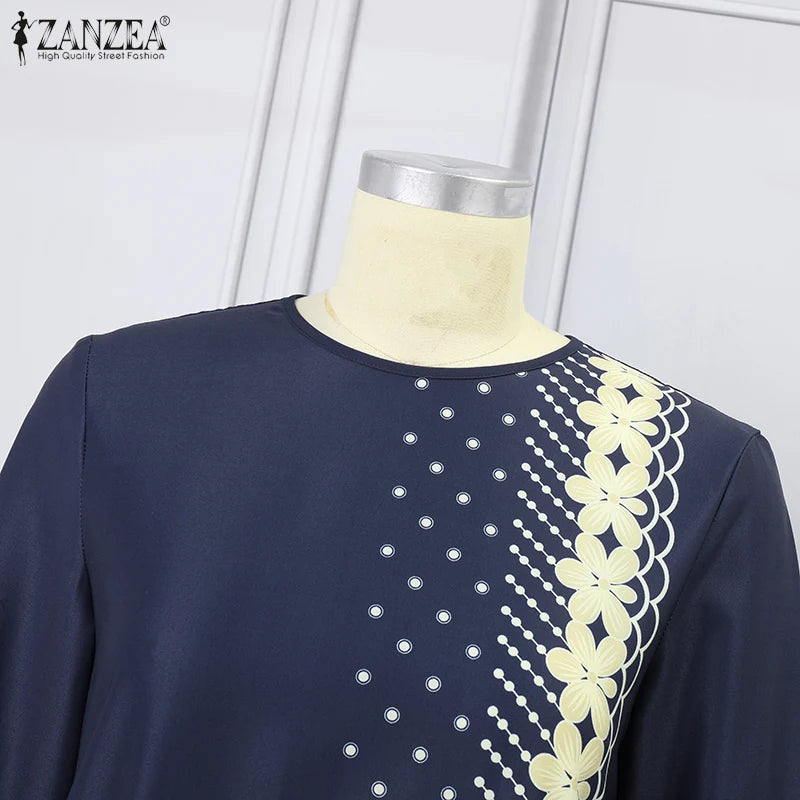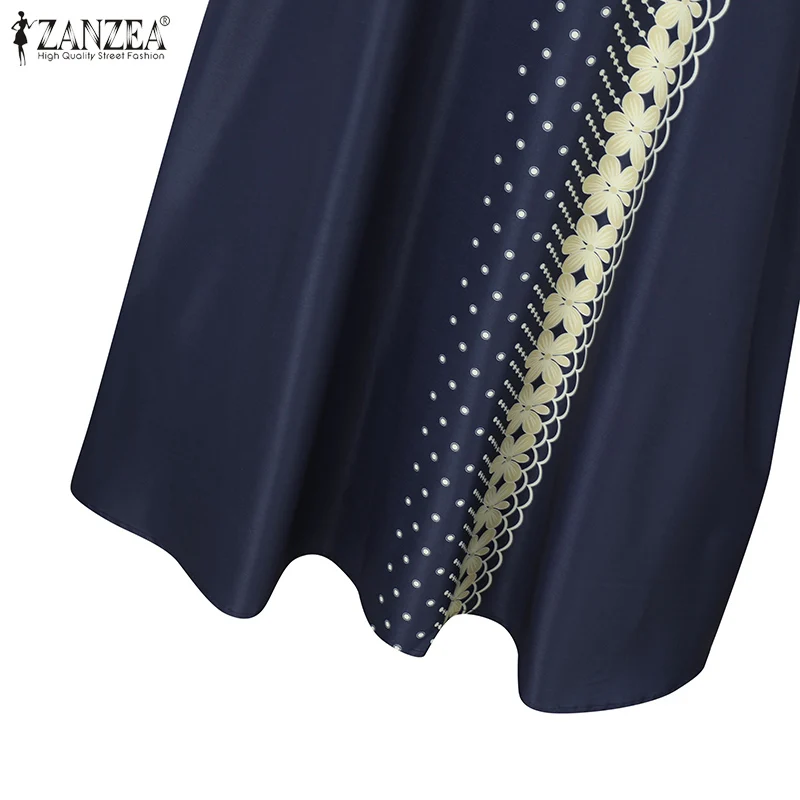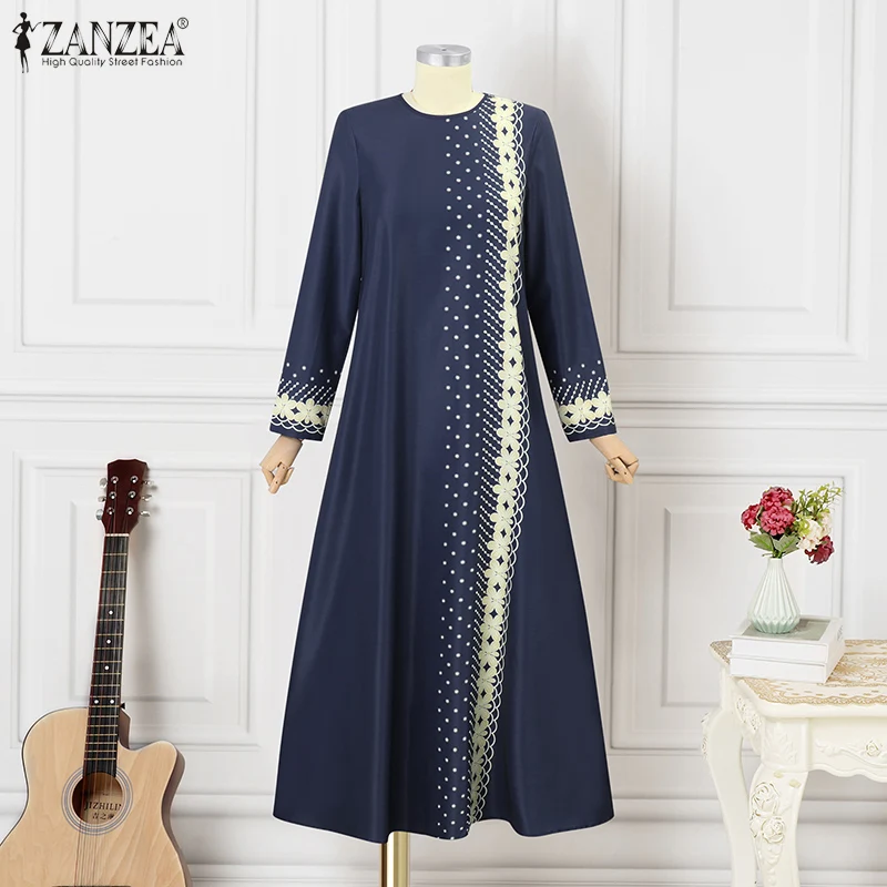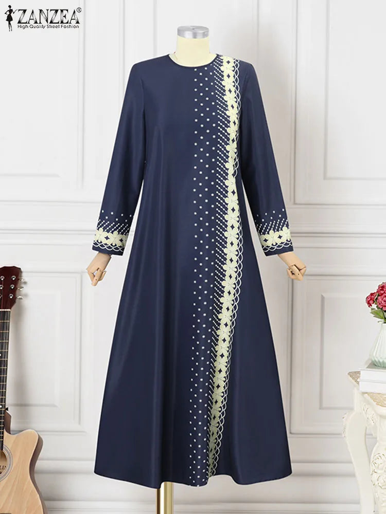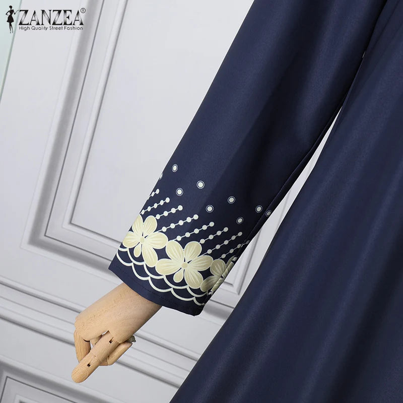 ZANZEA IsIamic Long Vestidos Robe Muslim Hijab Dresses Long Sleeve Maxi Sundress Abayas For Women Elegant Floral Printed Dress