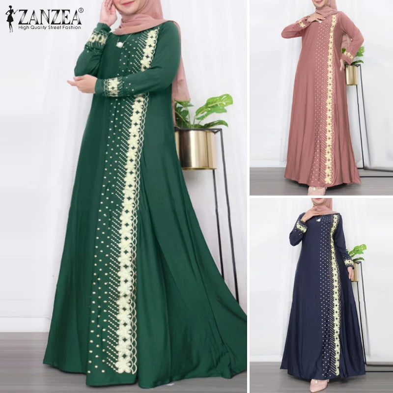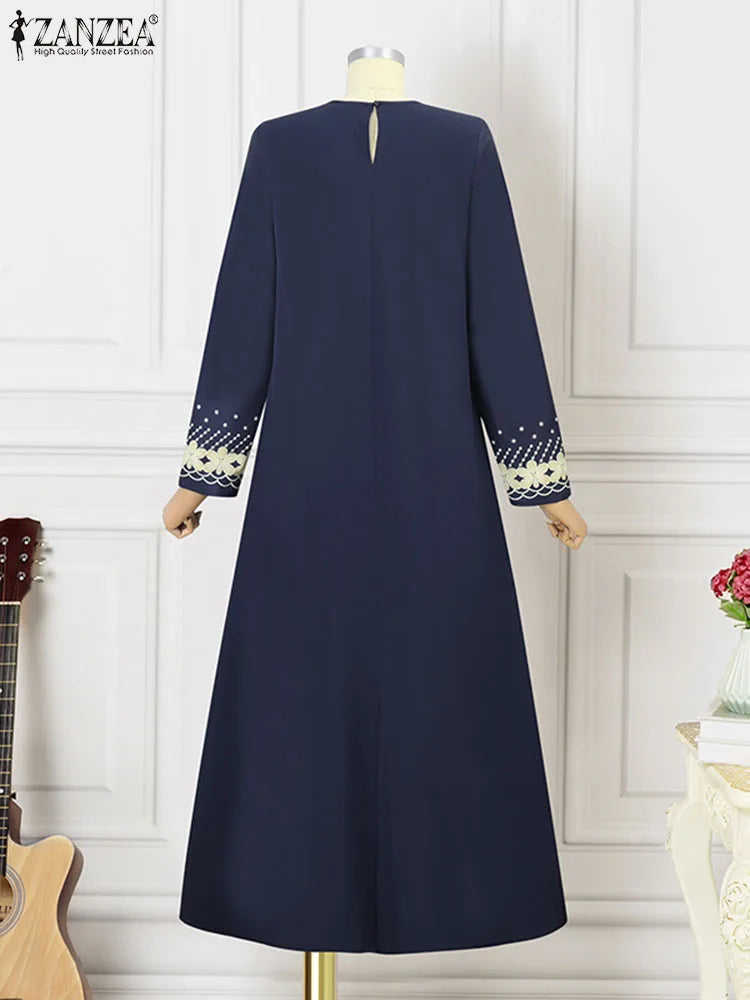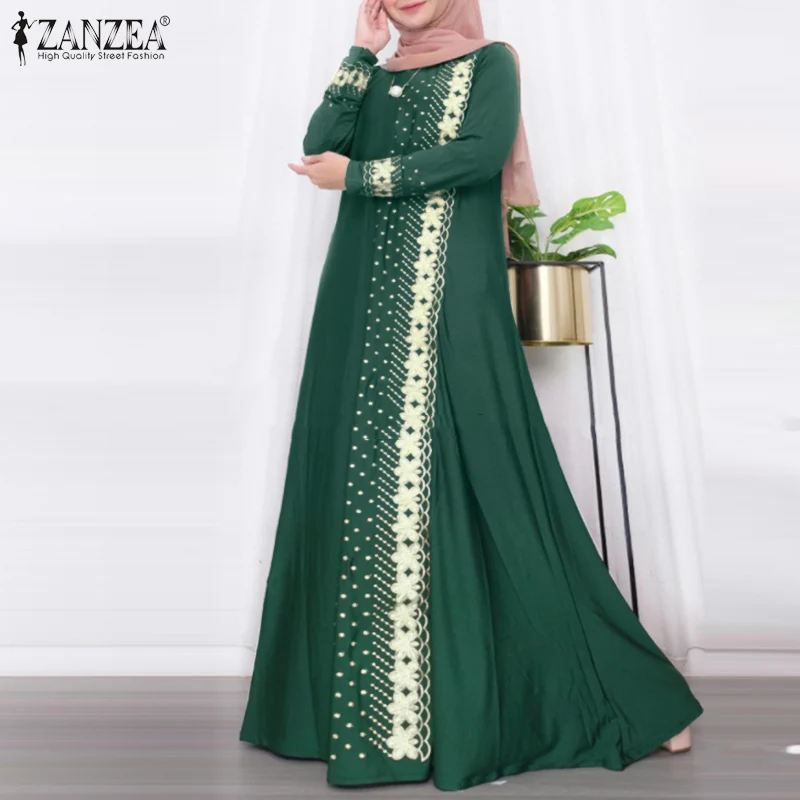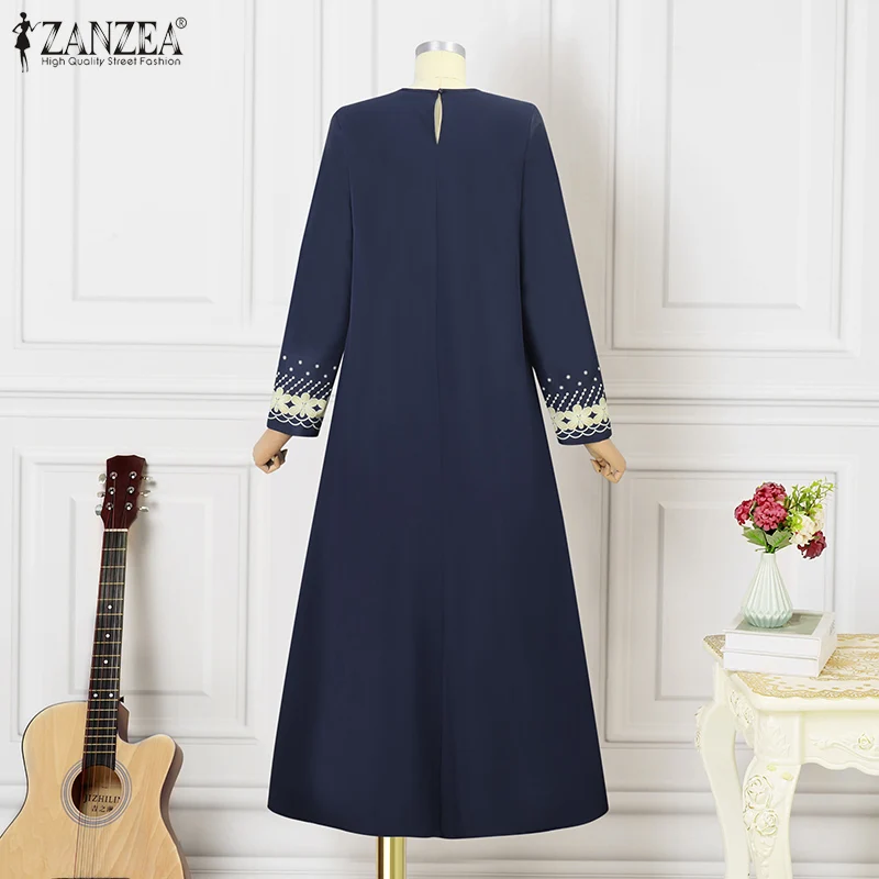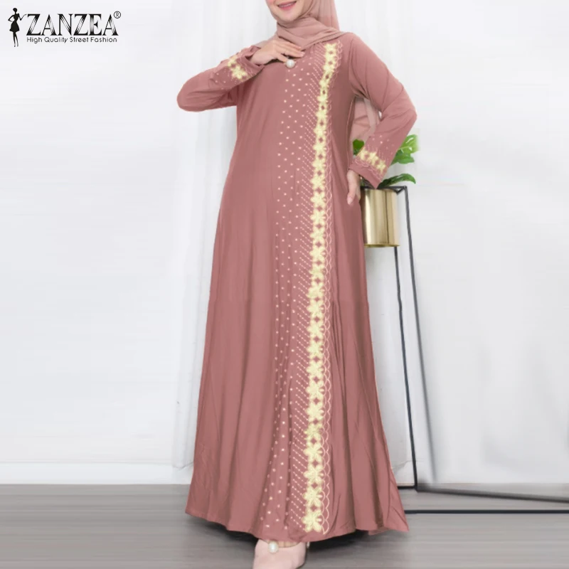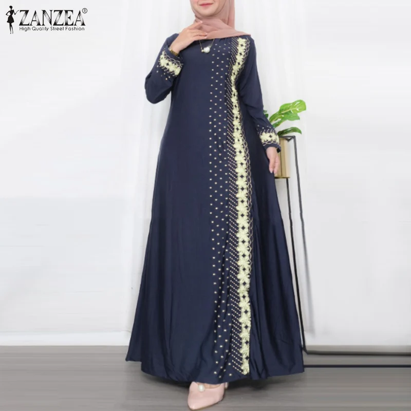 ZANZEA IsIamic Long Vestidos Robe Muslim Hijab Dresses Long Sleeve Maxi Sundress Abayas For Women Elegant Floral Printed Dress